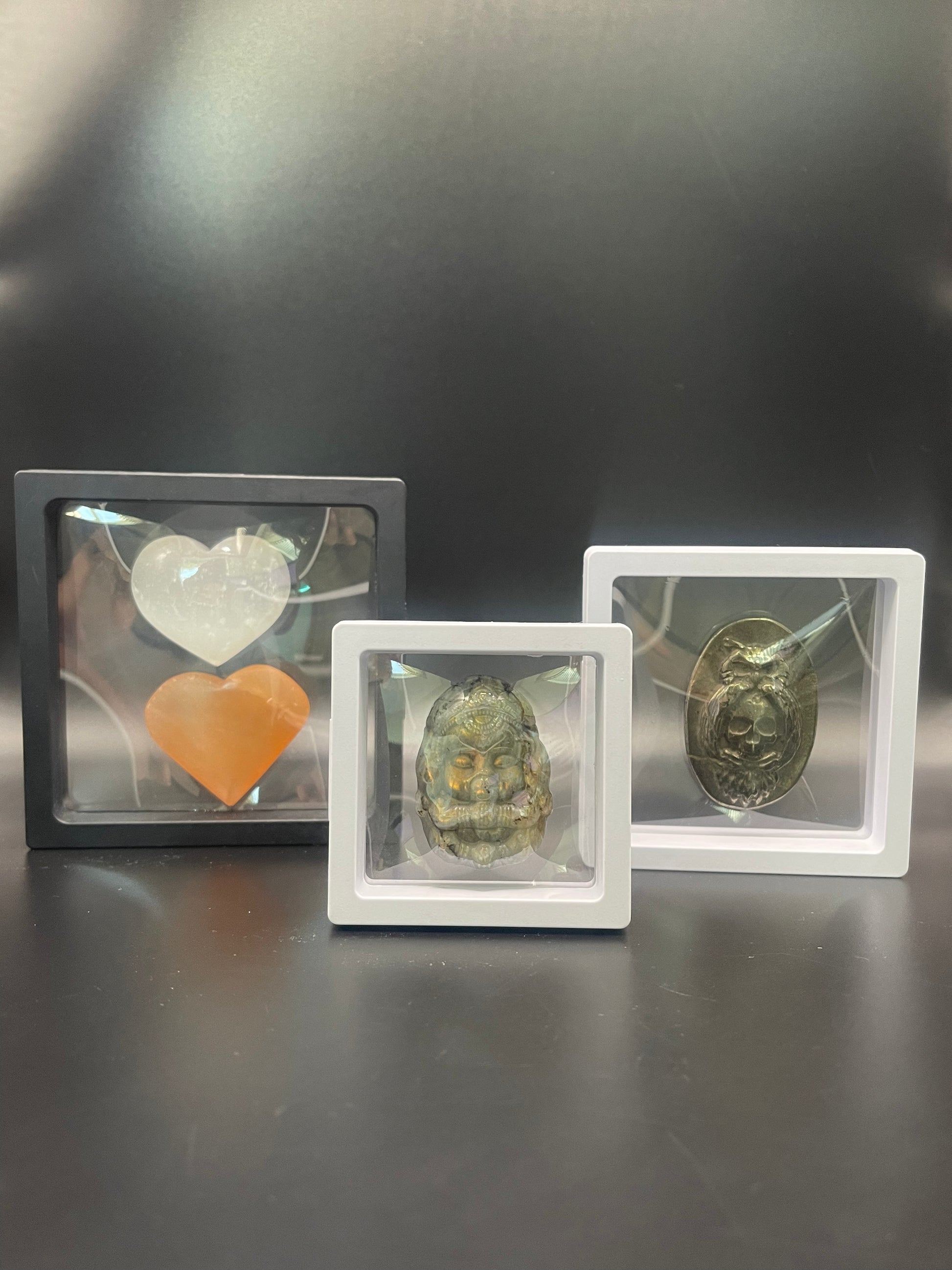 Display your jewelry and crystals with these awesome 3D suspension cases.  Cases are available in a multiple sizes so you can fine just the right size for your favorite things to collect and display.  These are a great way to make your items stand out, while keeping them protected from dust and moisture.