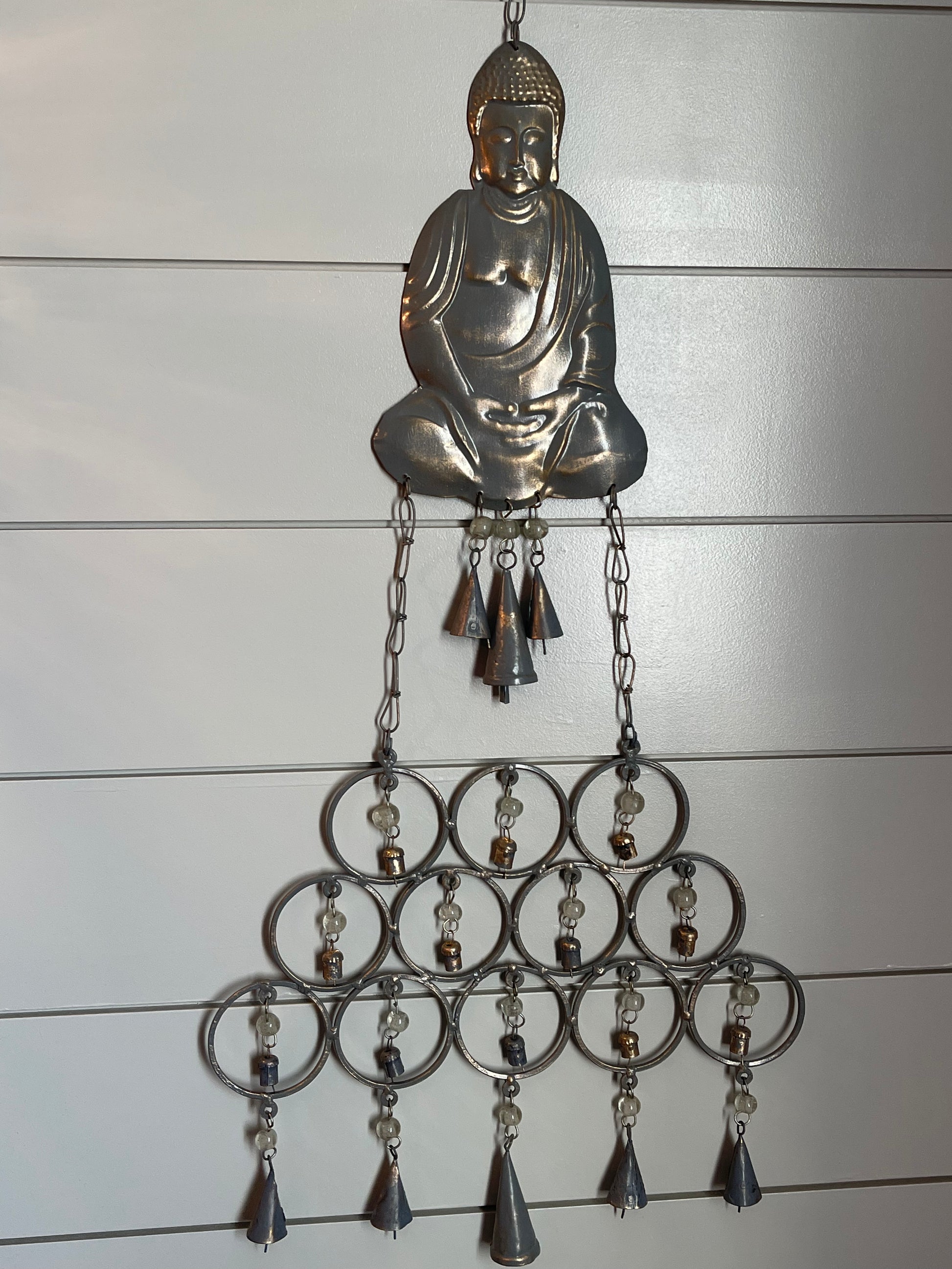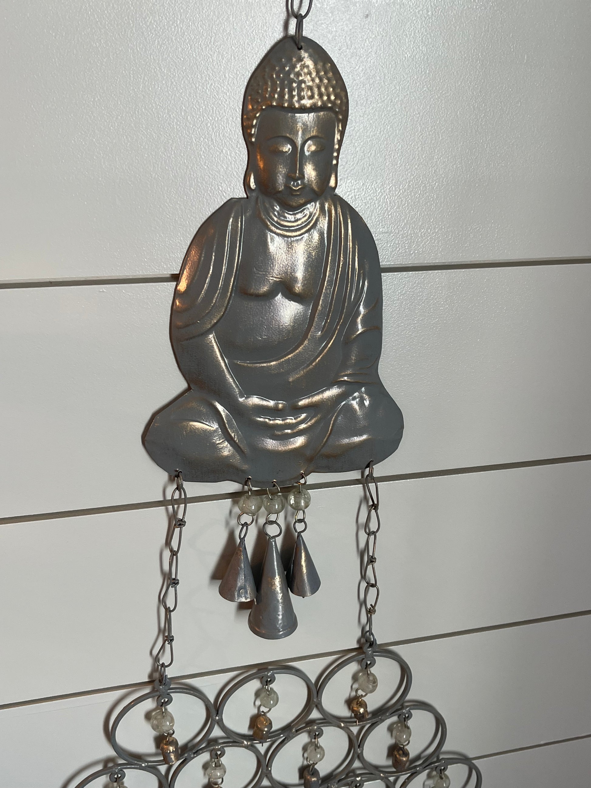 Metal Buddha bell wall hang, wind chime.  Hand made with recycled metal.