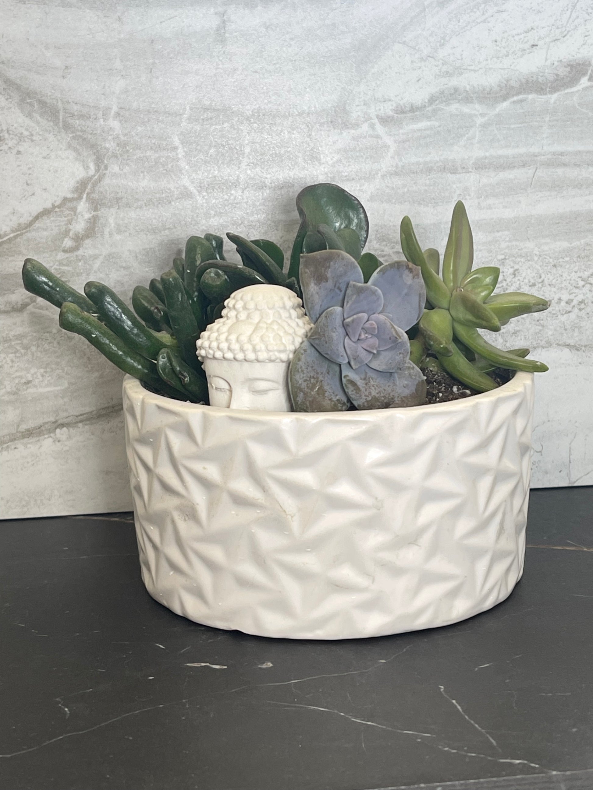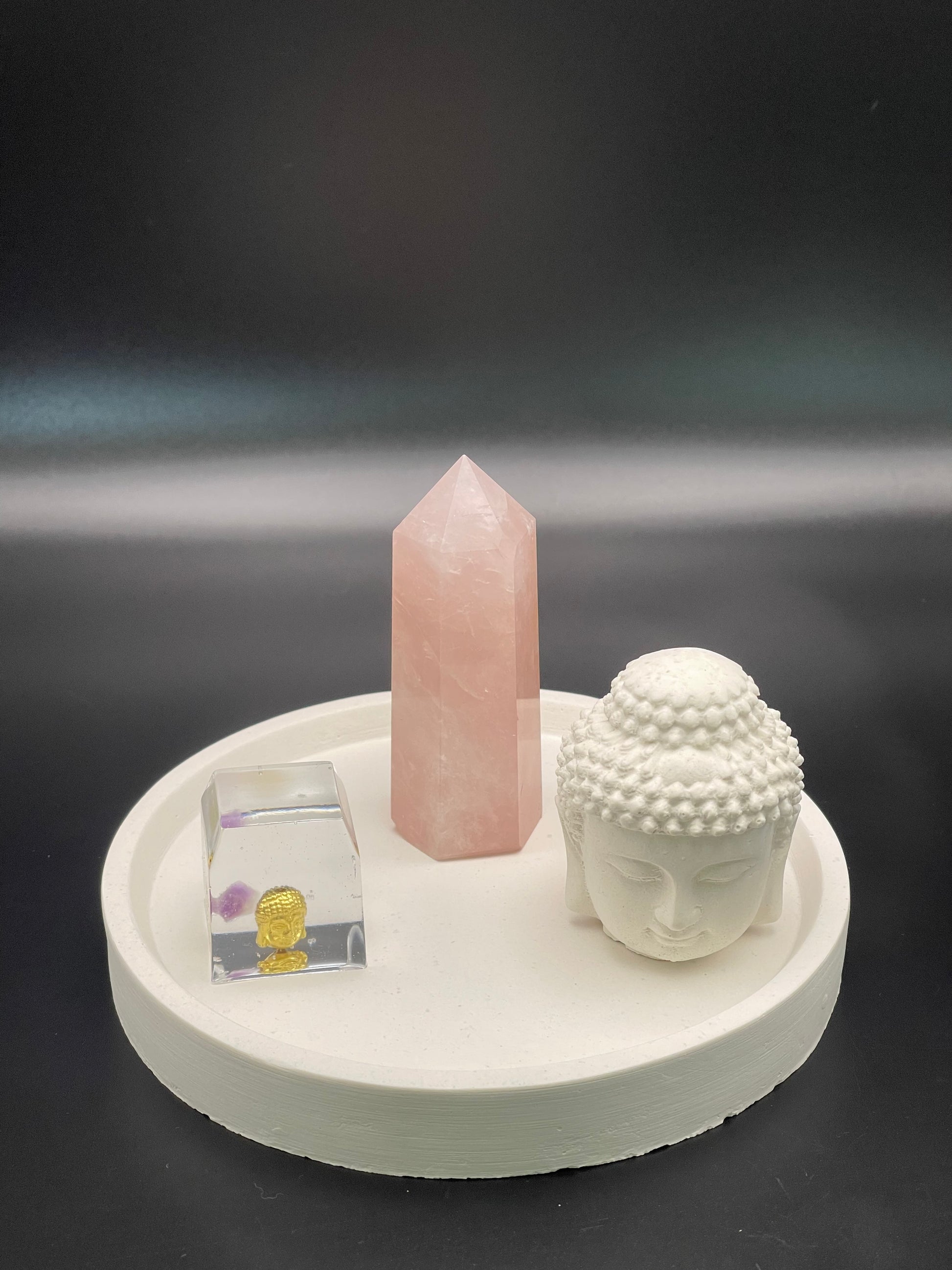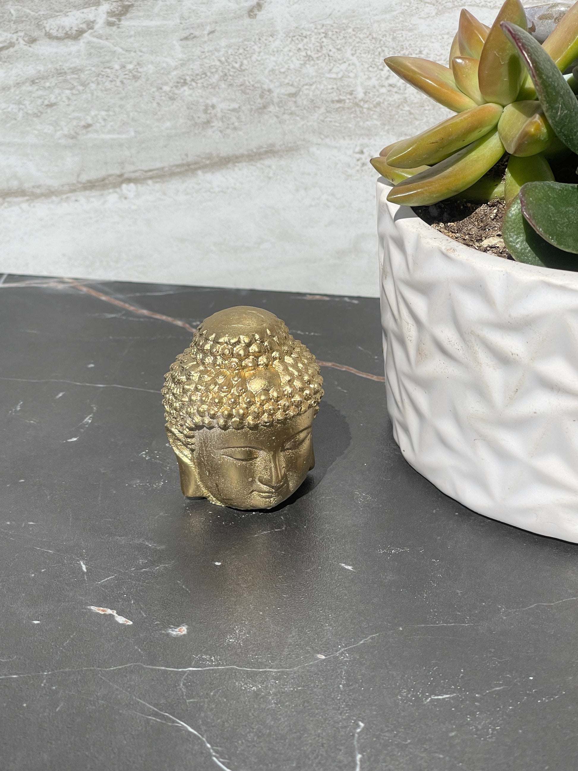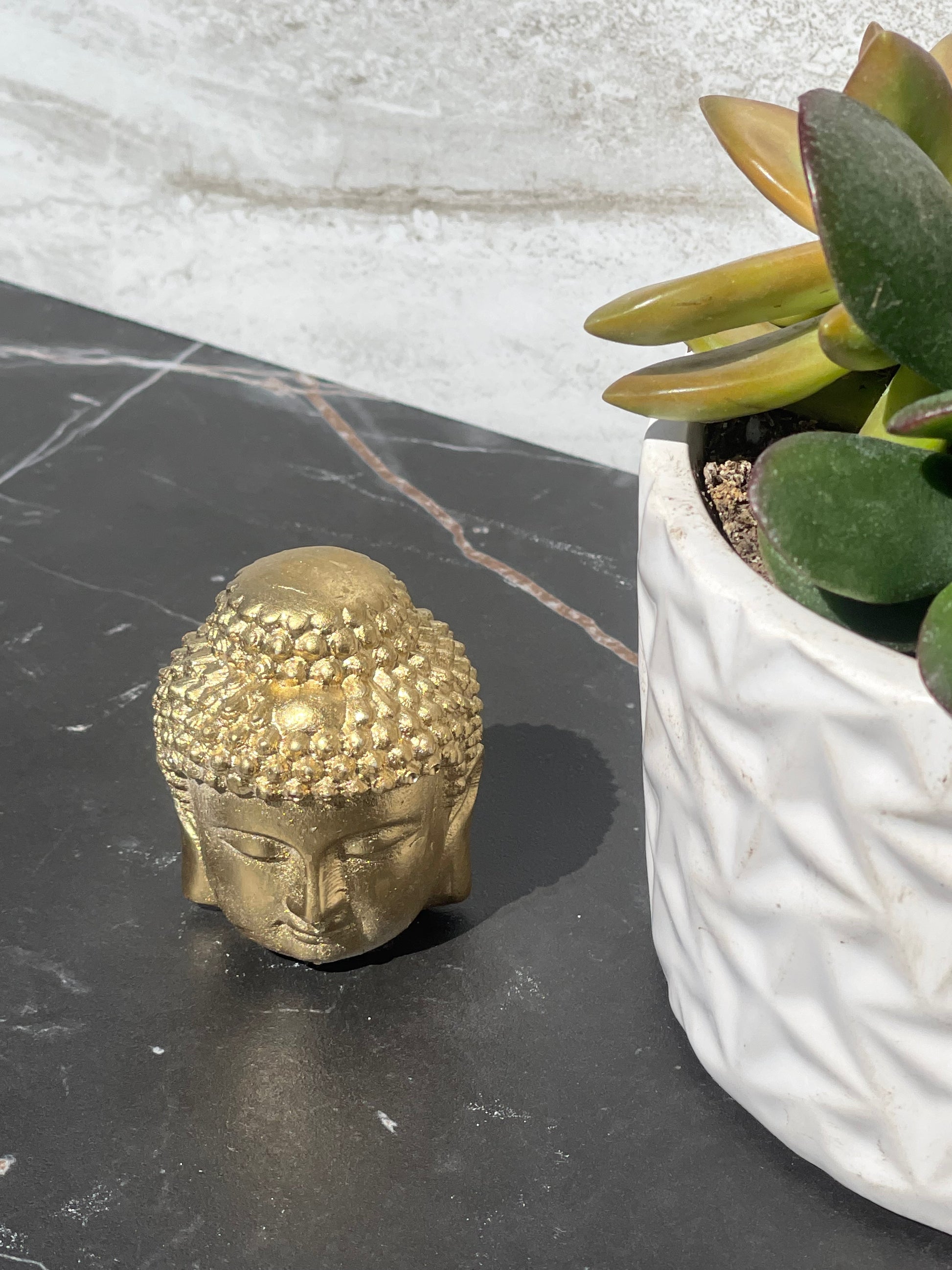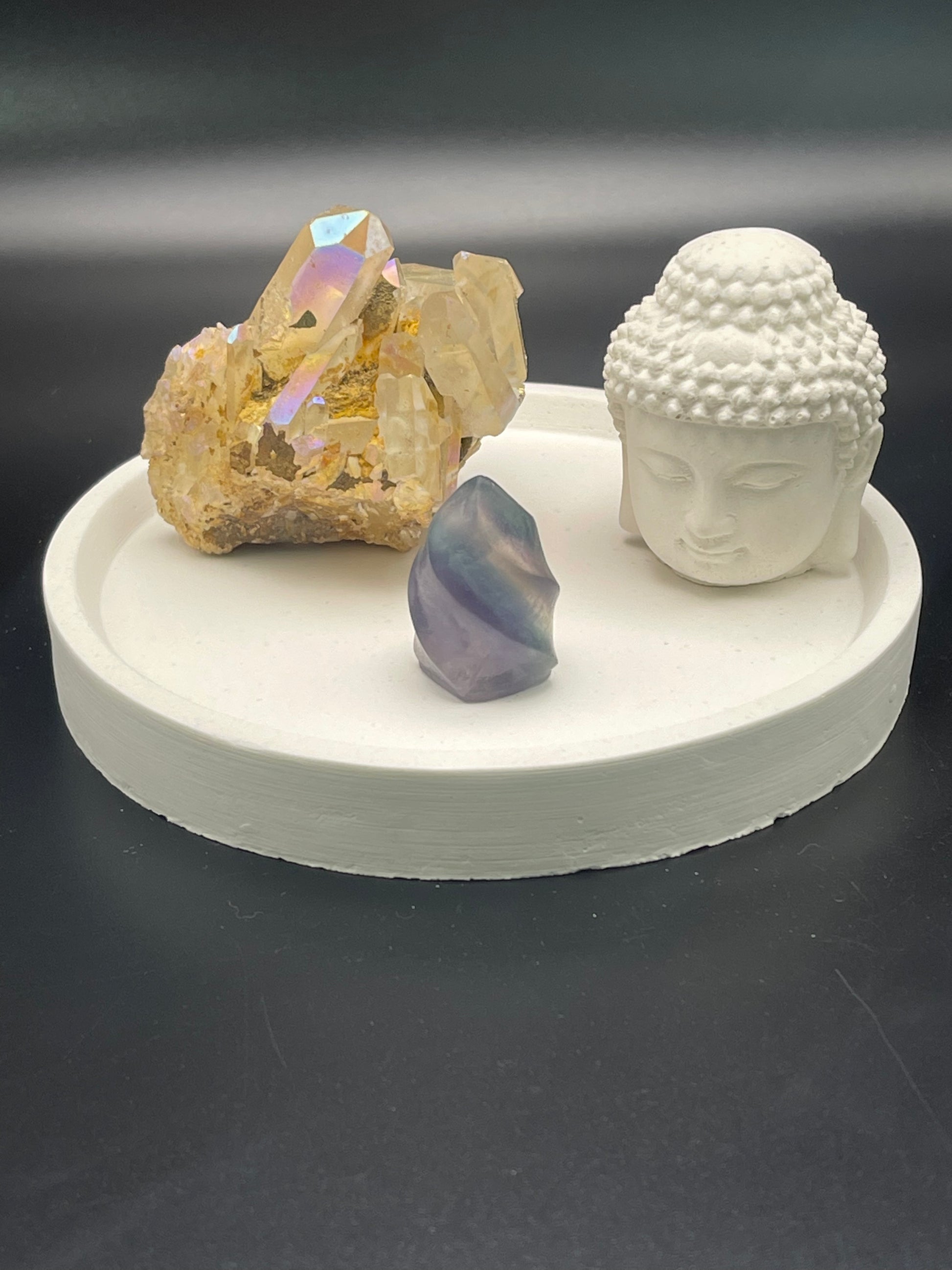 Small hand poured Buddha head made with Portland white cement.  Perfect for a touch of detail.  Check out the different trays and crystals to create your own center pieces, or end table decor.