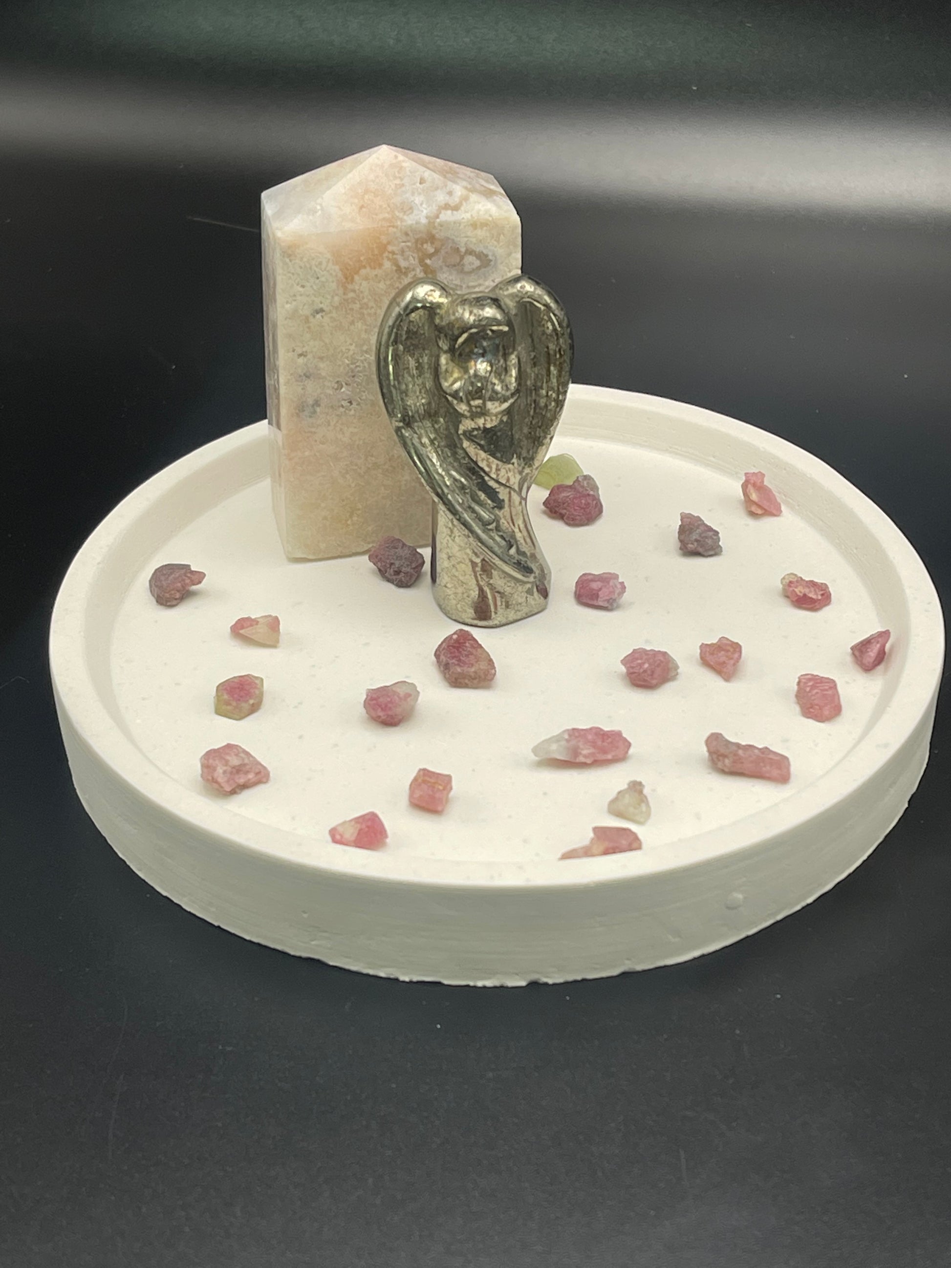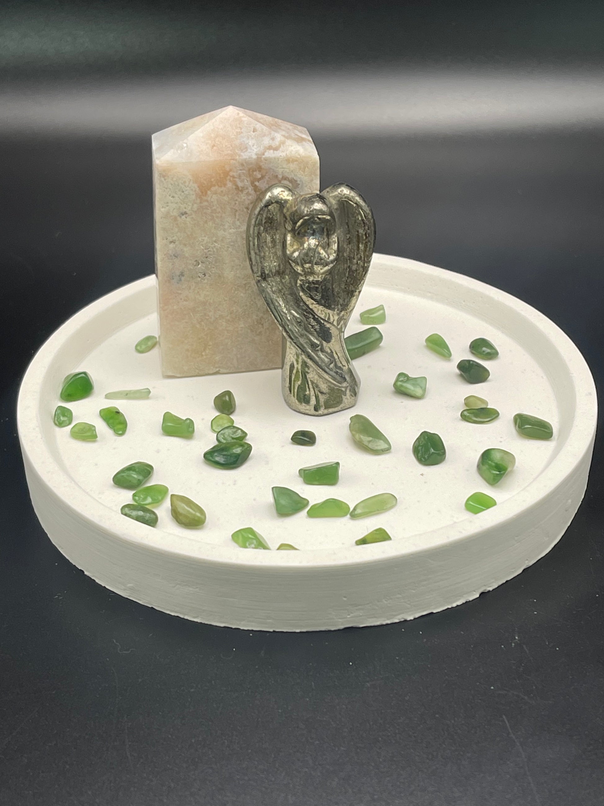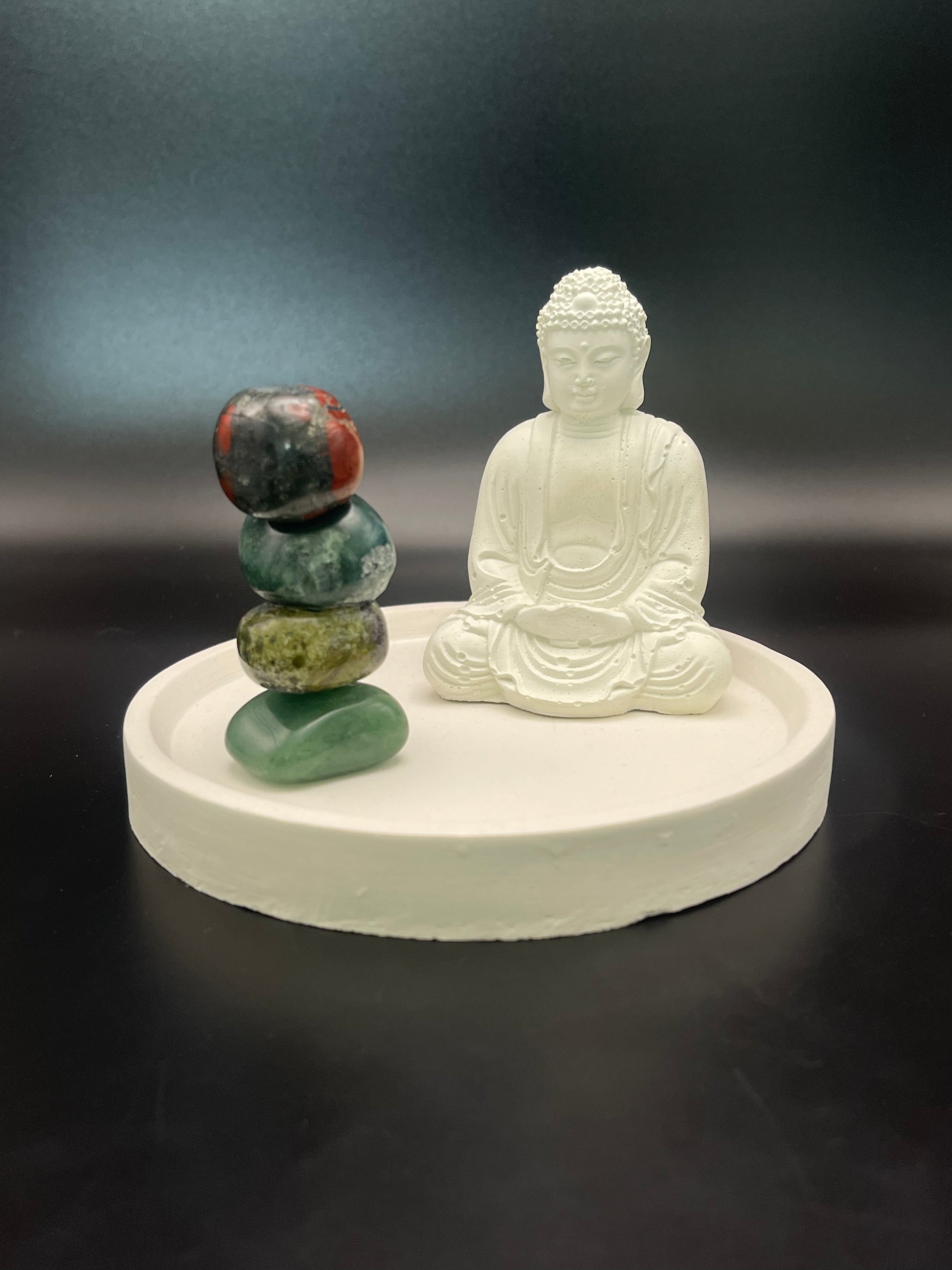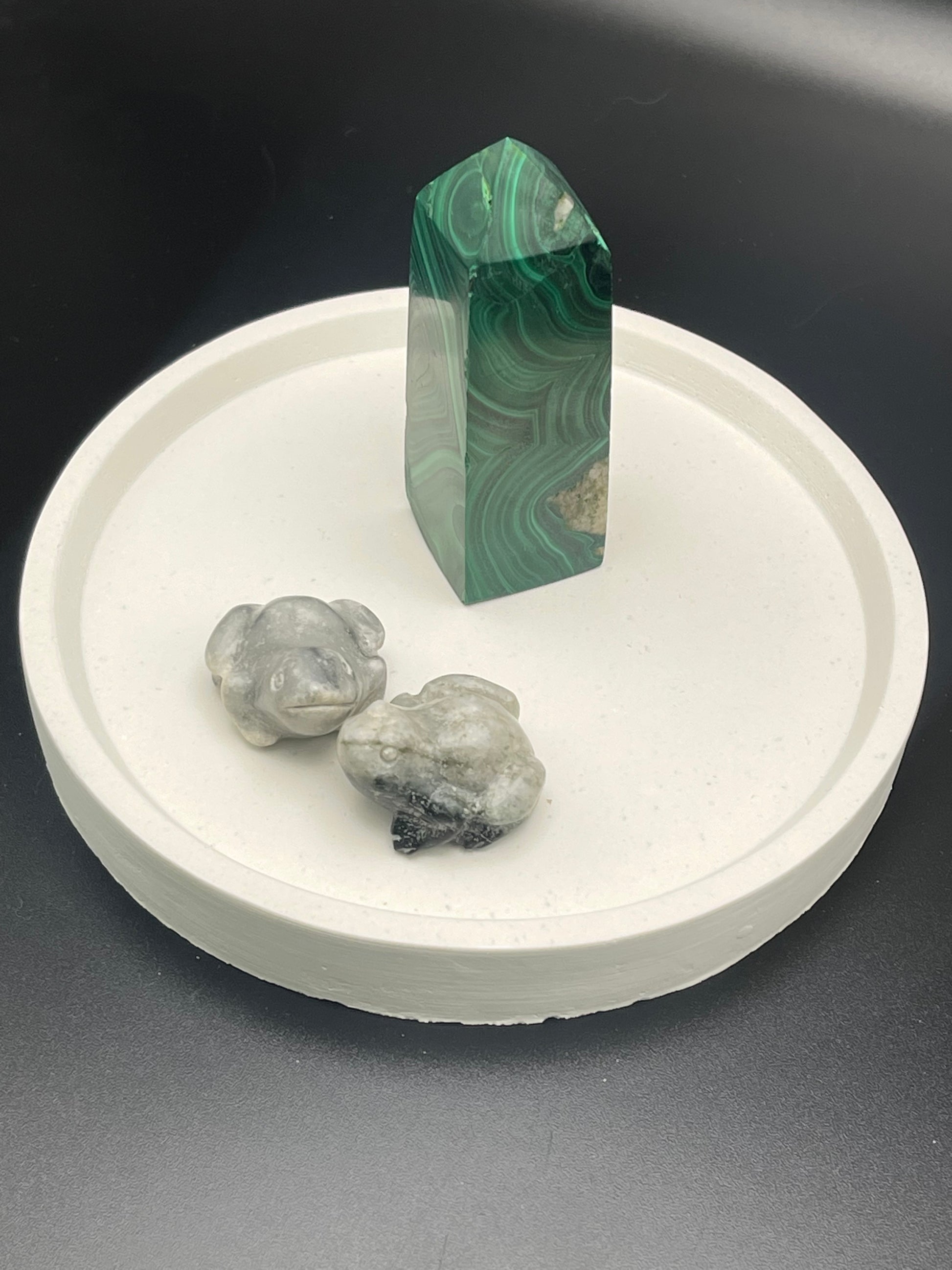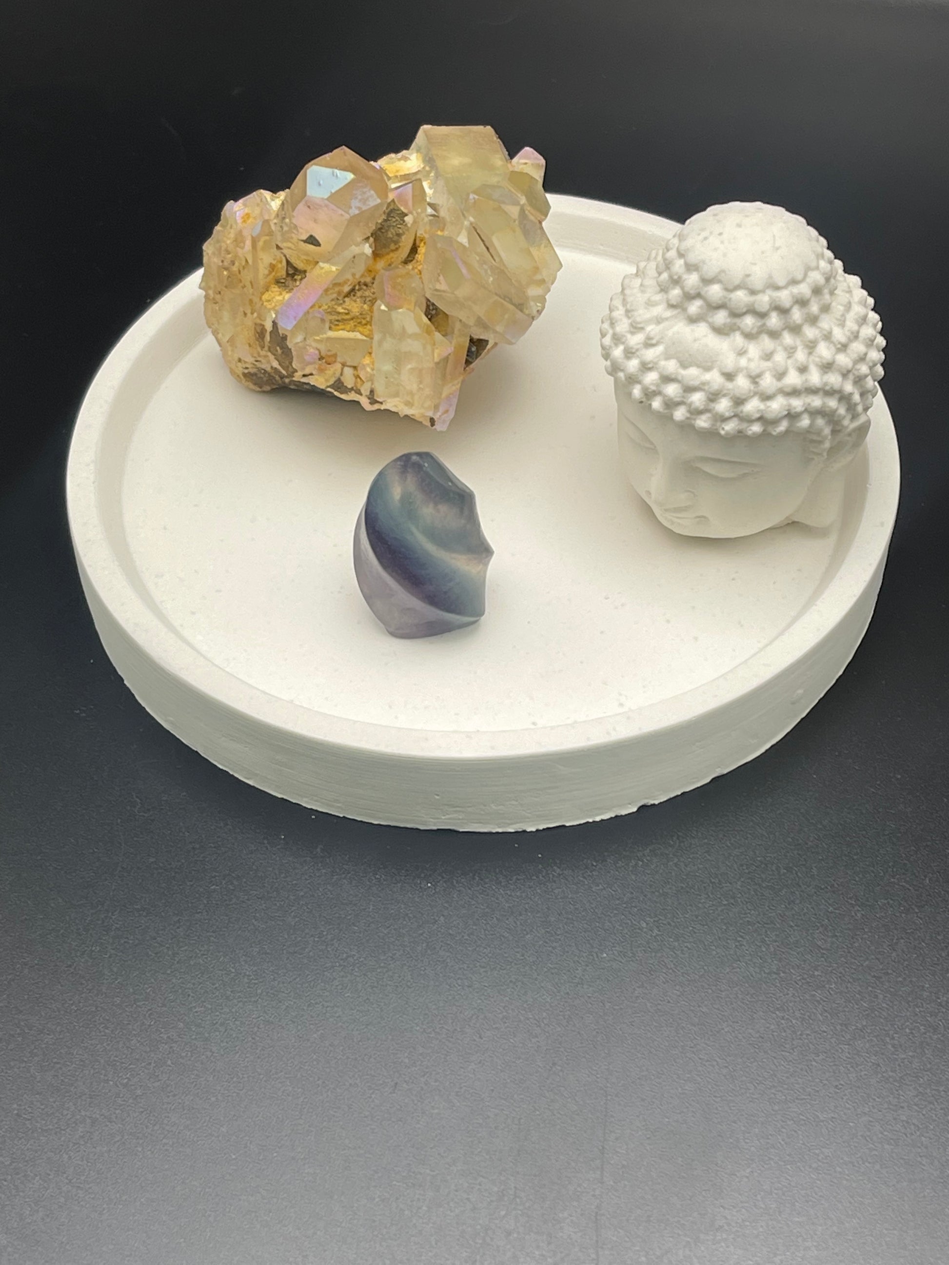 This hand poured cement display tray is made from portland white cement, making it both durable and attractive. Its 5 inch size and 3/4 inch thickness provide a perfect foundation for artistically displaying any décor. Easy to clean and built to last, this cement display tray is the perfect addition to any home.