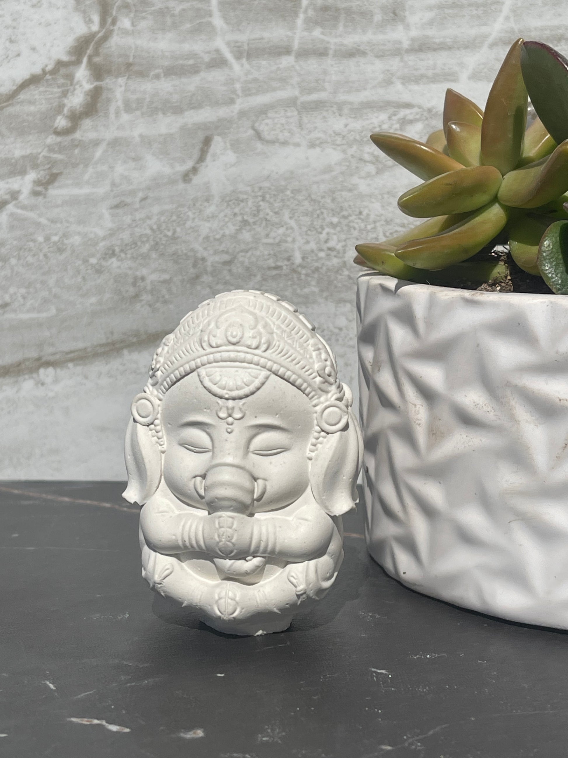 Ganesh, the elephant god.  Made of hand poured Portland white cement.