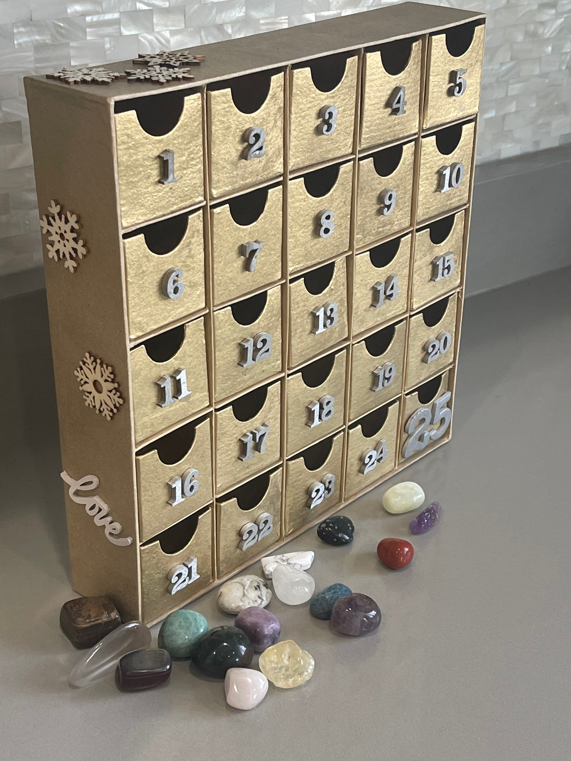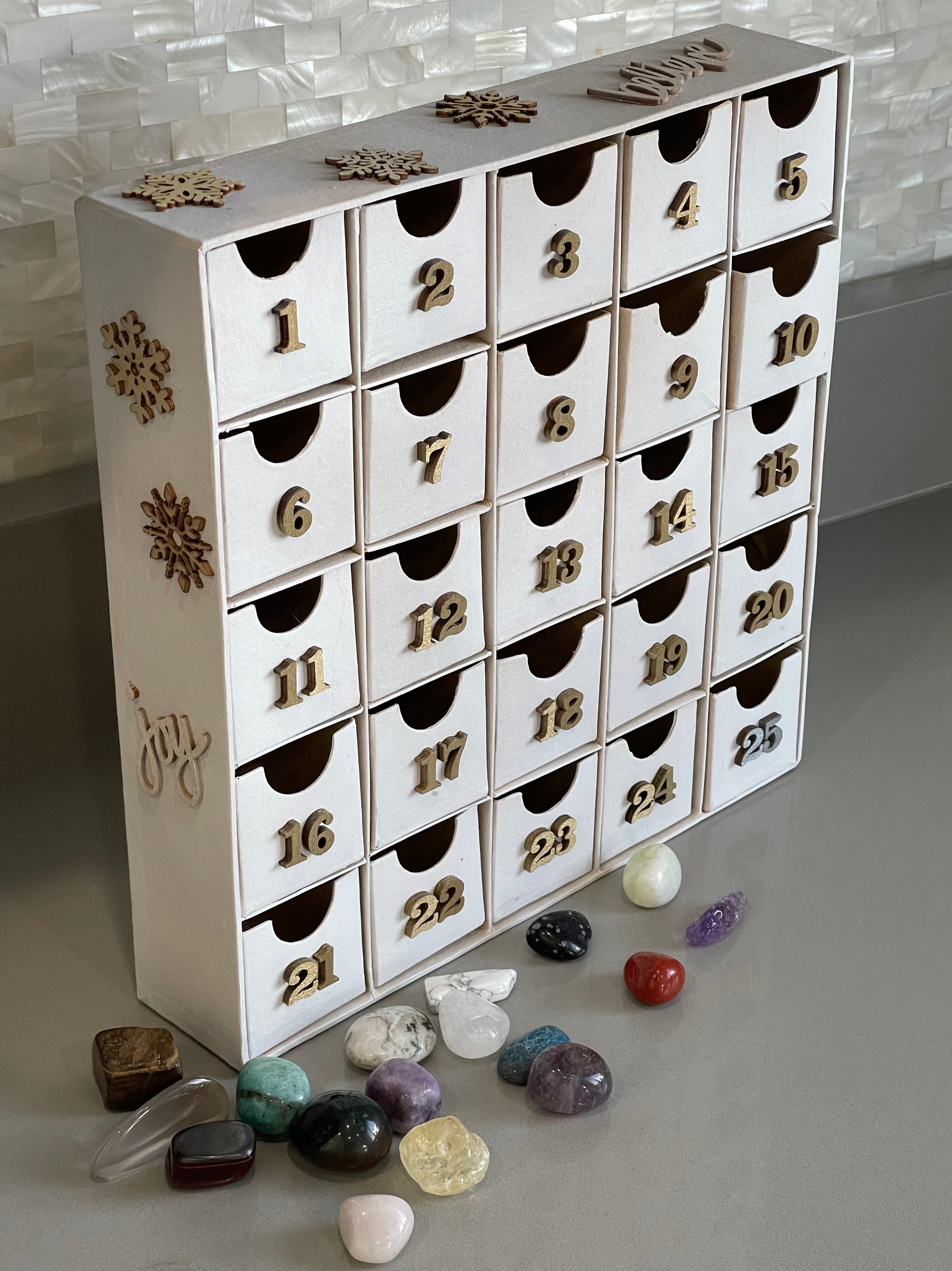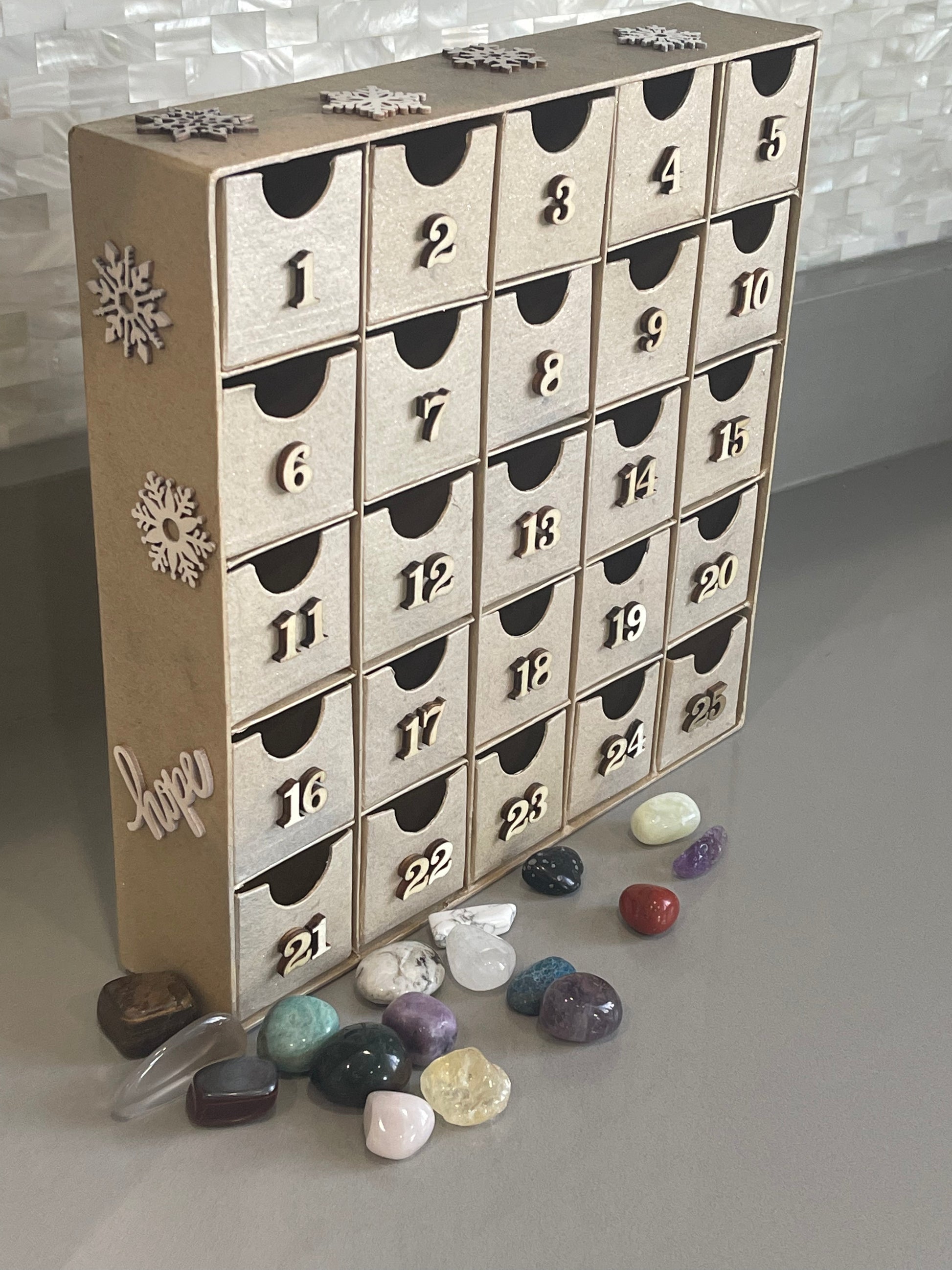 Who in your life LOVES crystals?  Or is it you?  There is a new crystal in each day, along with an informational card on that crystal, so as you grow your collection, you can also learn.  25 different crystals, one for each new day on the cont down to Christmas.