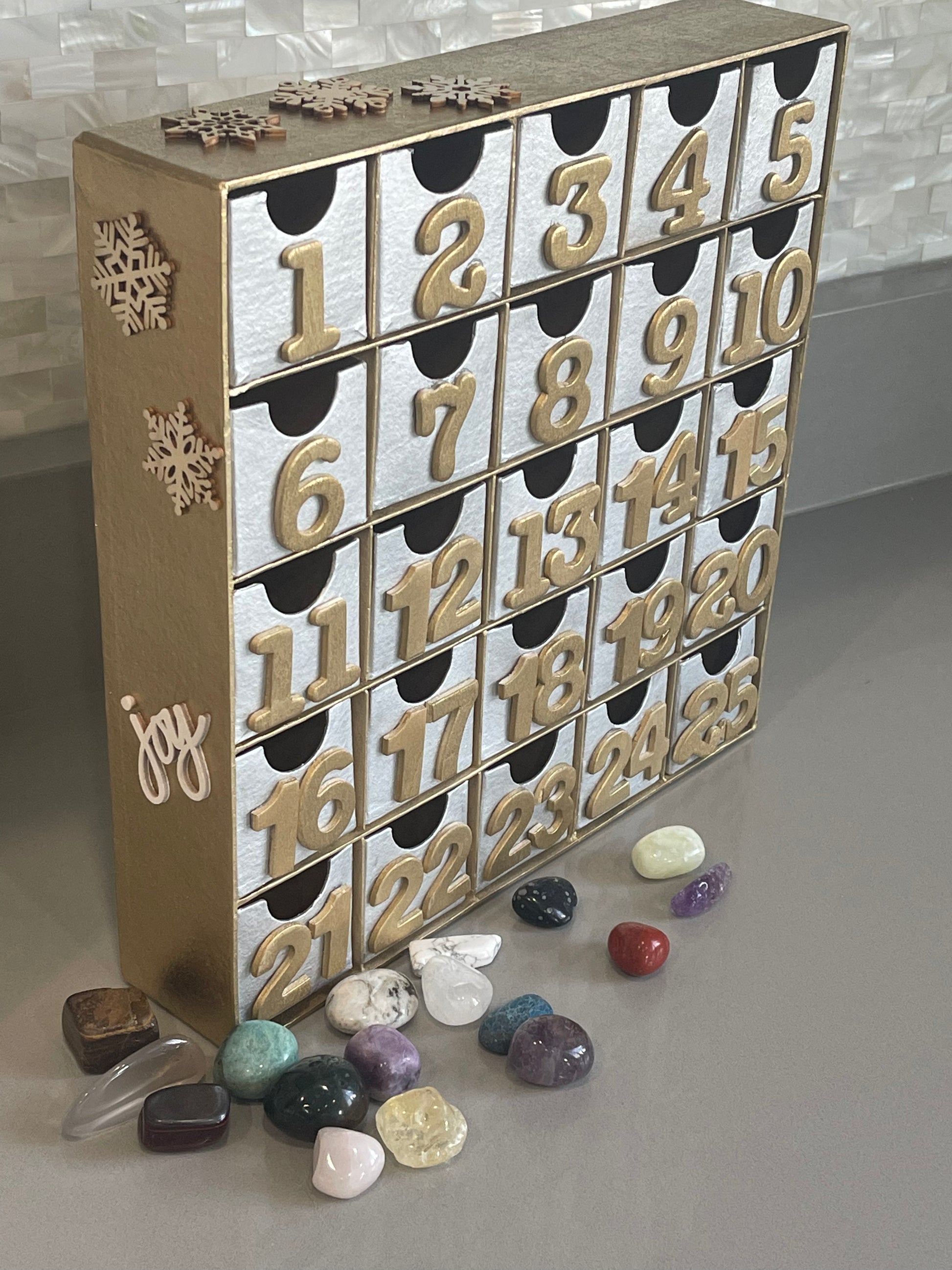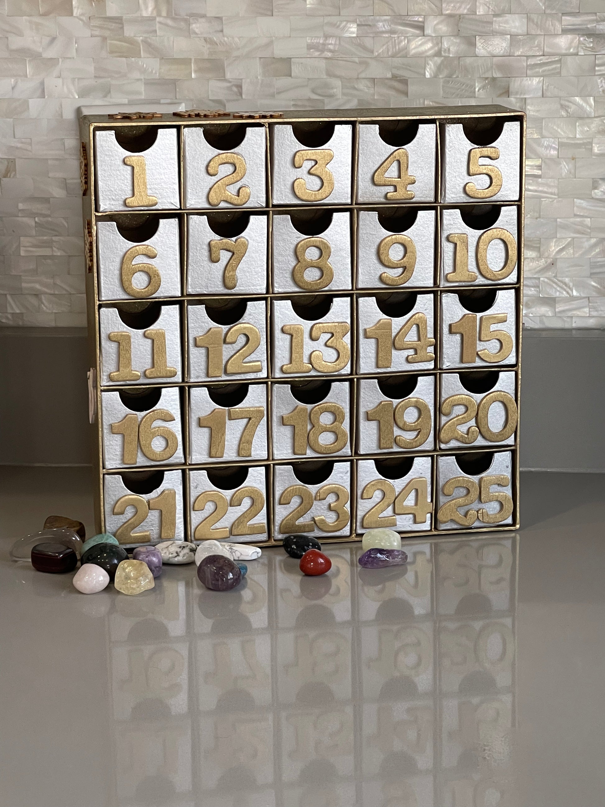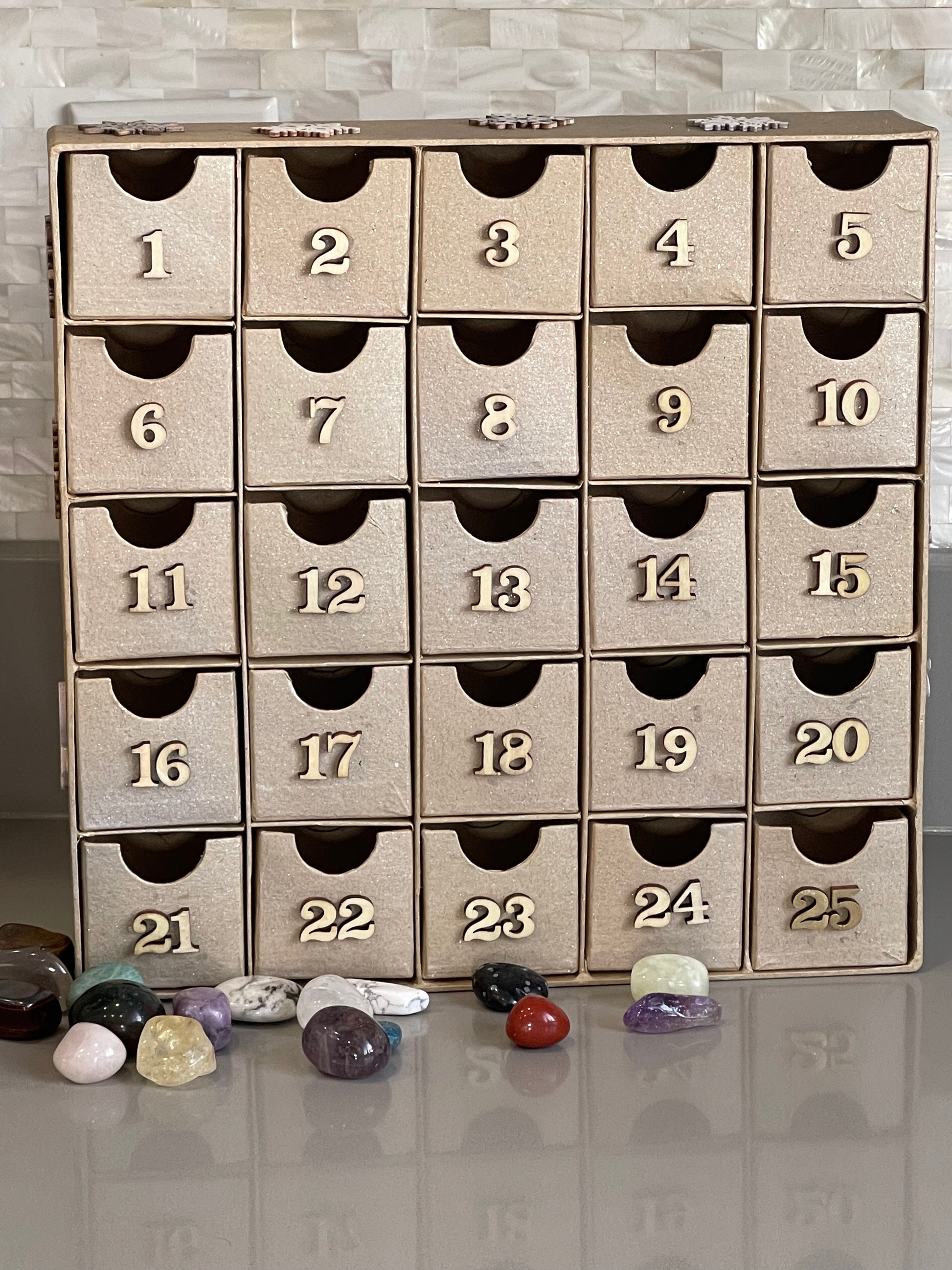 Who in your life LOVES crystals?  Or is it you?  There is a new crystal in each day, along with an informational card on that crystal, so as you grow your collection, you can also learn.  25 different crystals, one for each new day on the cont down to Christmas.