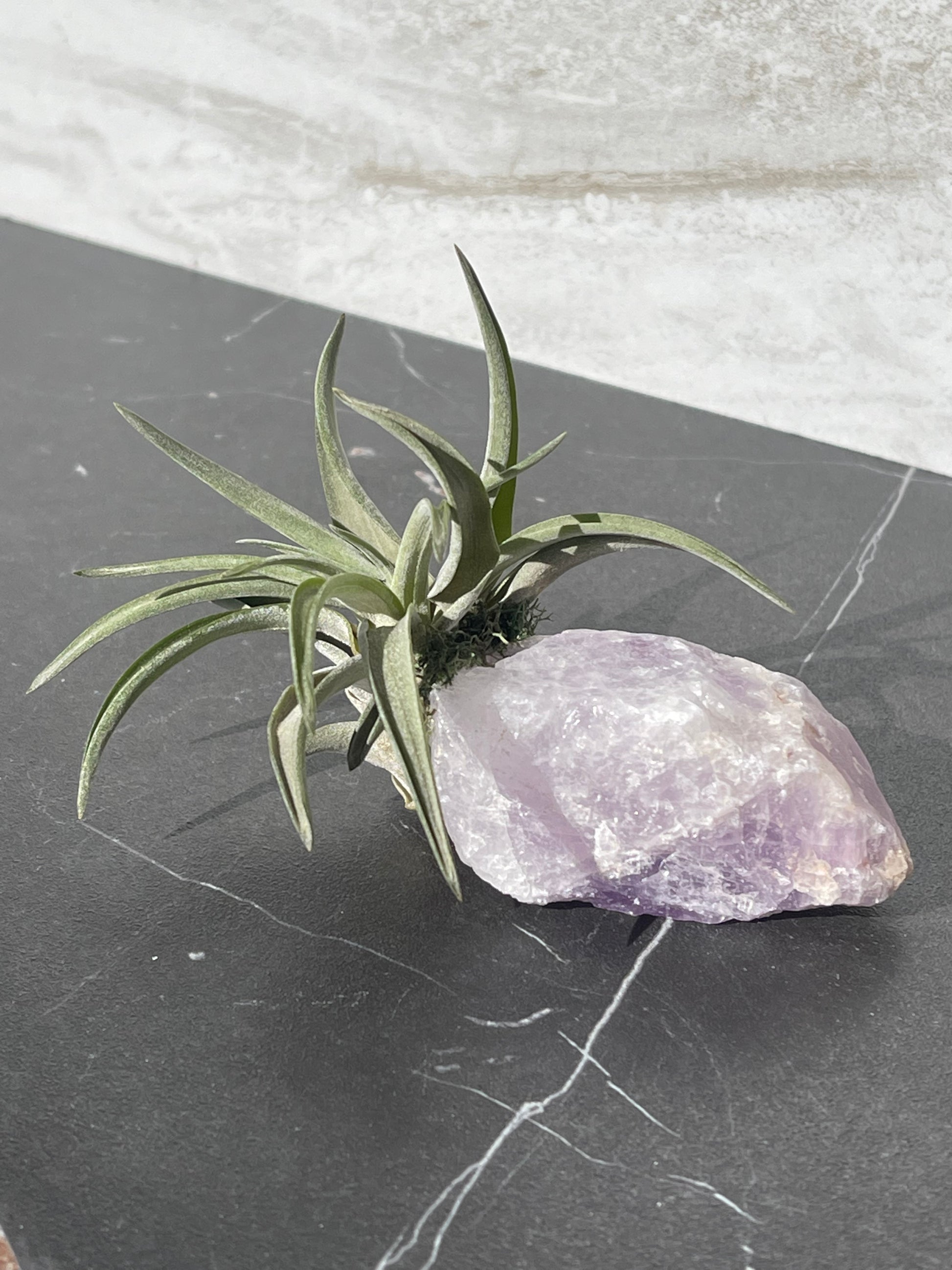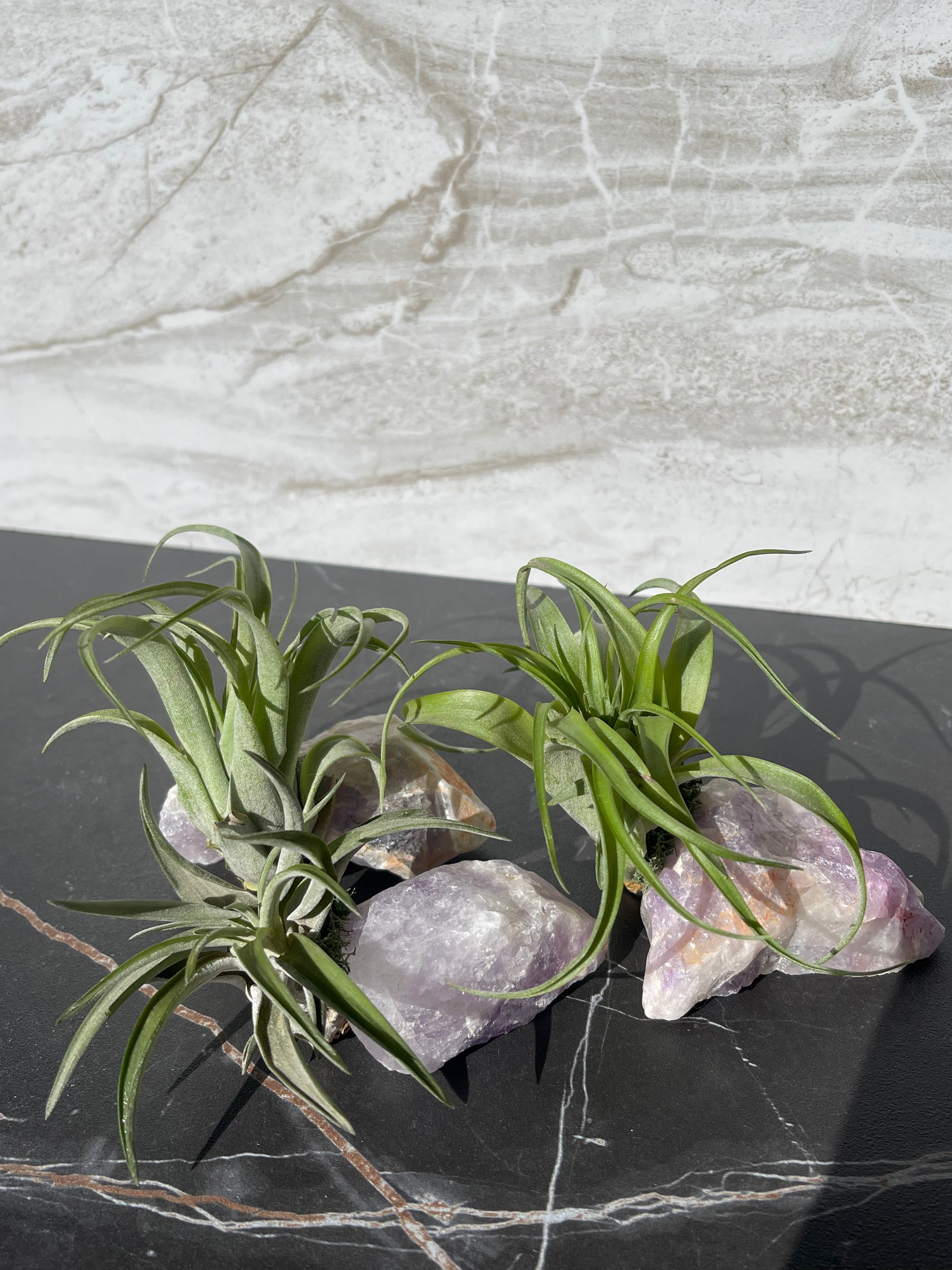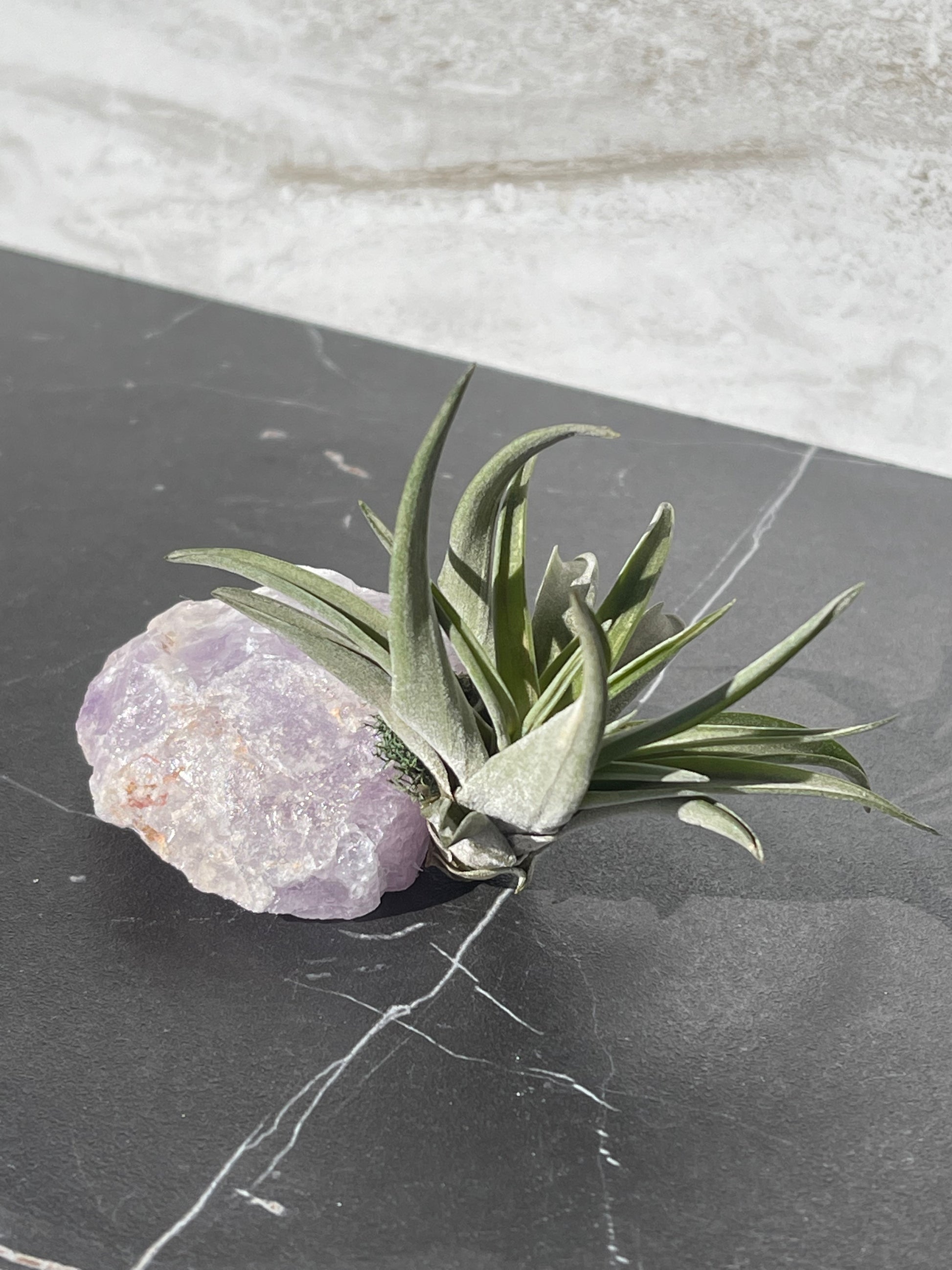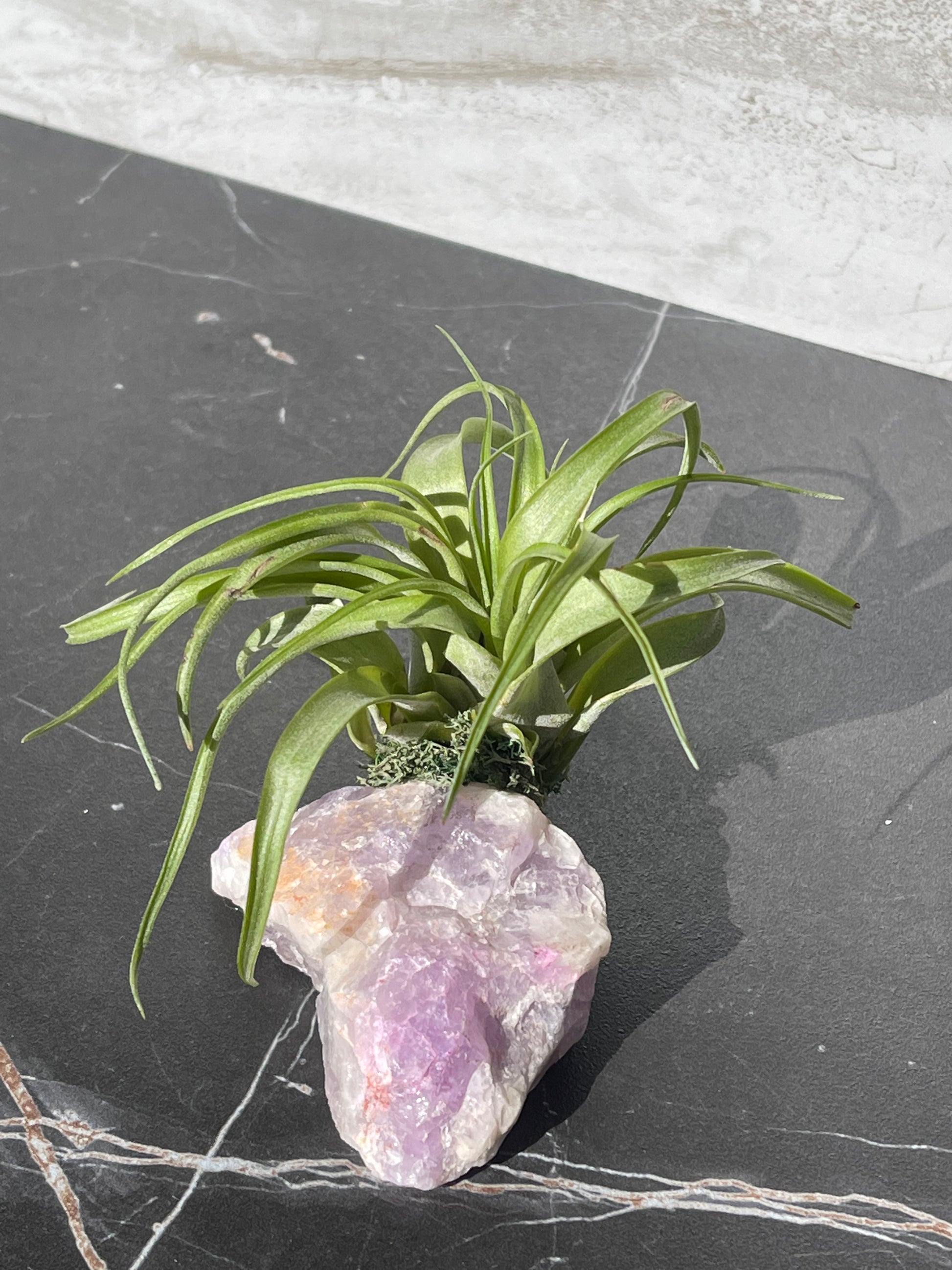 Air plants are SO easy to take care of, that you should add some to your decor.  These air plants are attached to raw amethyst to bring all the positive energy and life into your home or office.