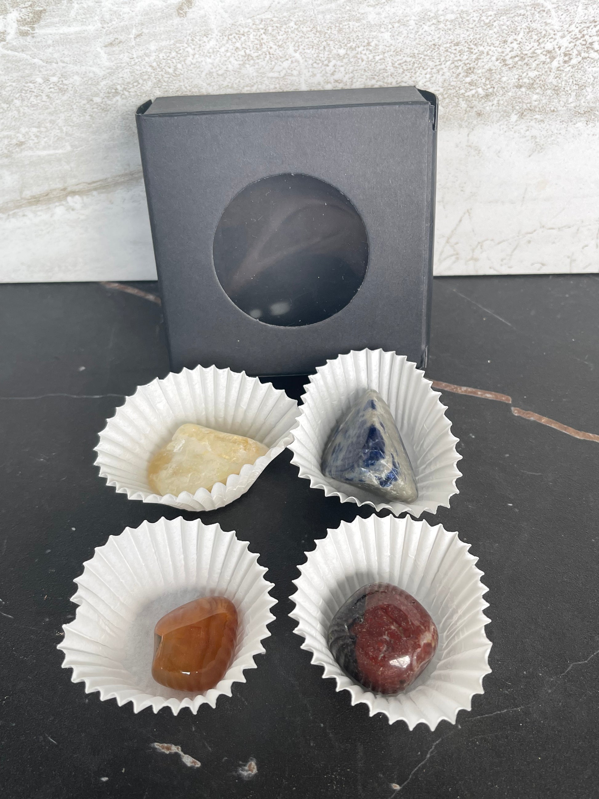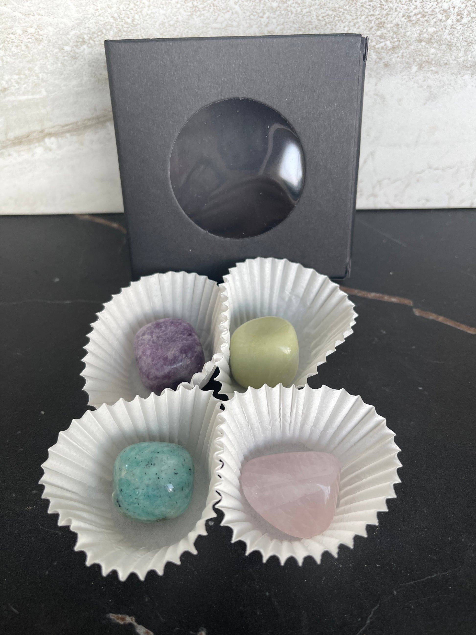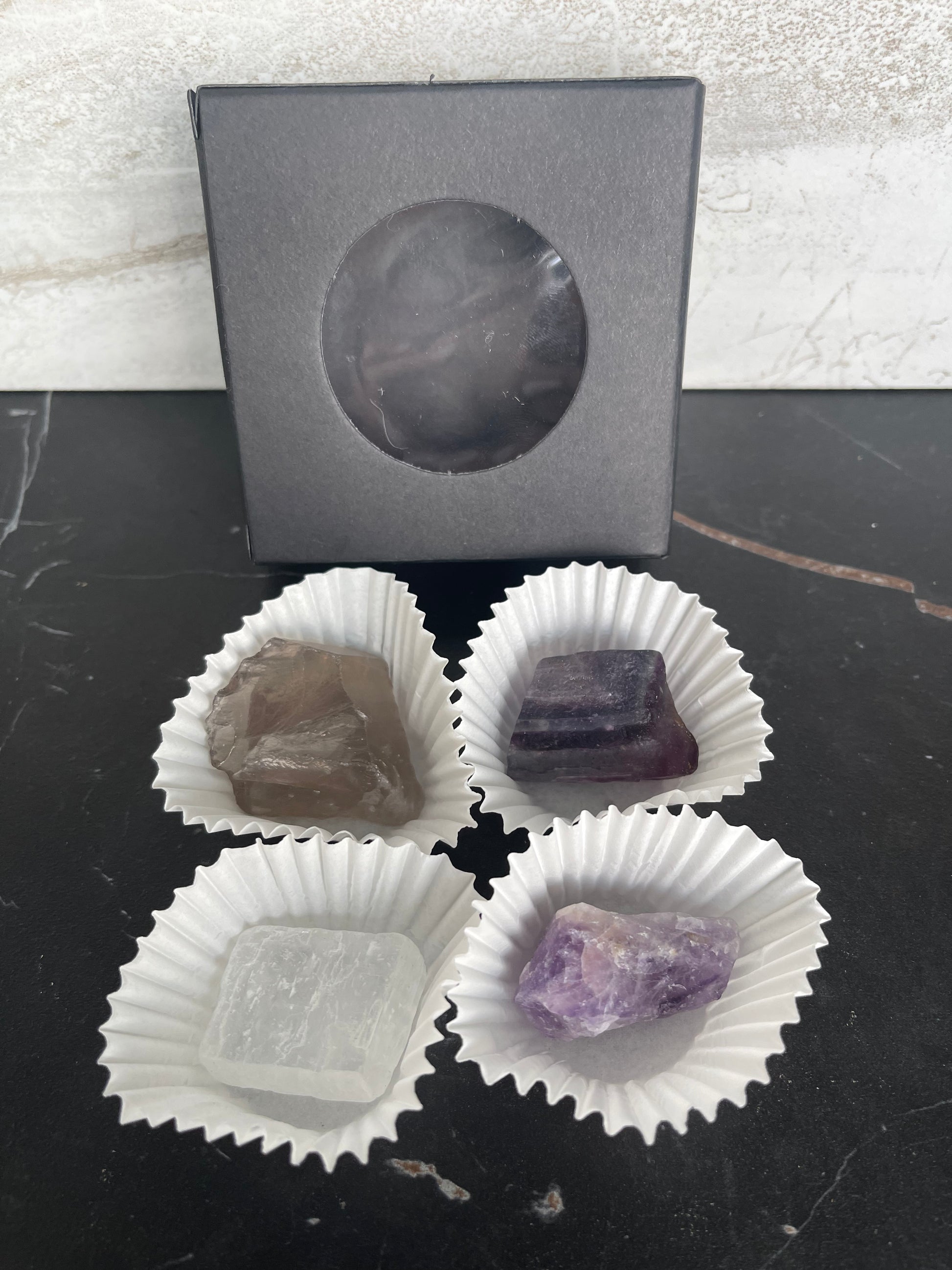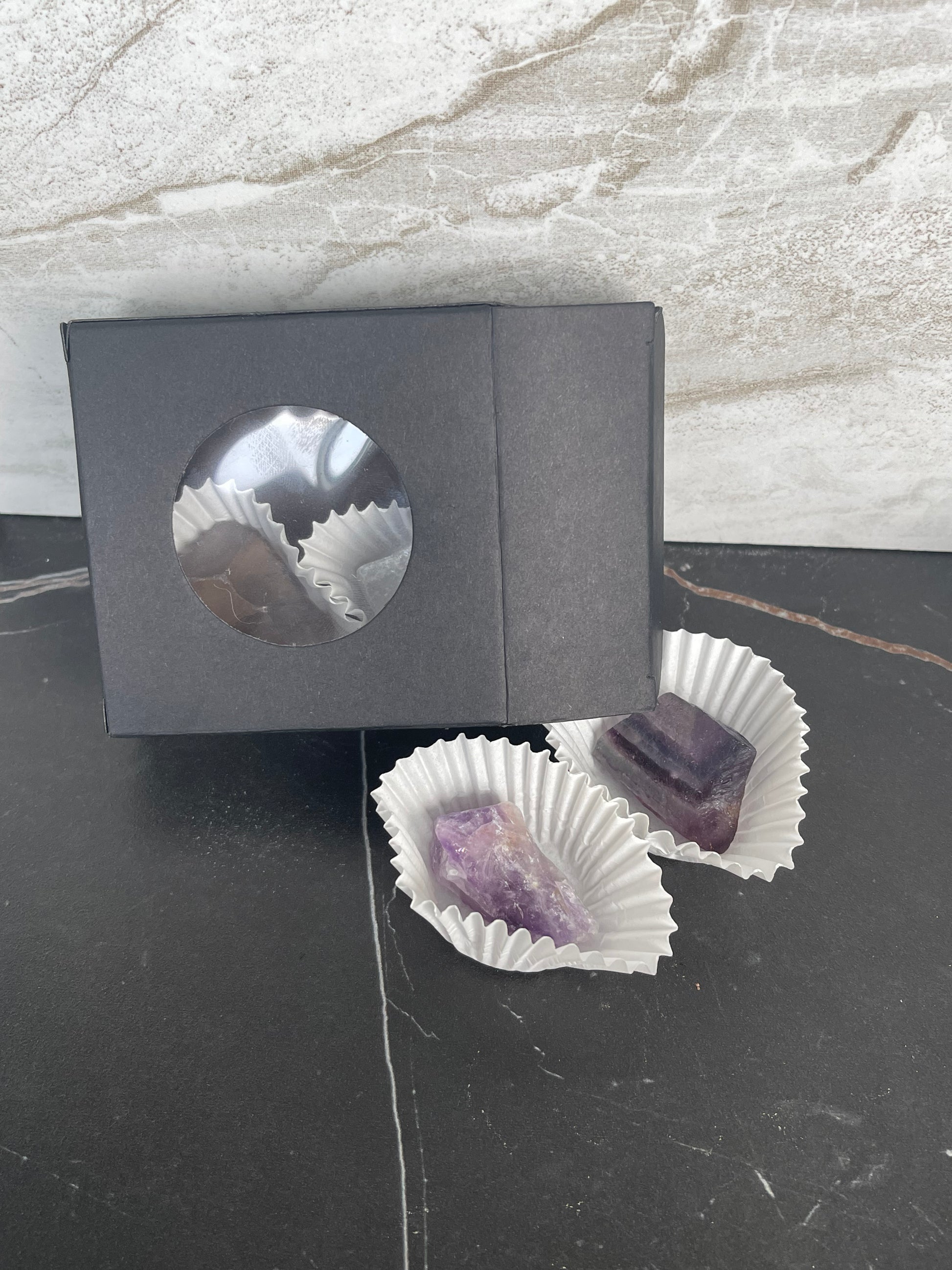 Looking for the perfect gift for your loved one, who's into crystals, or that hard to find gift for a friend or co-worker? This is the perfect one!  A play off a little box of chocolates, This is an individually wrapped Crystal “Candy” Box.  Pick out of Tumbled crystals, or Raw Crystals, and also choose from different options of crystals that would work perfectly for them.