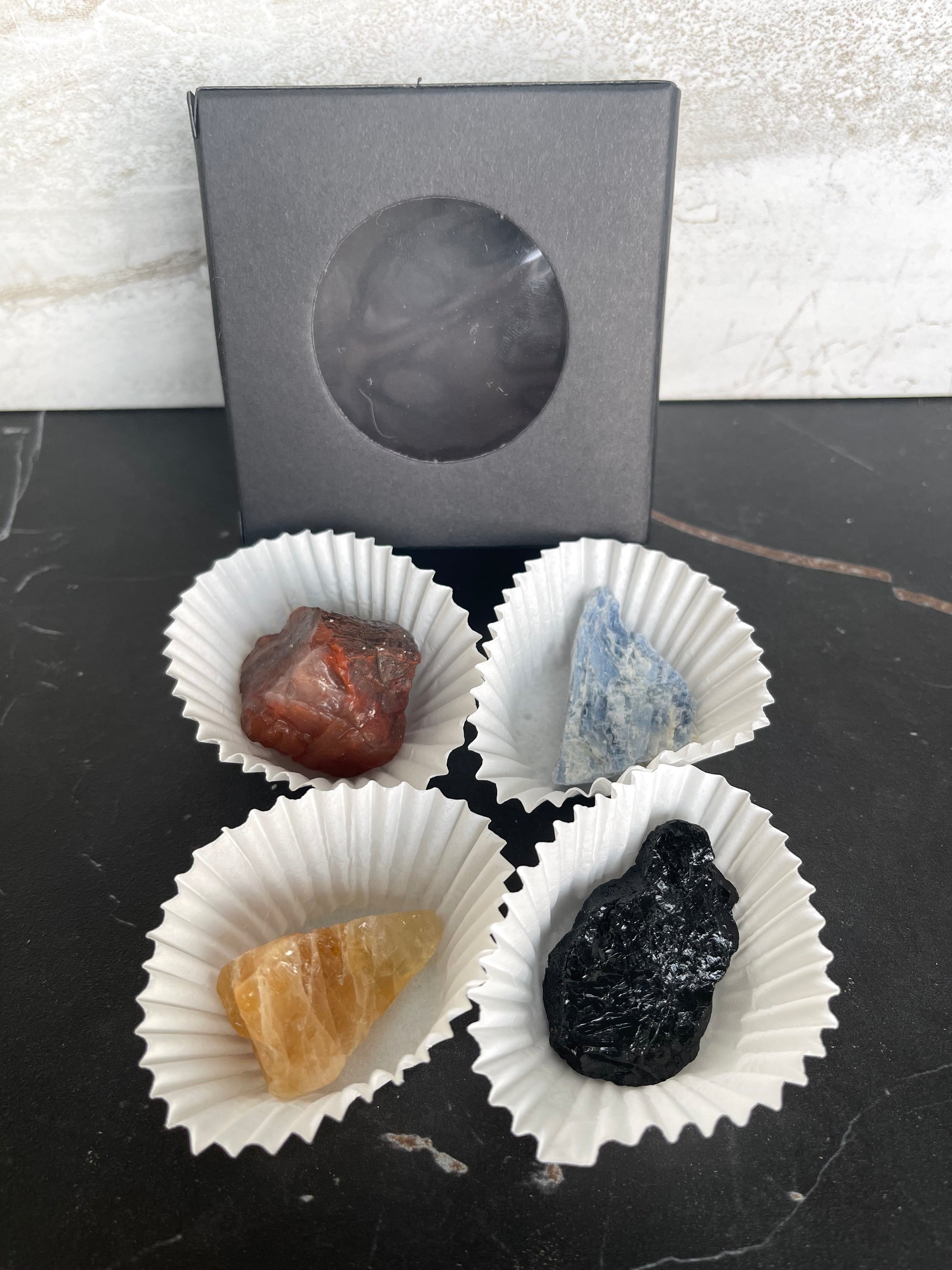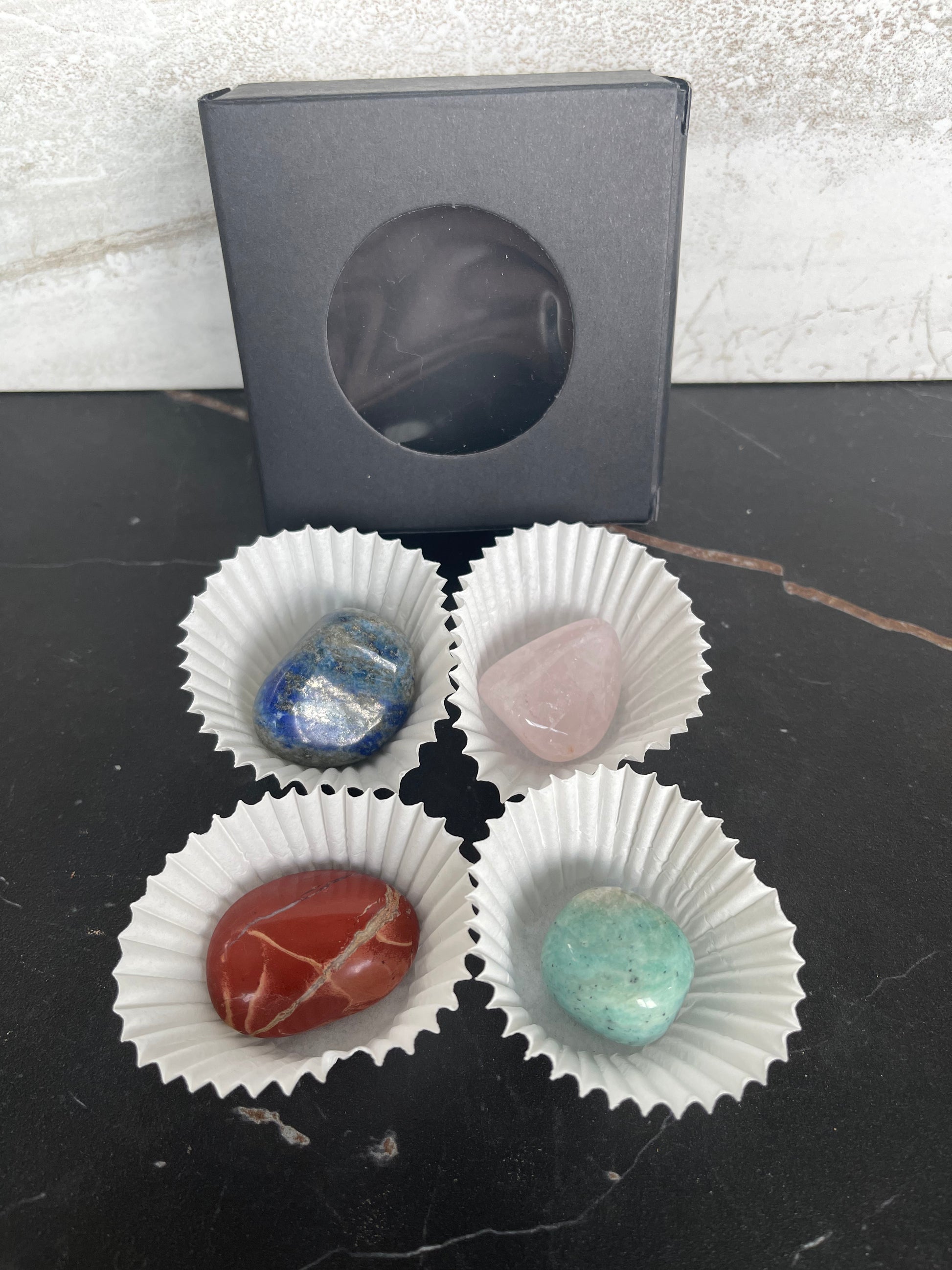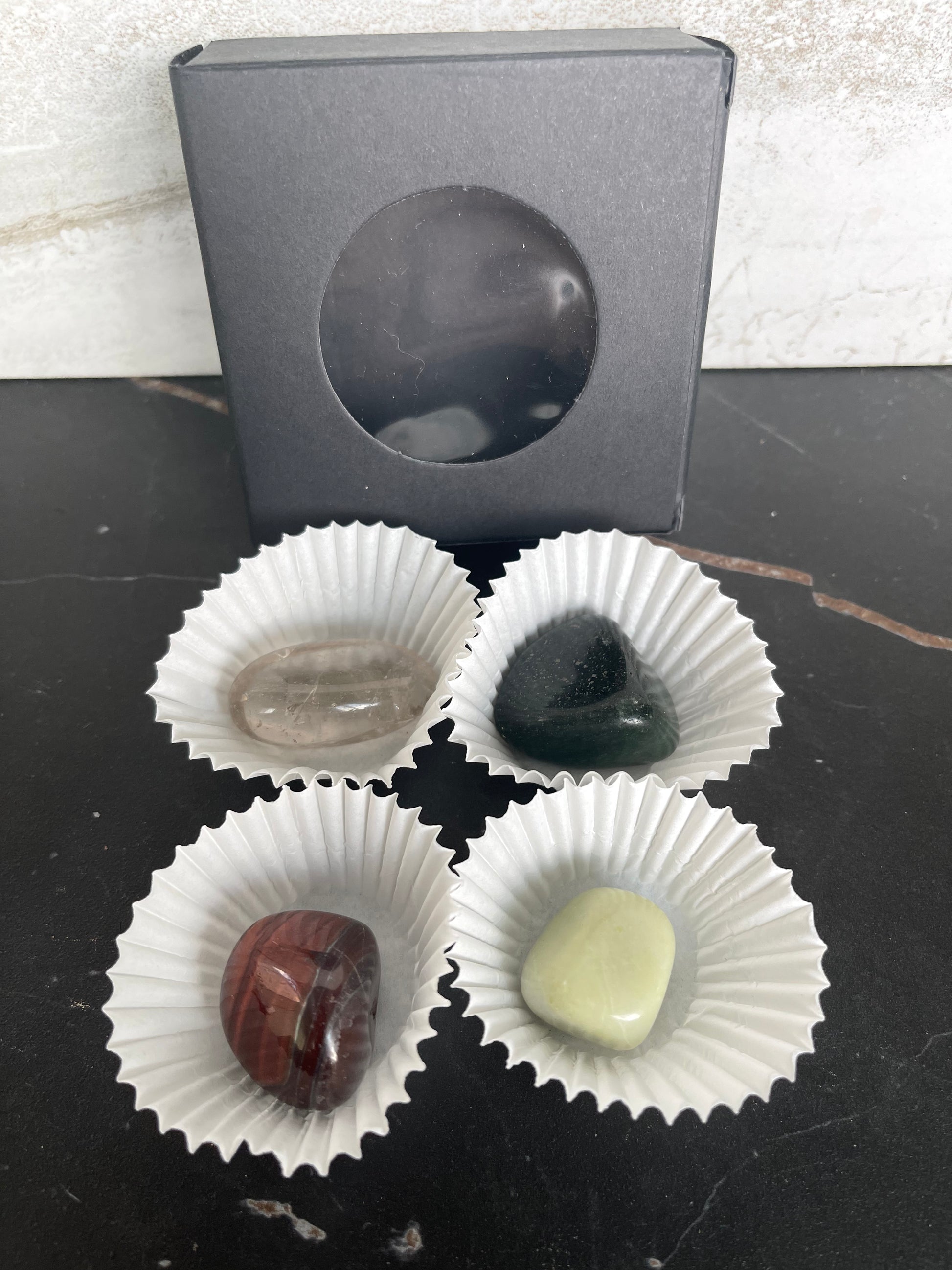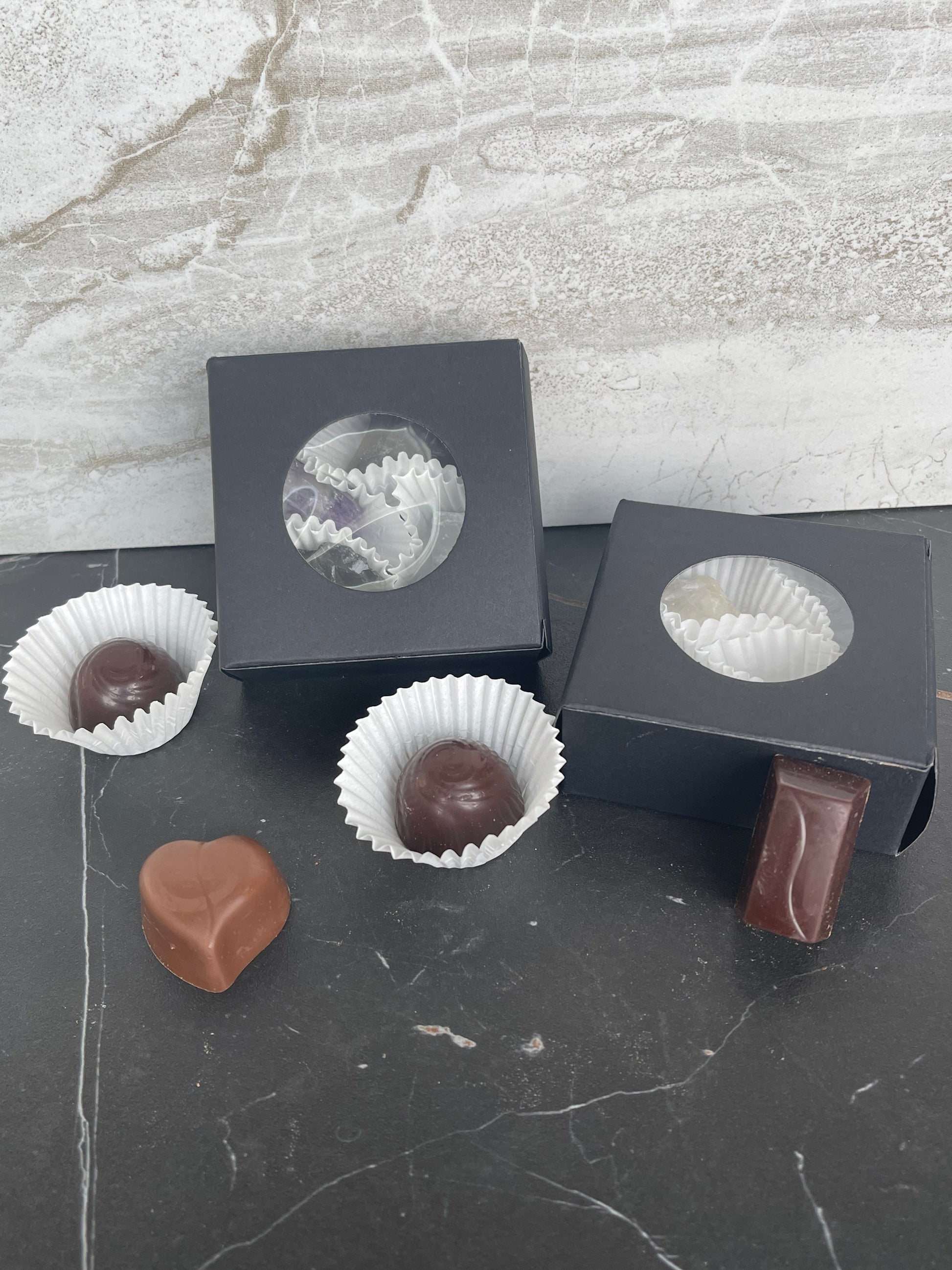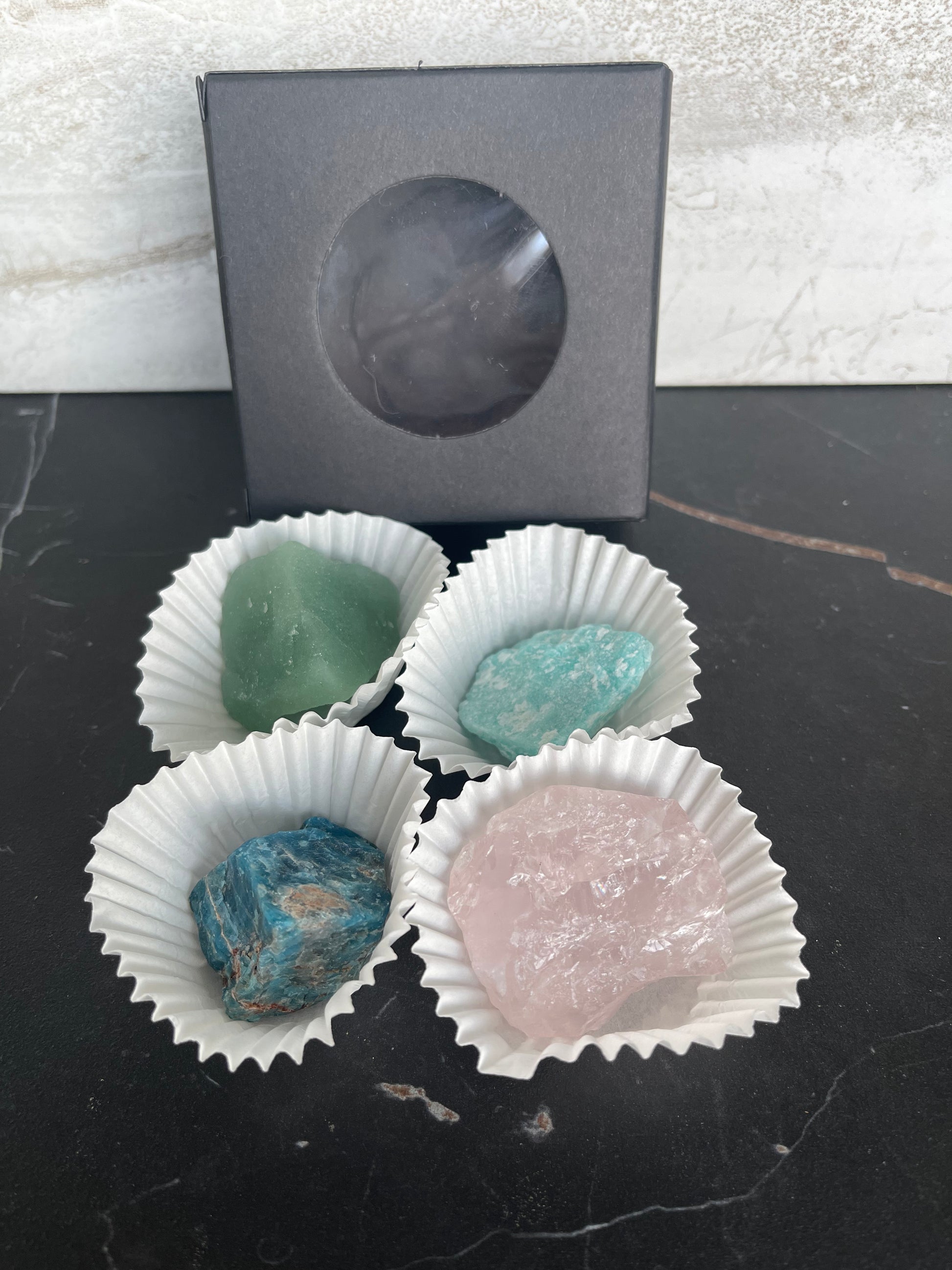 Looking for the perfect gift for your loved one, who's into crystals, or that hard to find gift for a friend or co-worker? This is the perfect one!  A play off a little box of chocolates, This is an individually wrapped Crystal “Candy” Box.  Pick out of Tumbled crystals, or Raw Crystals, and also choose from different options of crystals that would work perfectly for them.