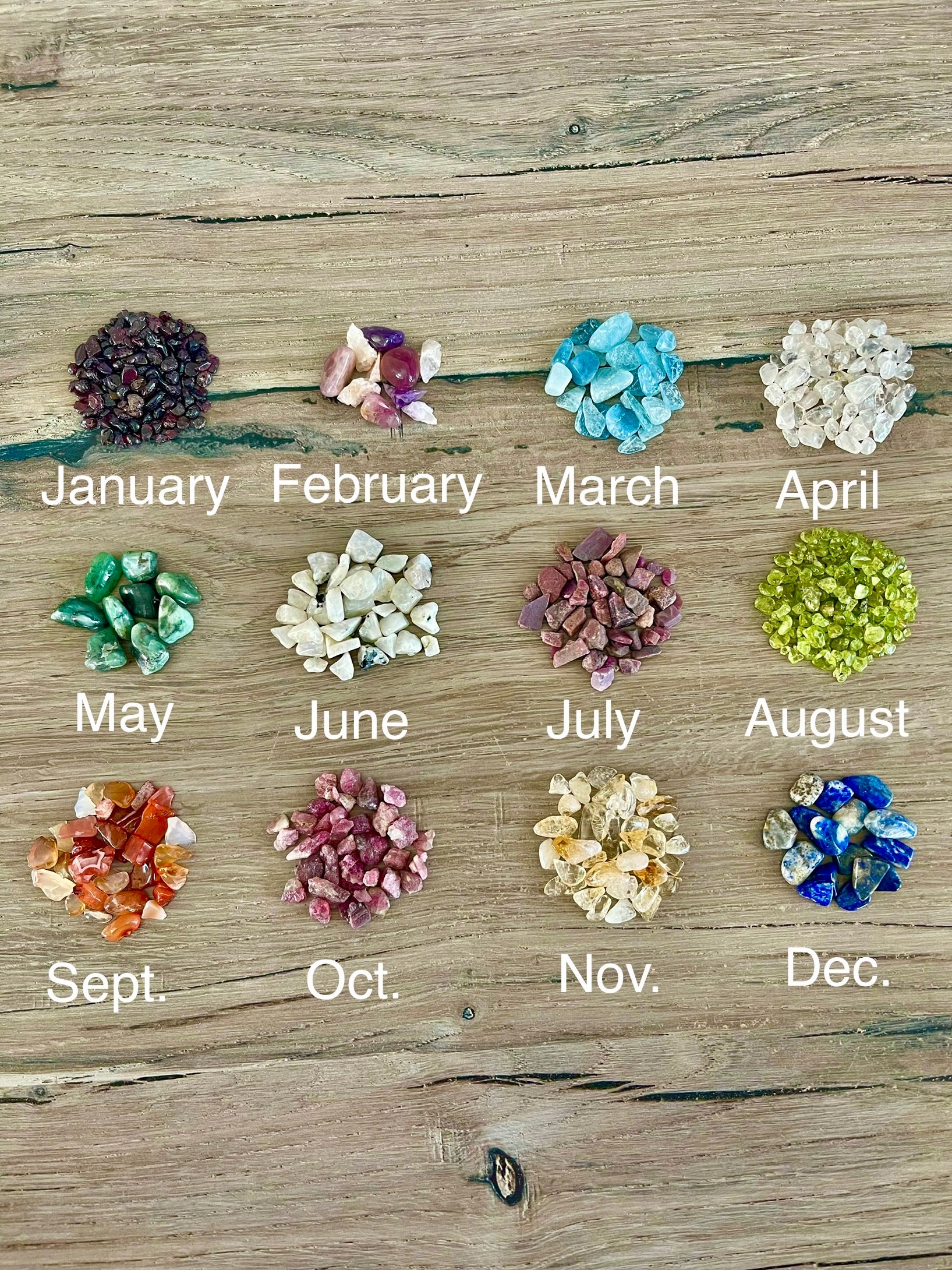 The example picture for this listing has 3 birthstones:  Amythest, Clear Quartz and Lapis.