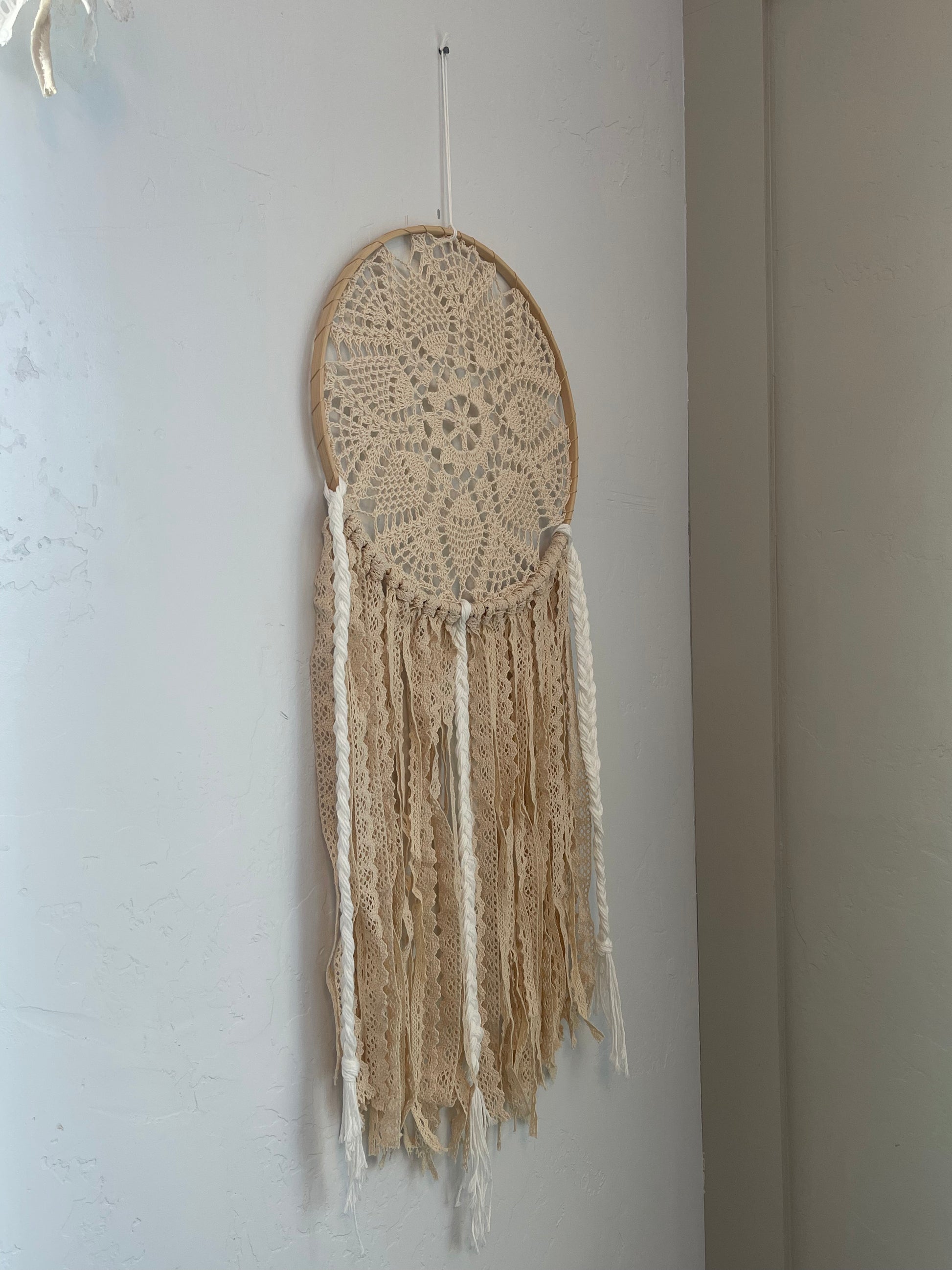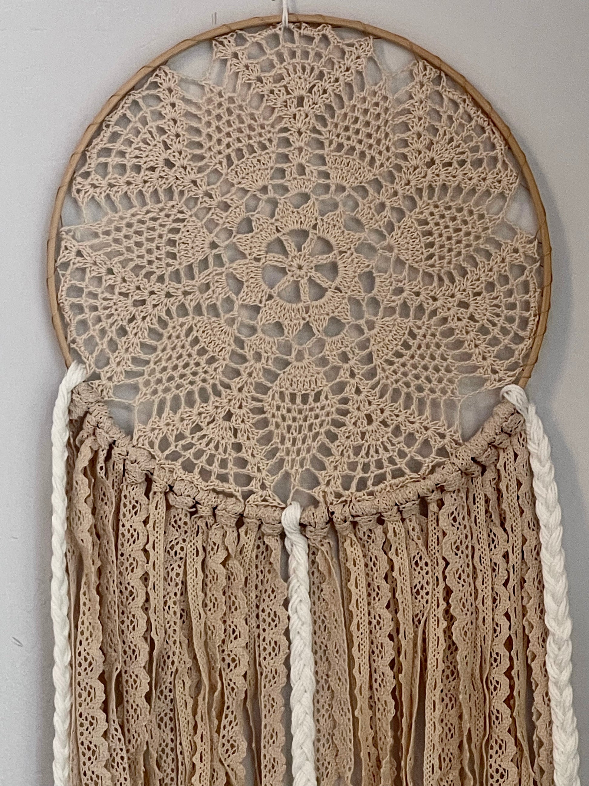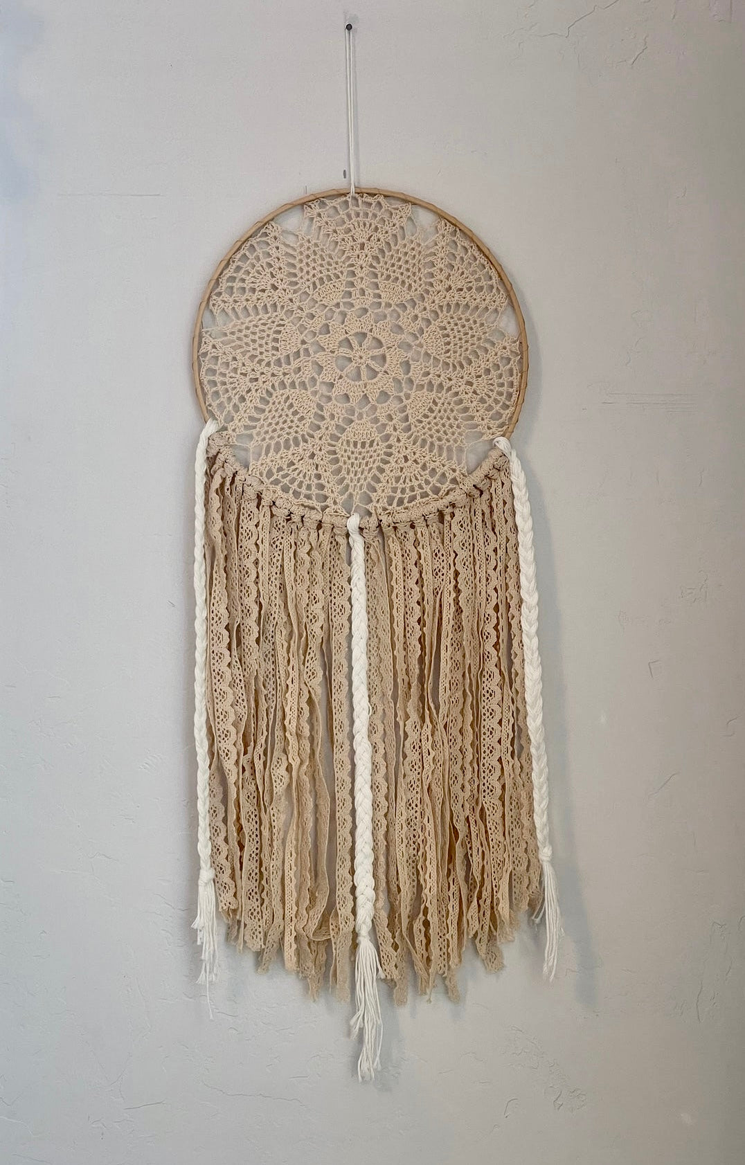 Beige Mandala Crochet and Lace Dreamcatcher.