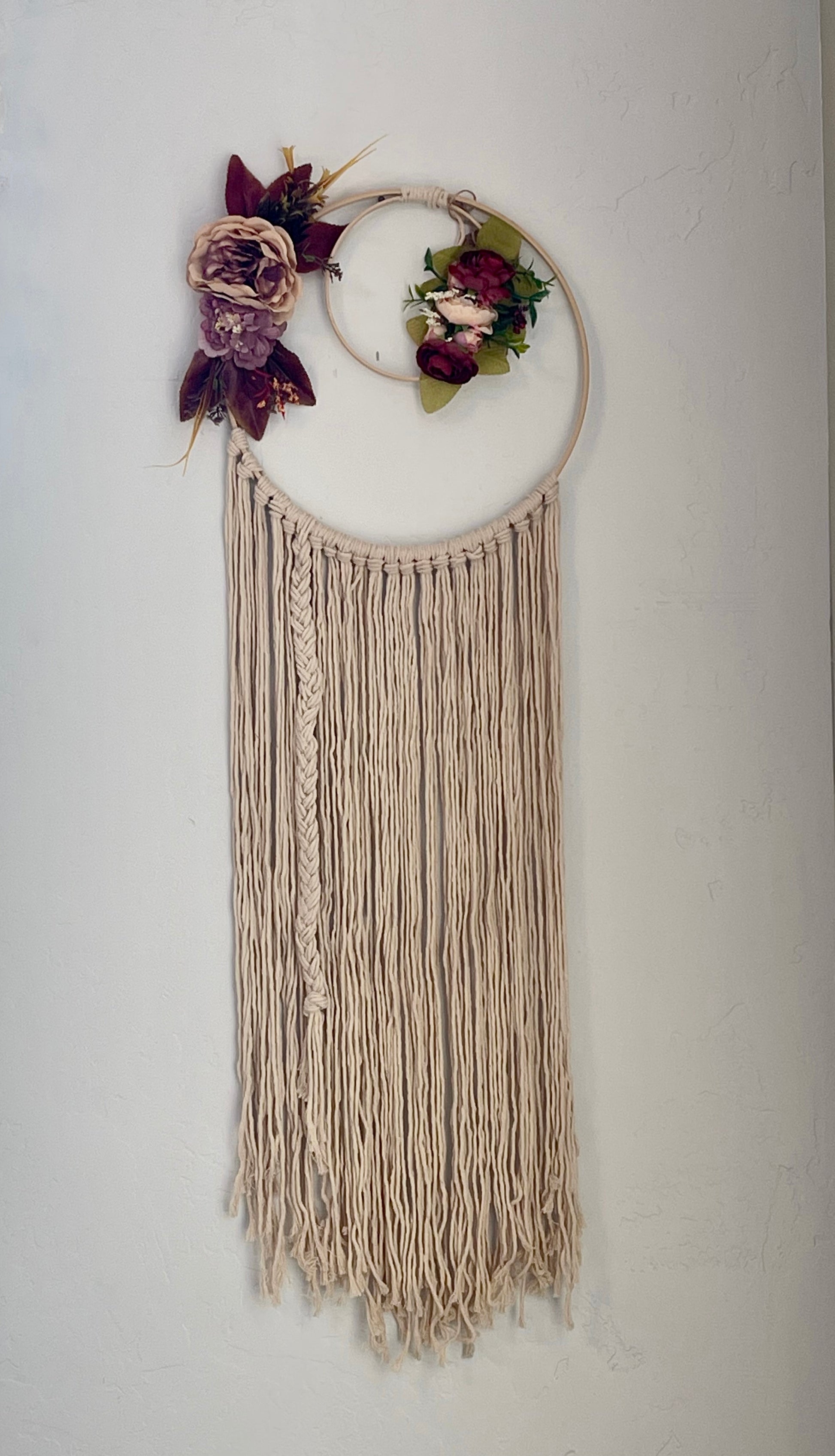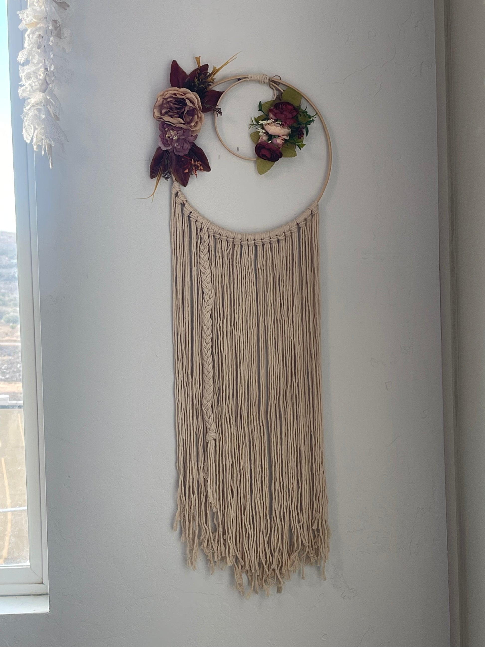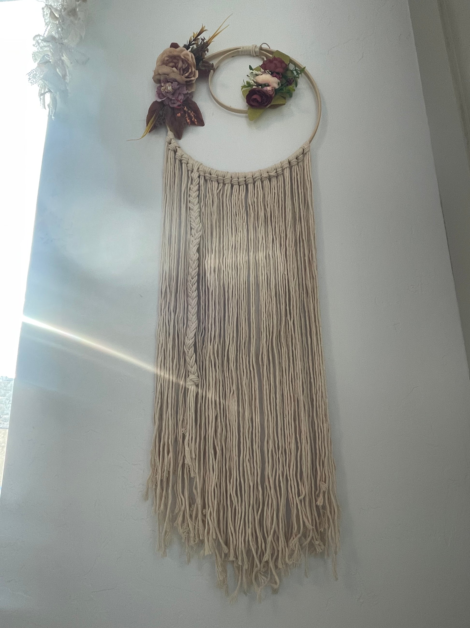 This Macramé wall hanging is a stunning intricately knotted dreamcatcher.  Very beautiful macramé wall hanging is suitable for bedrooms, living spaces and even party/wedding occasions adding an element of boho to its environment.