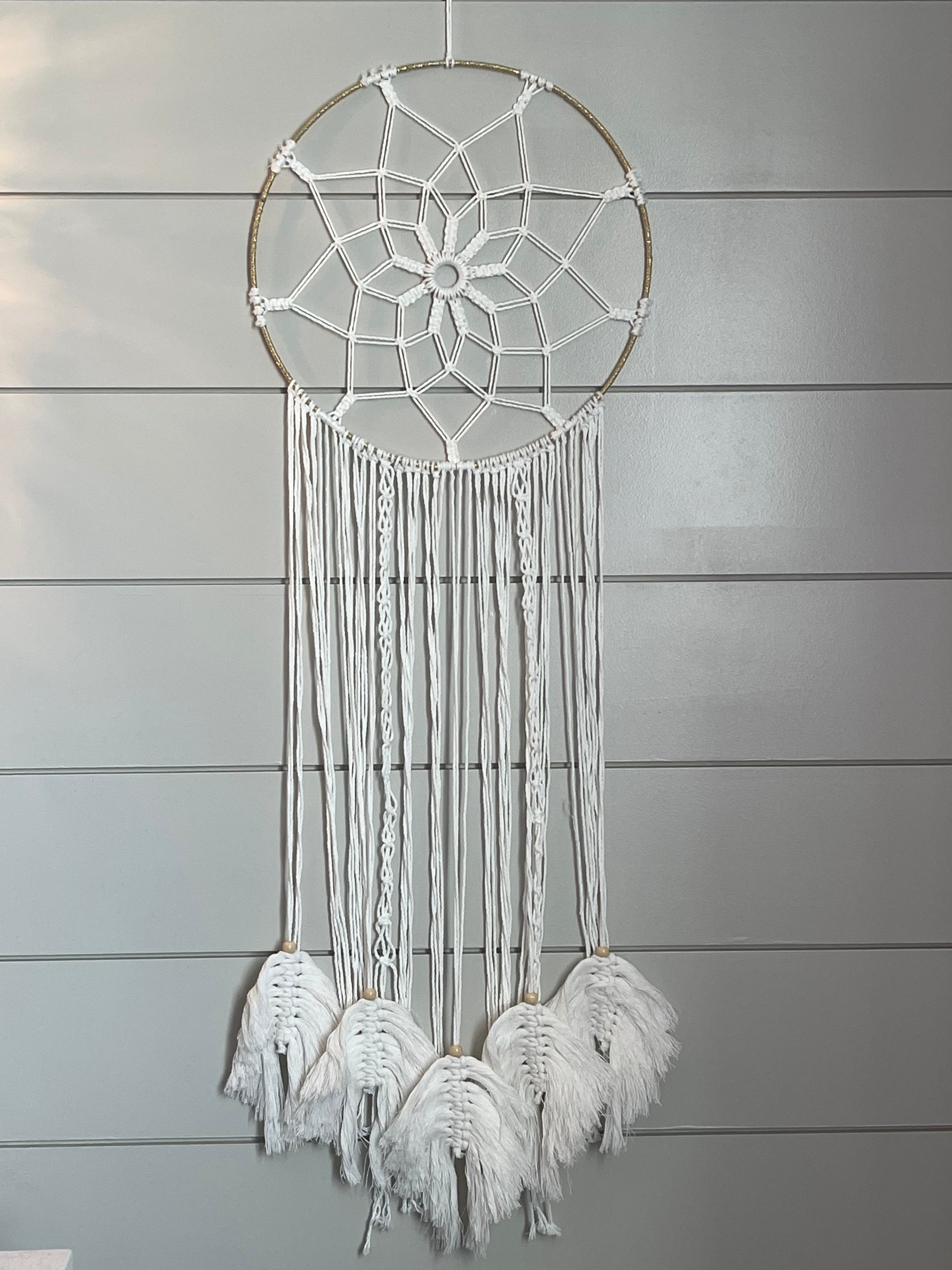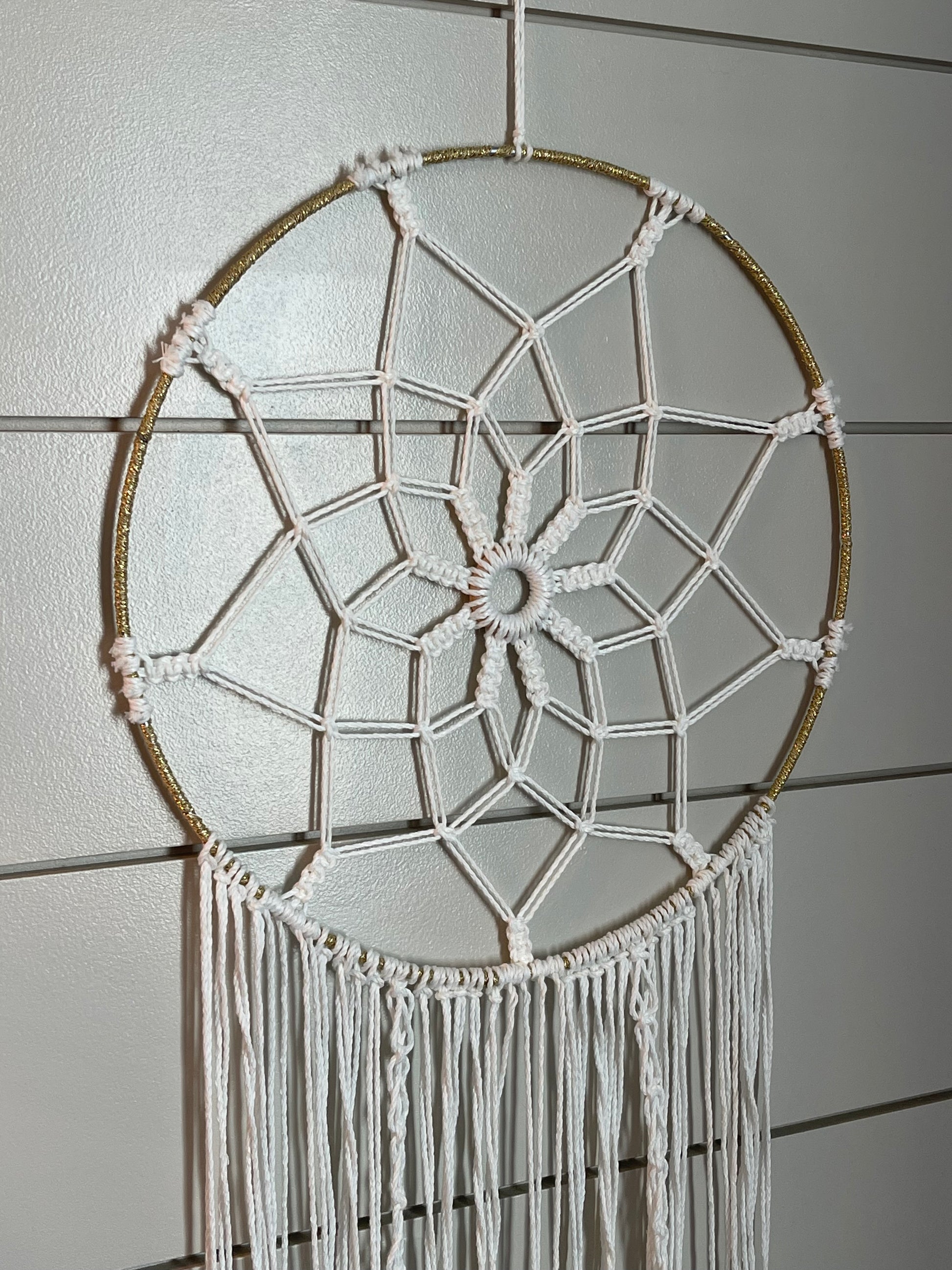 This beautiful golden hoop macreme dreamcatcher is the perfect minimalist addition to your boho decor.
