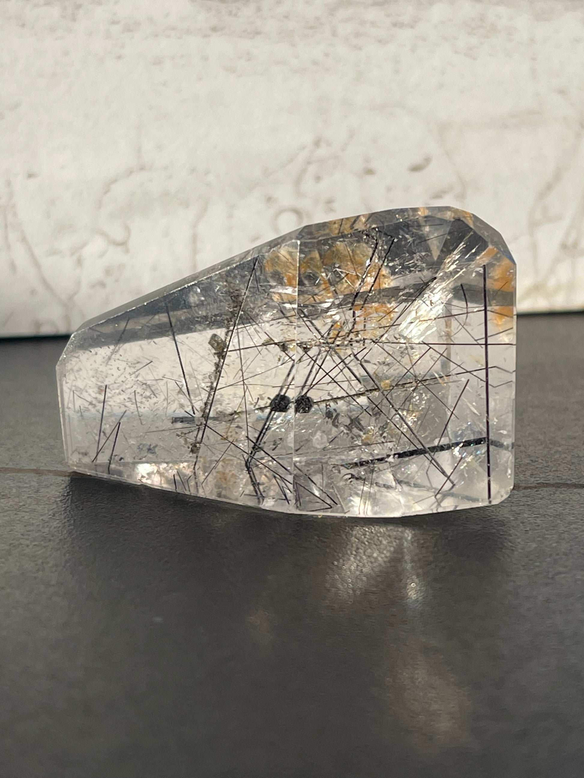 Rutilated quartz is a variety of quartz which contains needle like inclusions of Rutile. These inclusions mostly look golden, but they can also look silver, copper red or deep black.