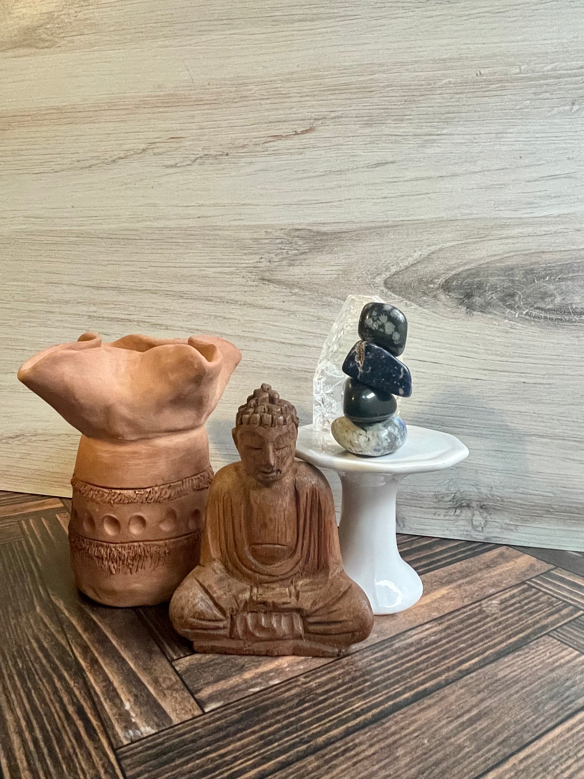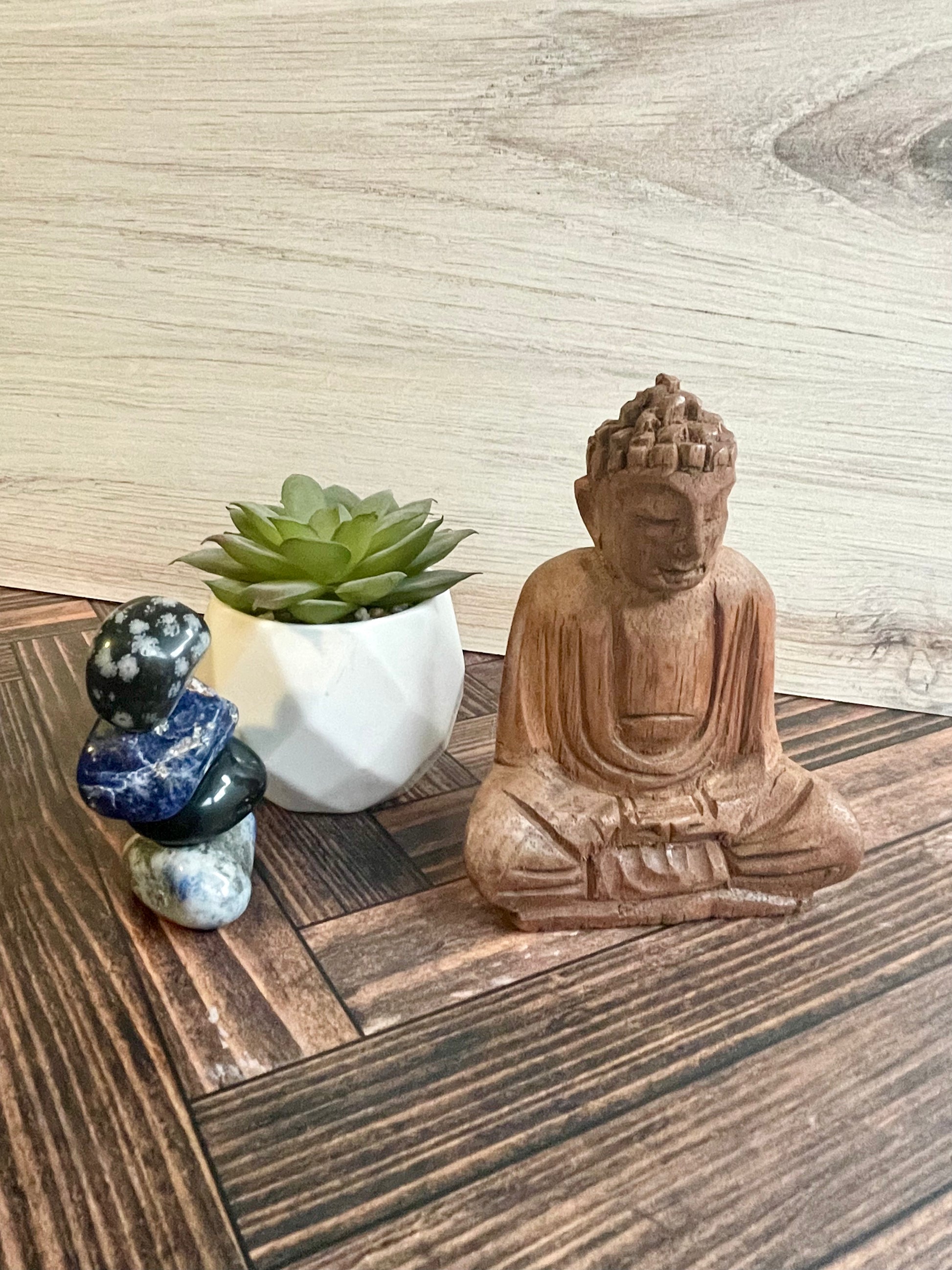 This unique one-of-a-kind hand carved wooden Meditating Buddha is a perfect addition to your bohemian home decor. The intricate details of this Buddha embody the perfect balance between beauty and spirituality.