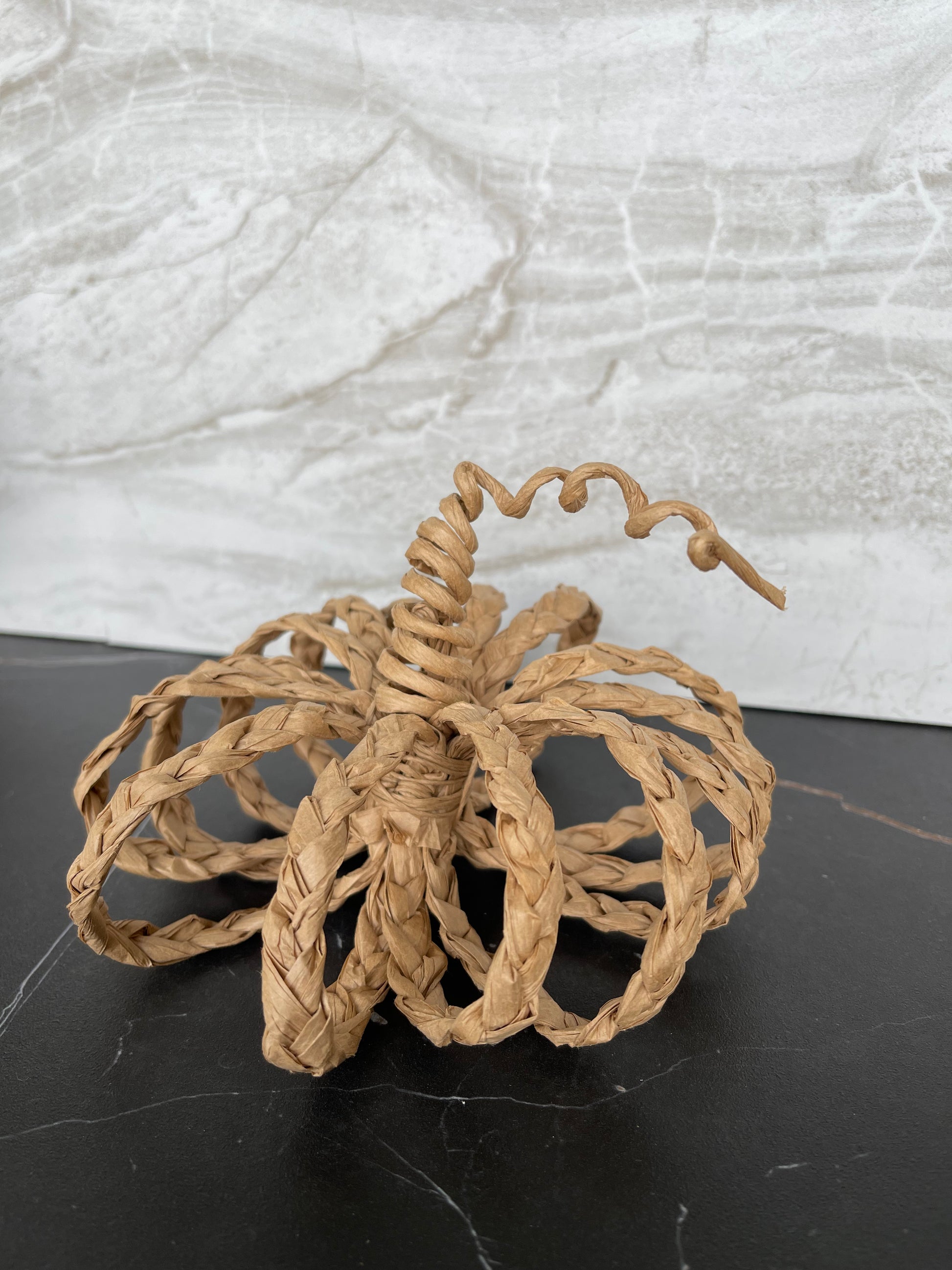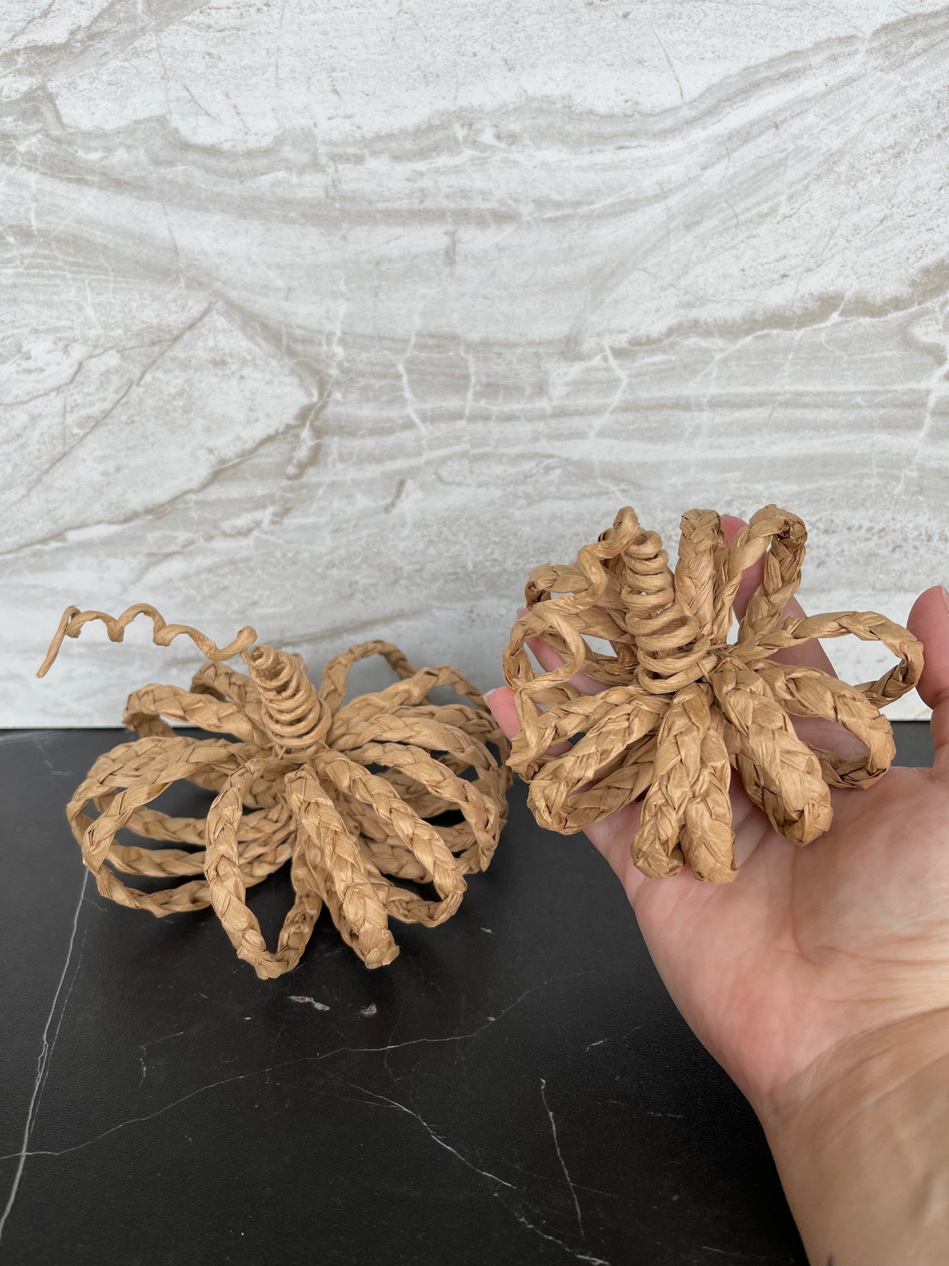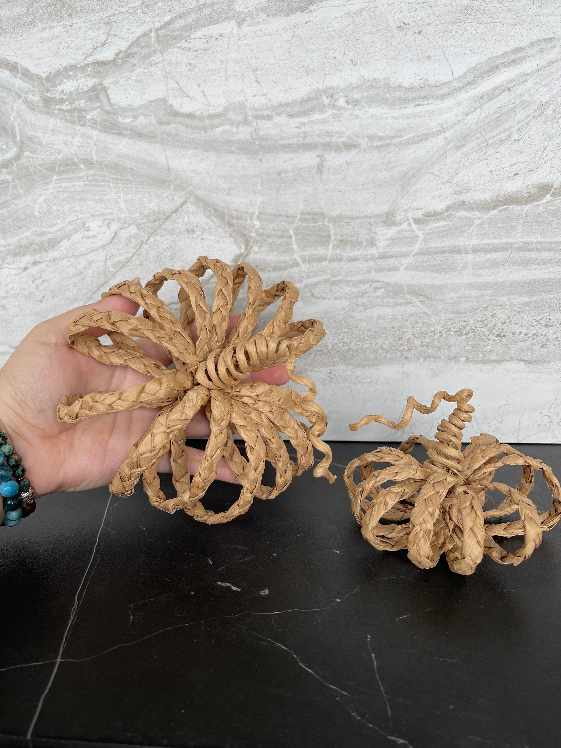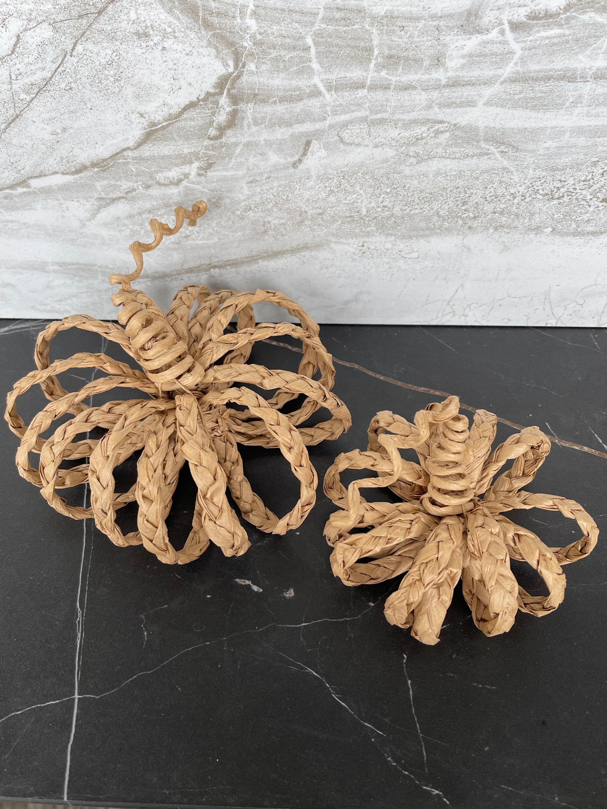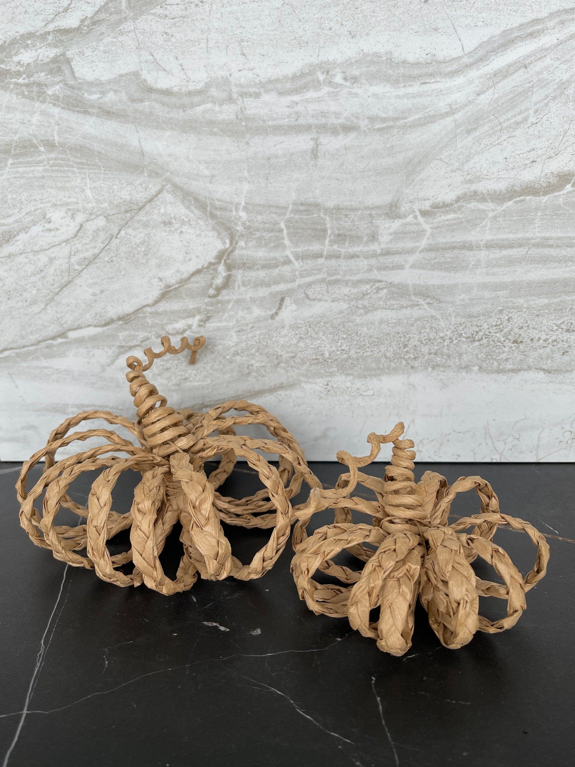 Handmade rattan pumpkins, sold as a set.  One med one small.