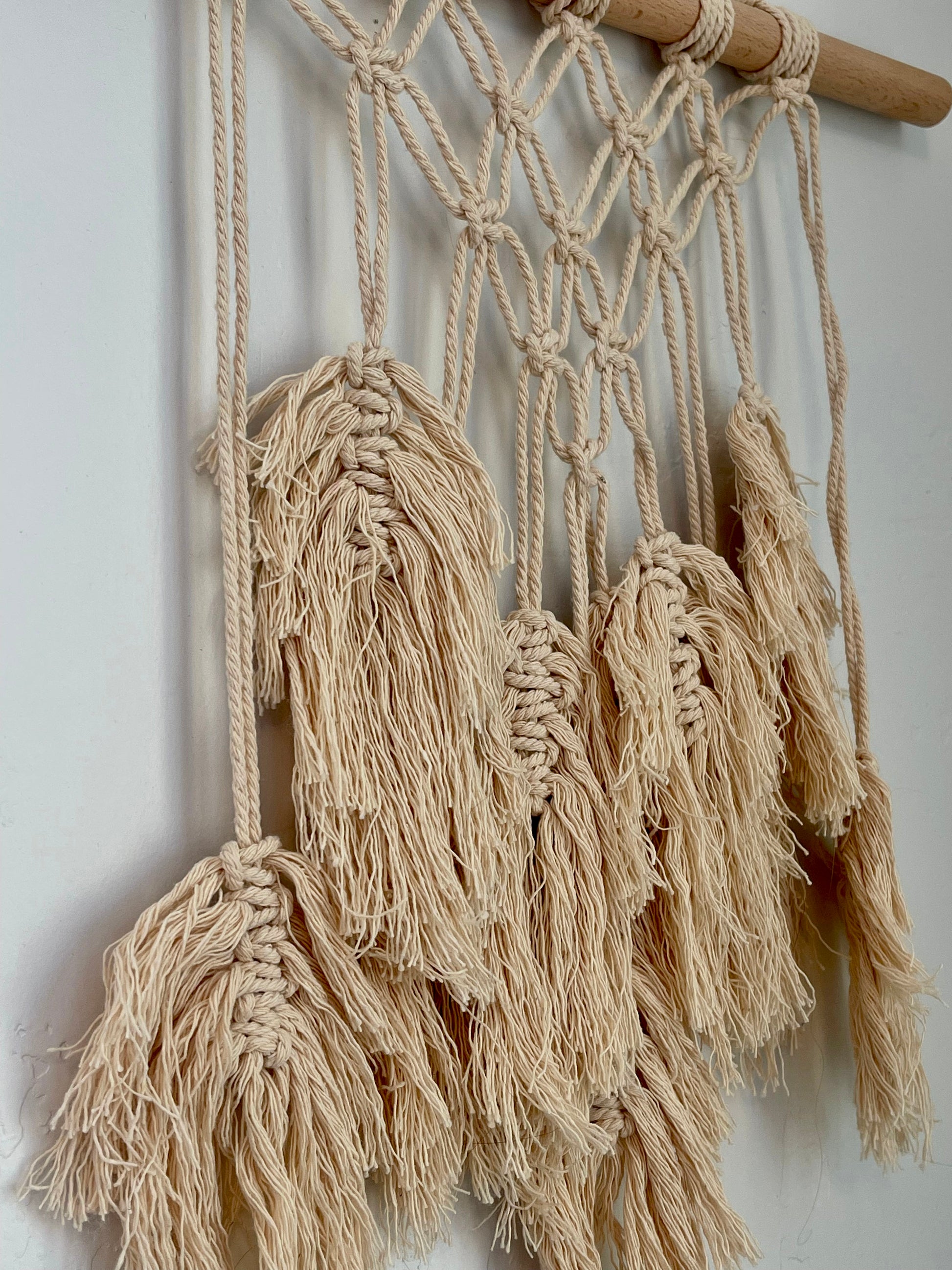 The Ivy is a stunning wall hanging intricately knotted with crochet and plaited cotton tassels helping it to stand out as a true statement piece.