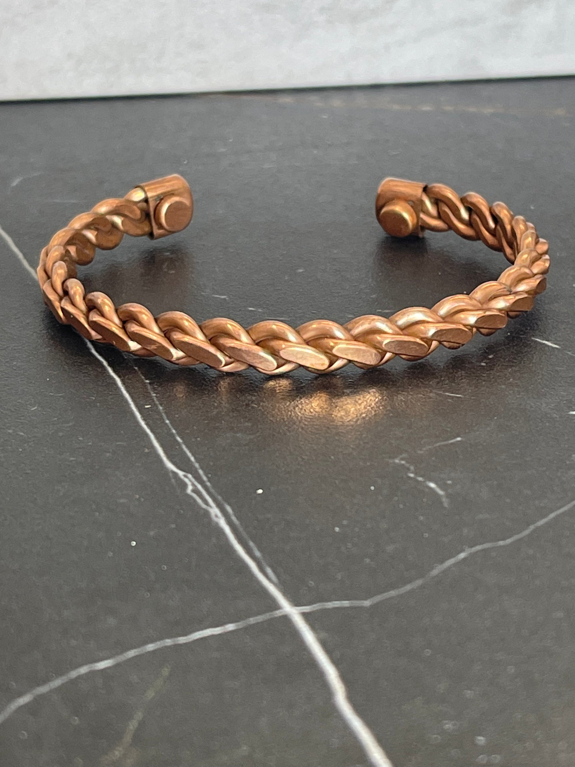 Copper is a timeless healing metal. A variety of ancient peoples fashion jewelry out of copper with the belief that it naturally conducts healing energies. In a magnetic bracelet copper and magnets work together harmoniously to produce a therapeutic affect.