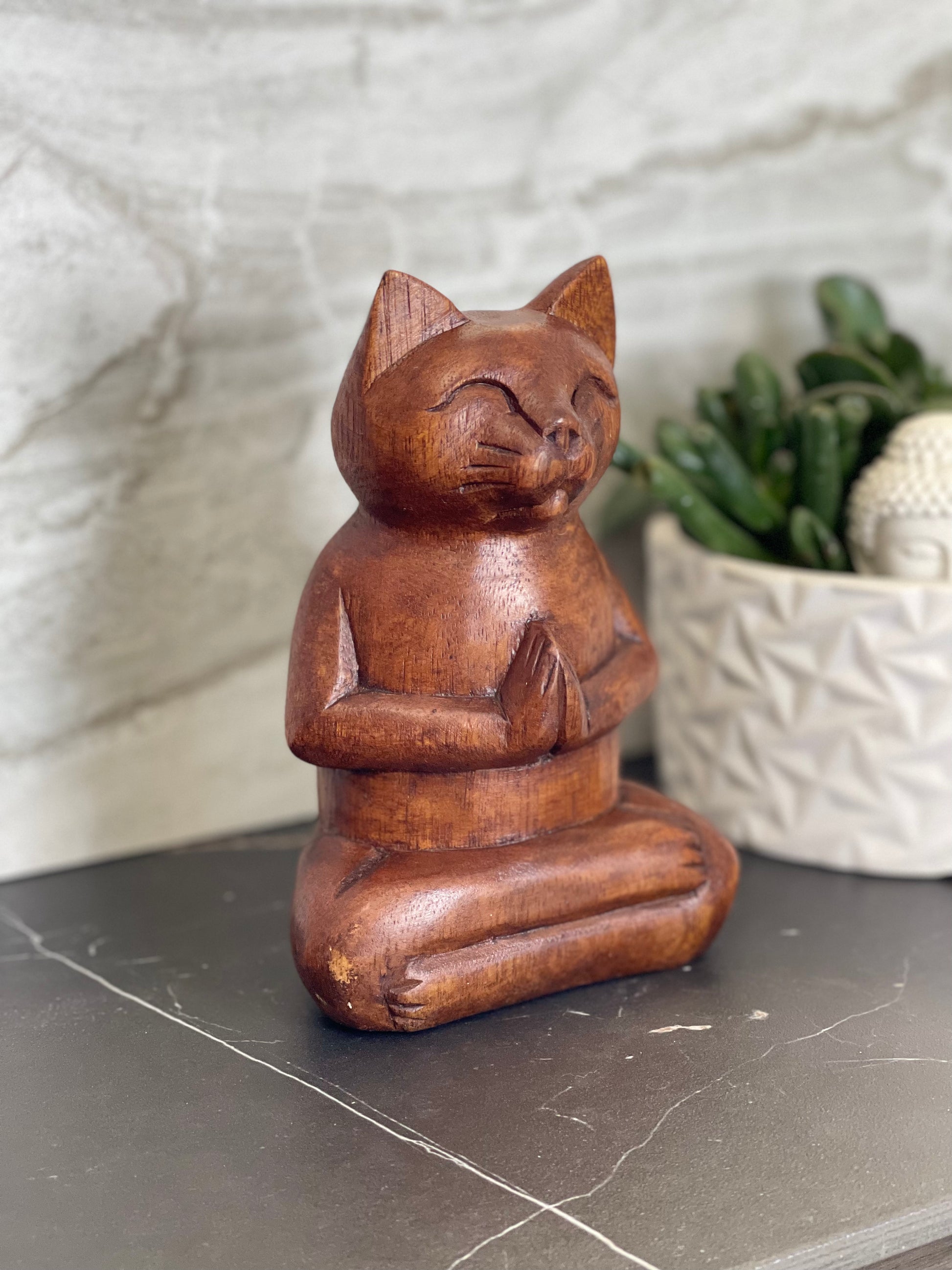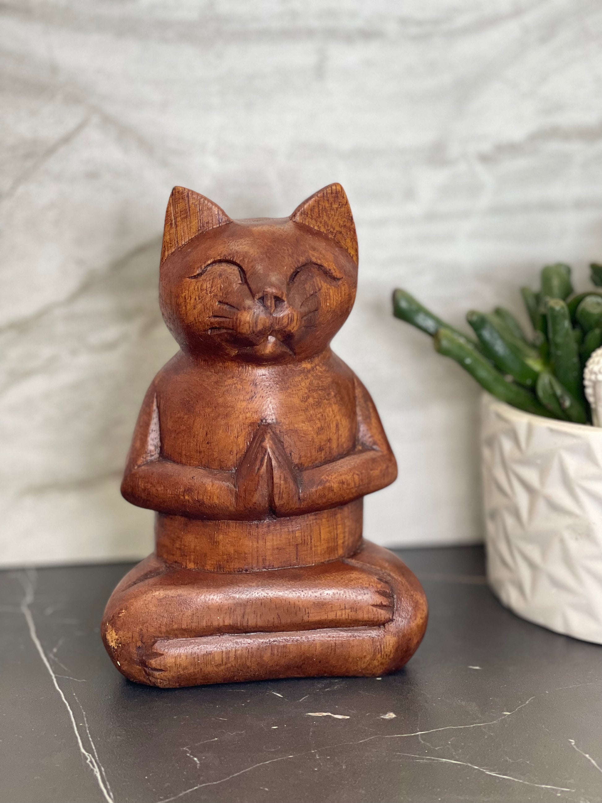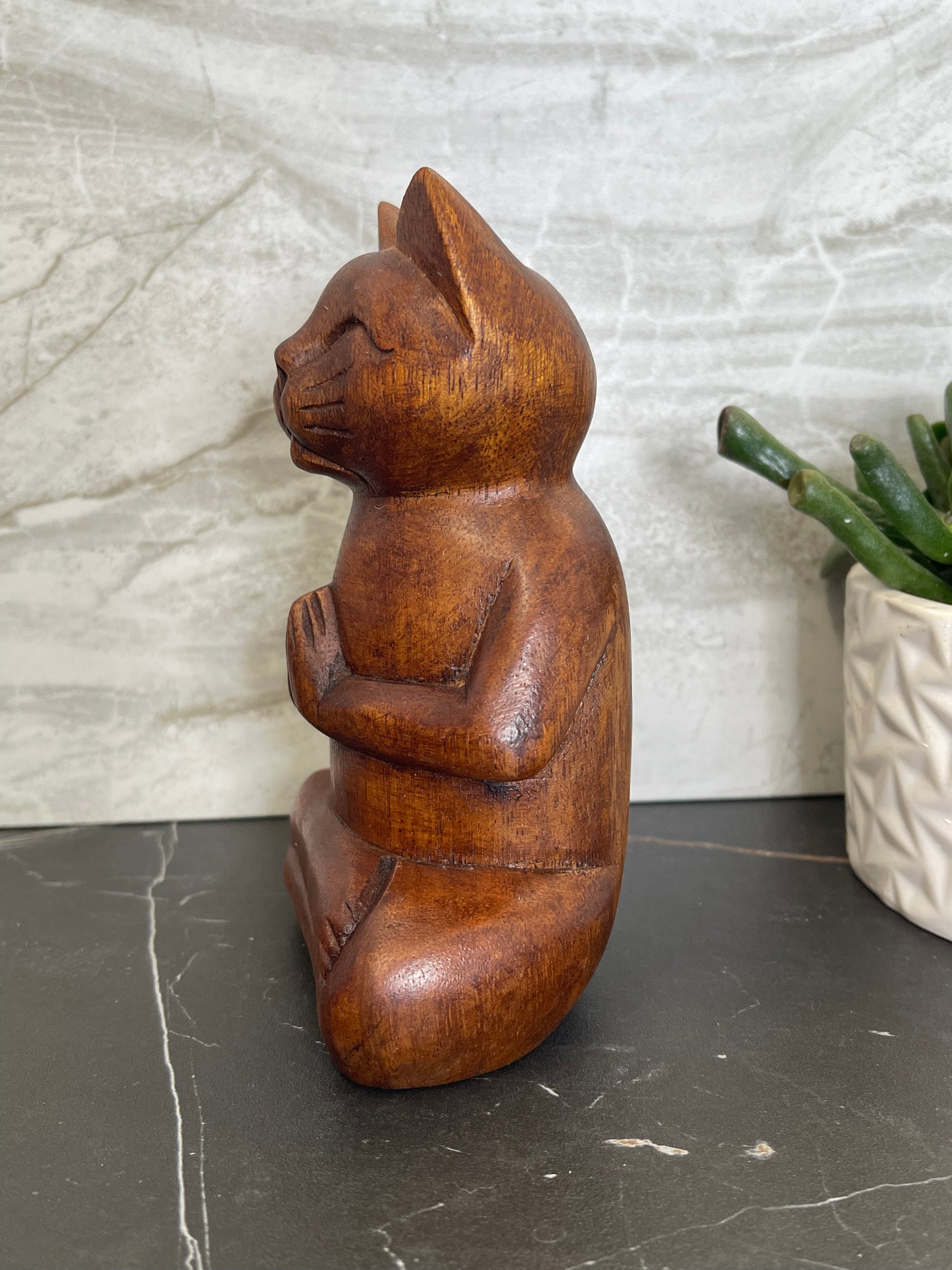 Meditating Wooden Cat