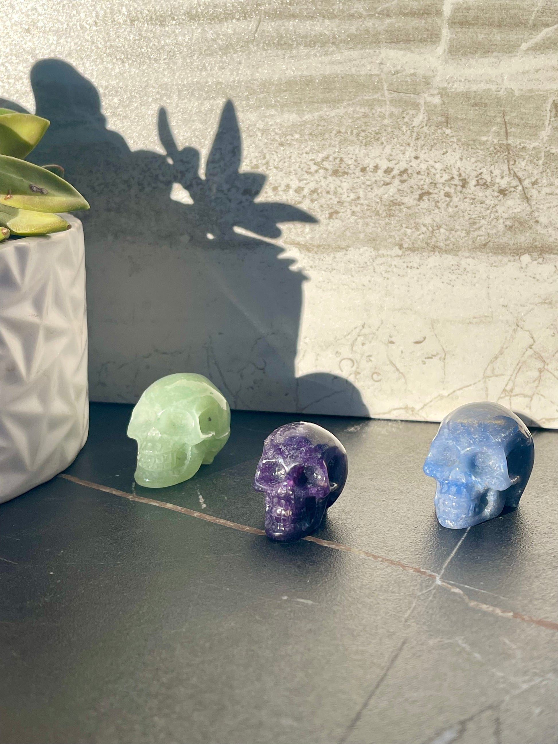 Beautiful mini skulls made from different crystals.  Perfect to add just that little touch.