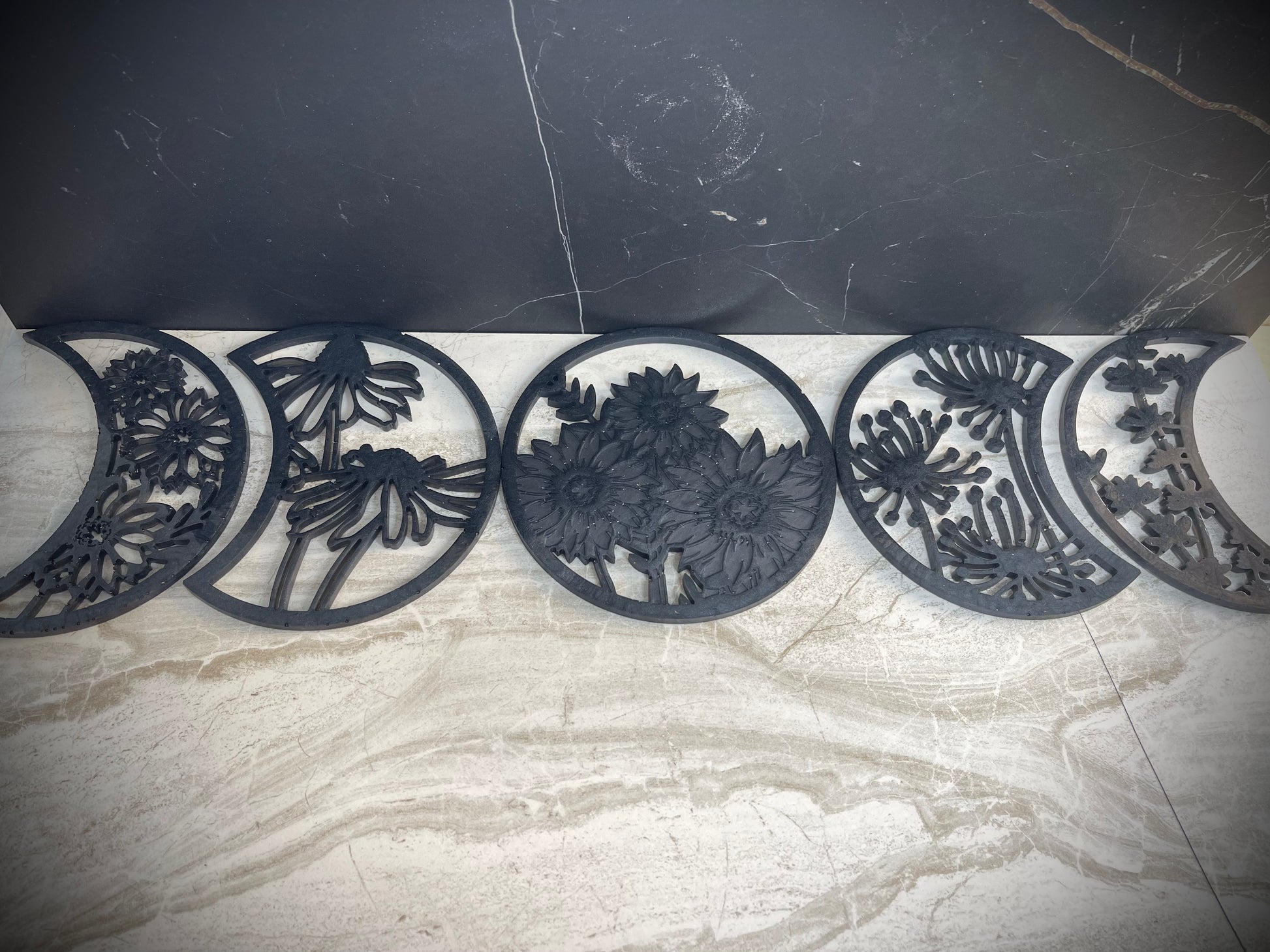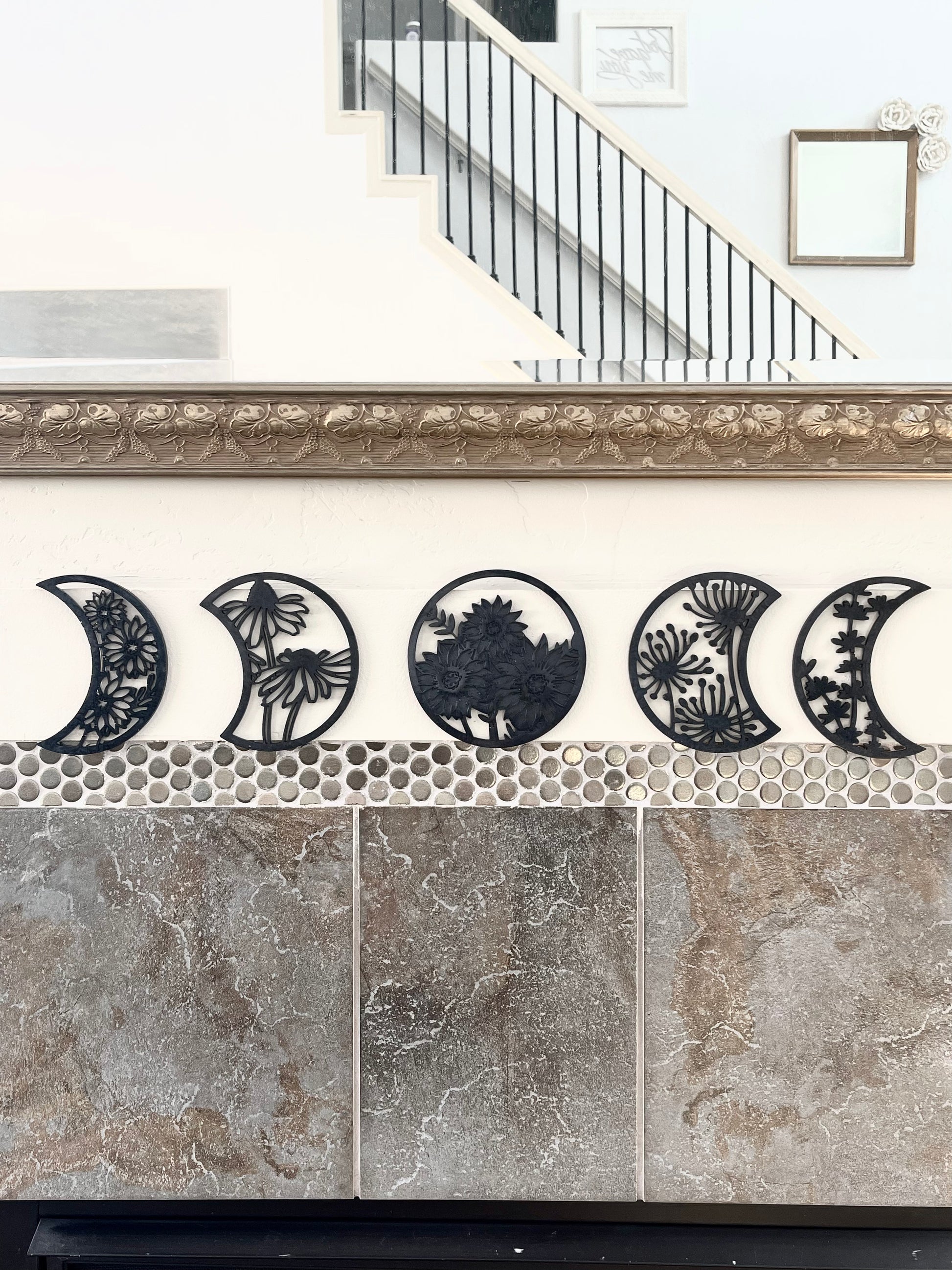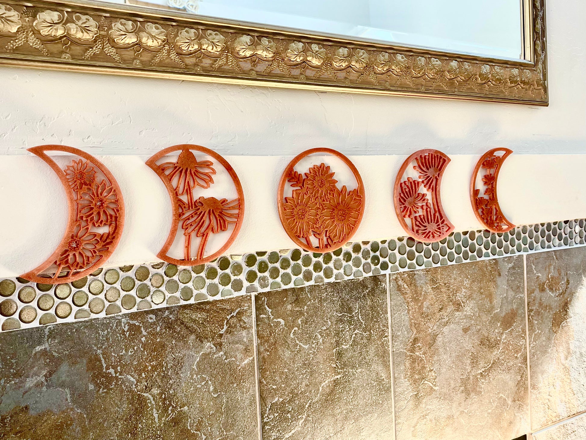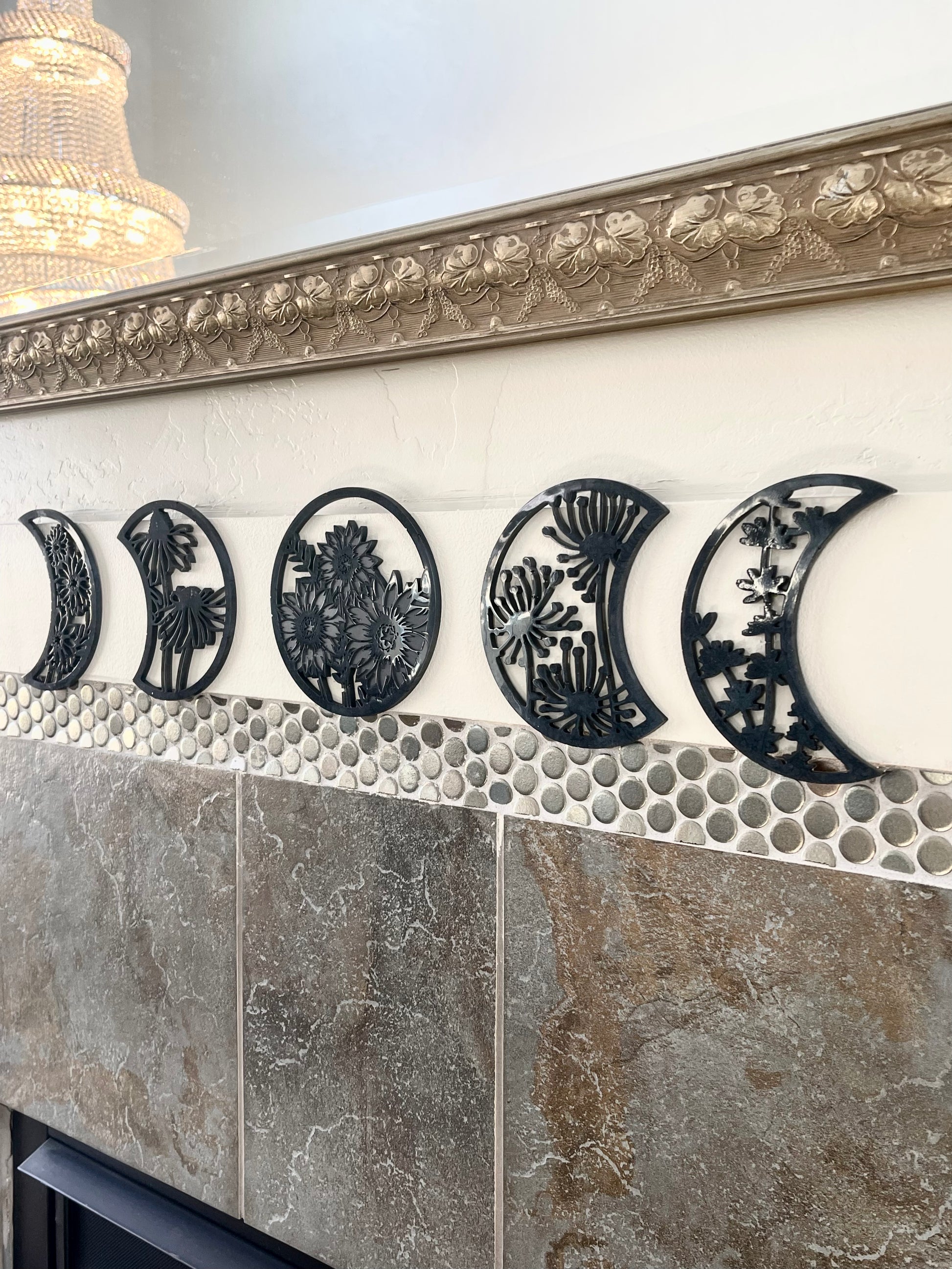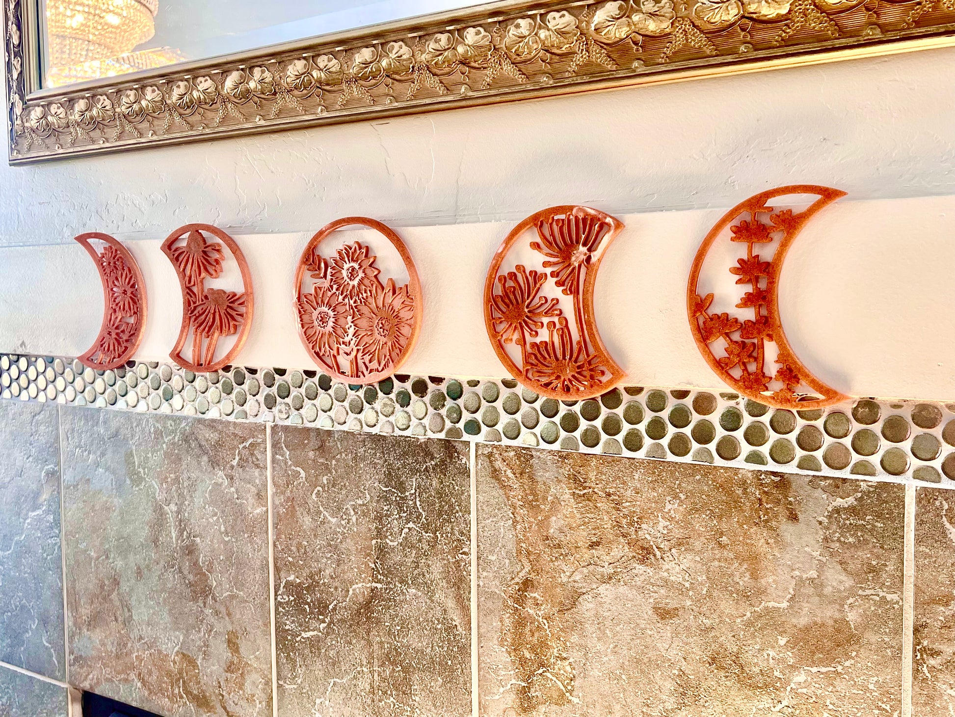 This stylish wall decor is hand poured and made of acrylic, featuring clear depictions of five distinct moon phases, adorned with flowers. Expertly crafted, this wall decor will make the perfect addition to any living space.
