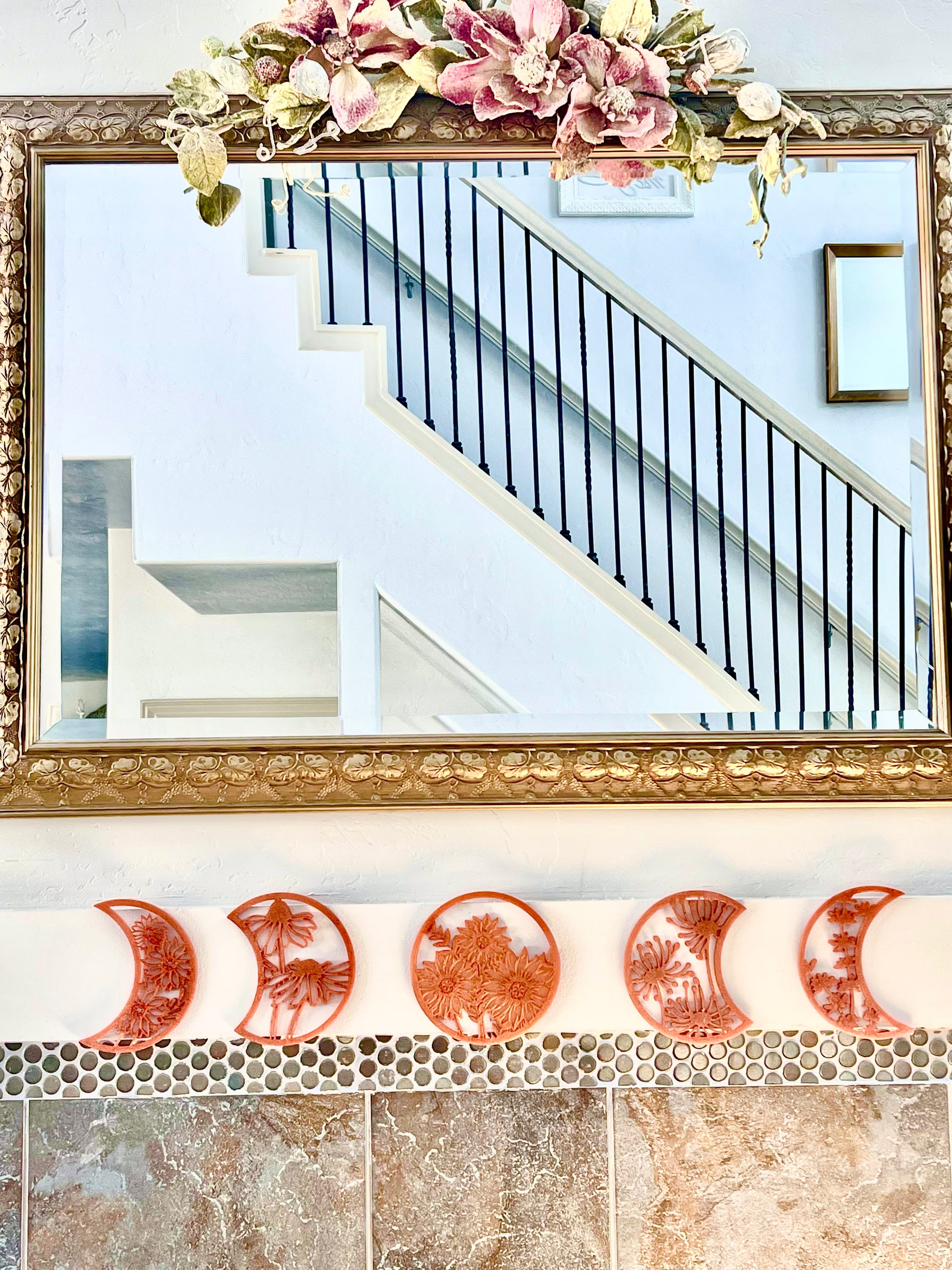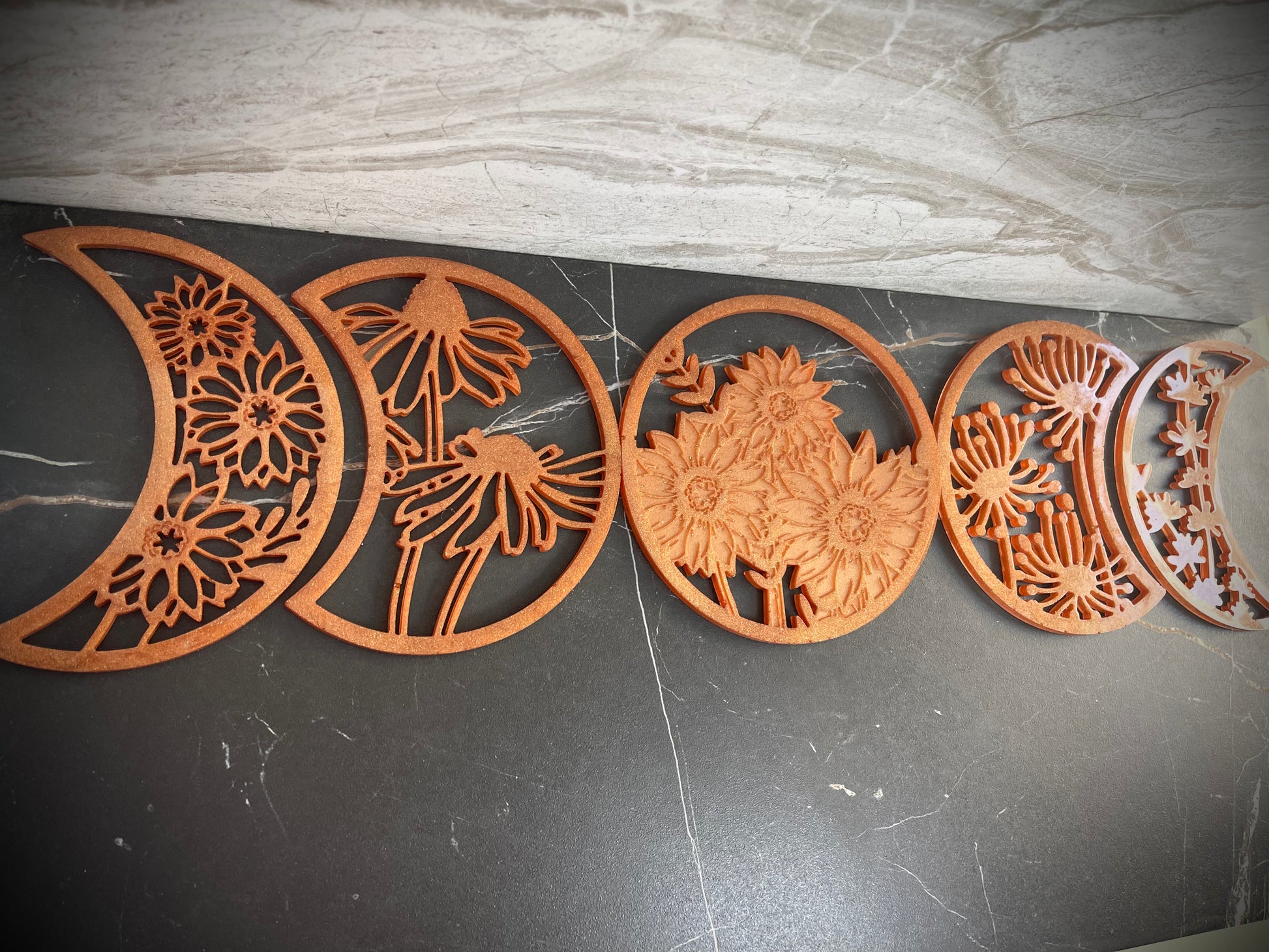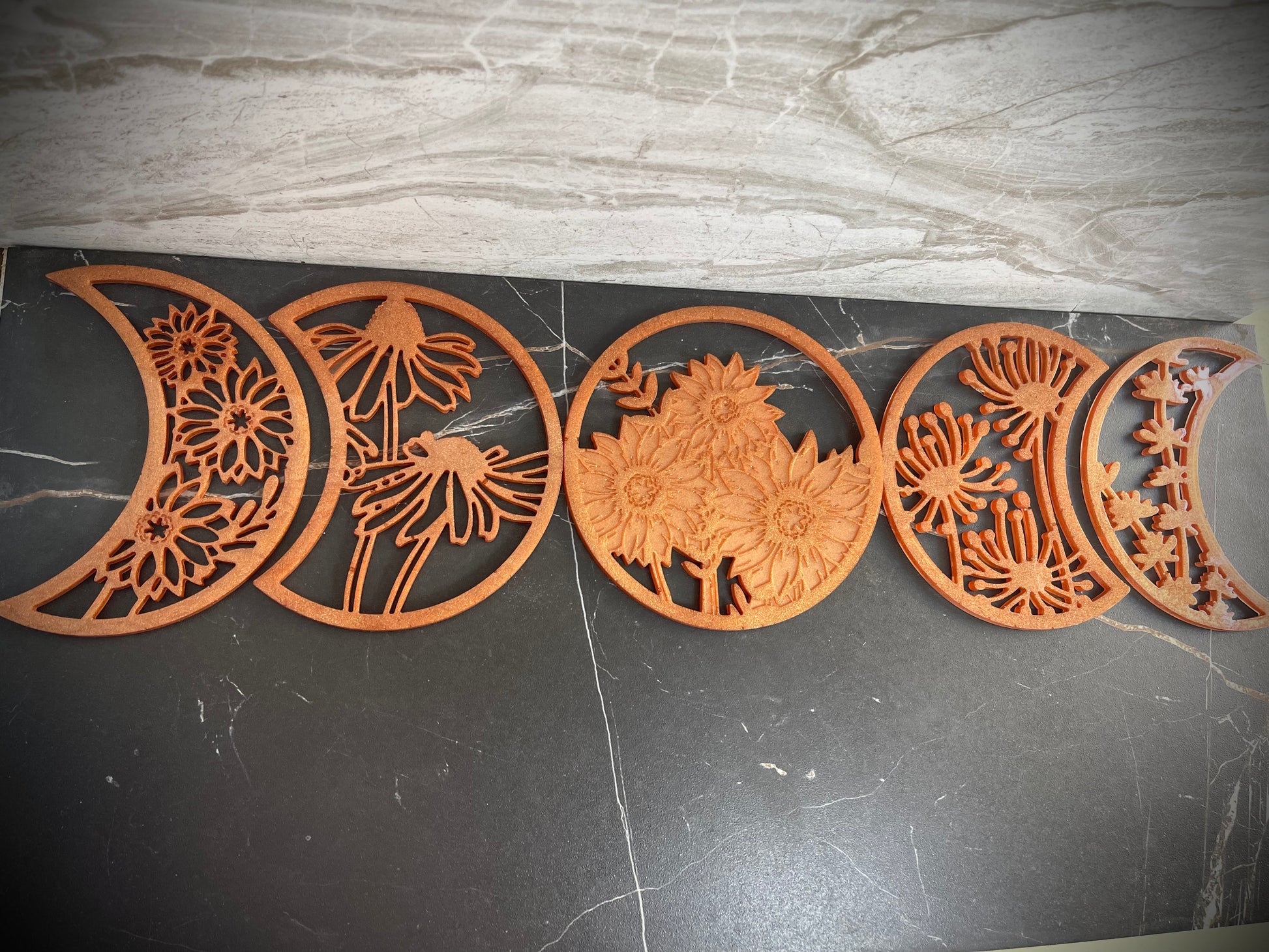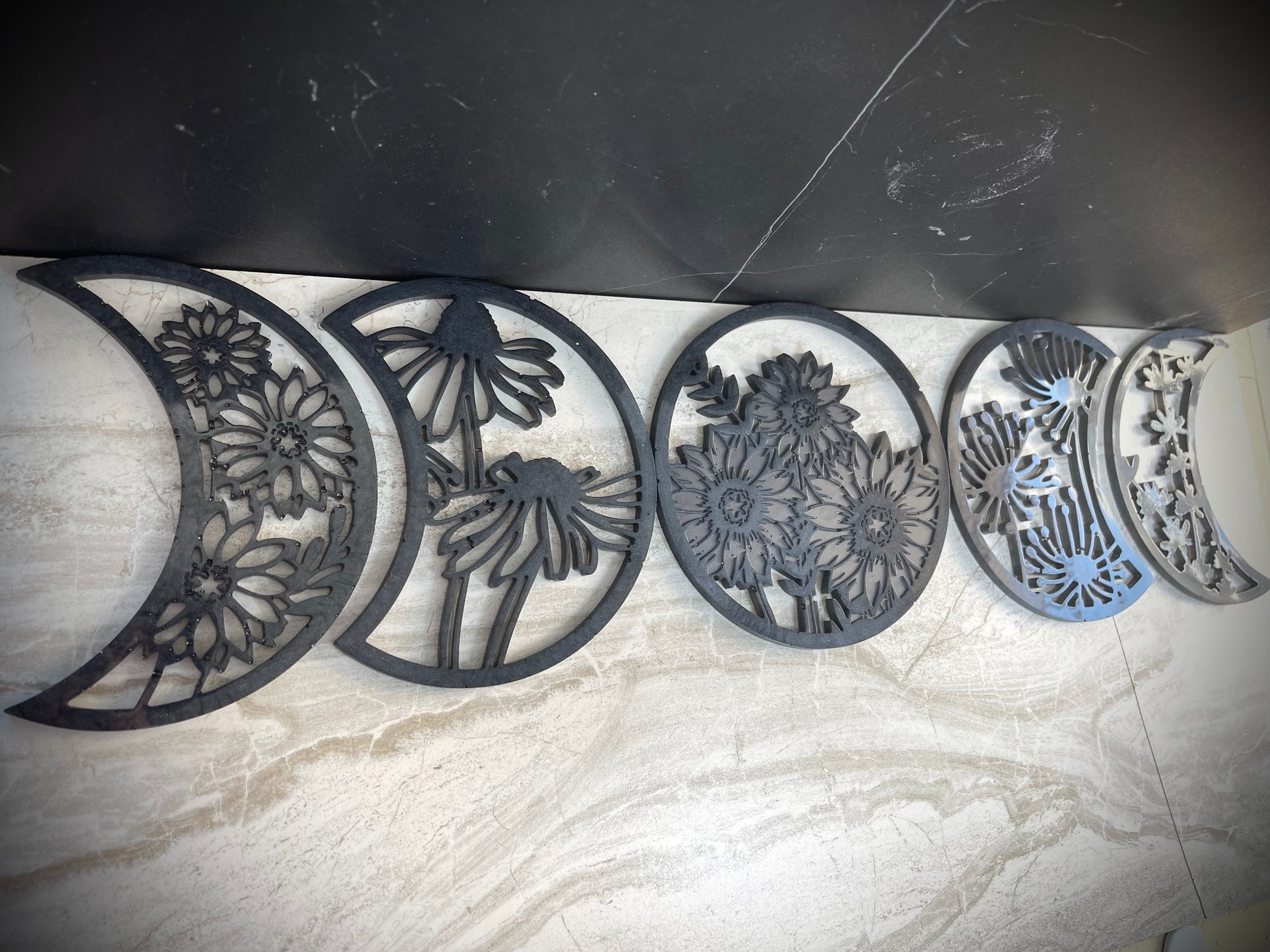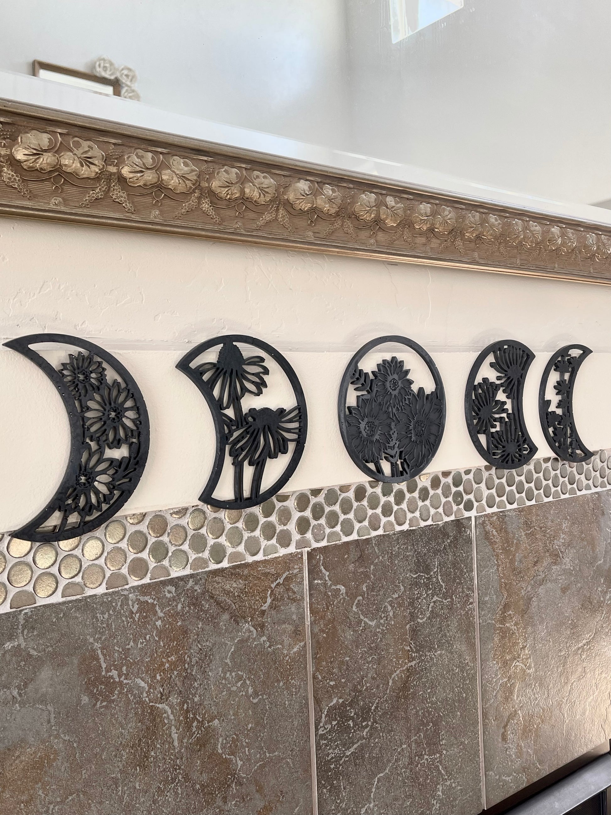 This stylish wall decor is hand poured and made of acrylic, featuring clear depictions of five distinct moon phases, adorned with flowers. Expertly crafted, this wall decor will make the perfect addition to any living space.
