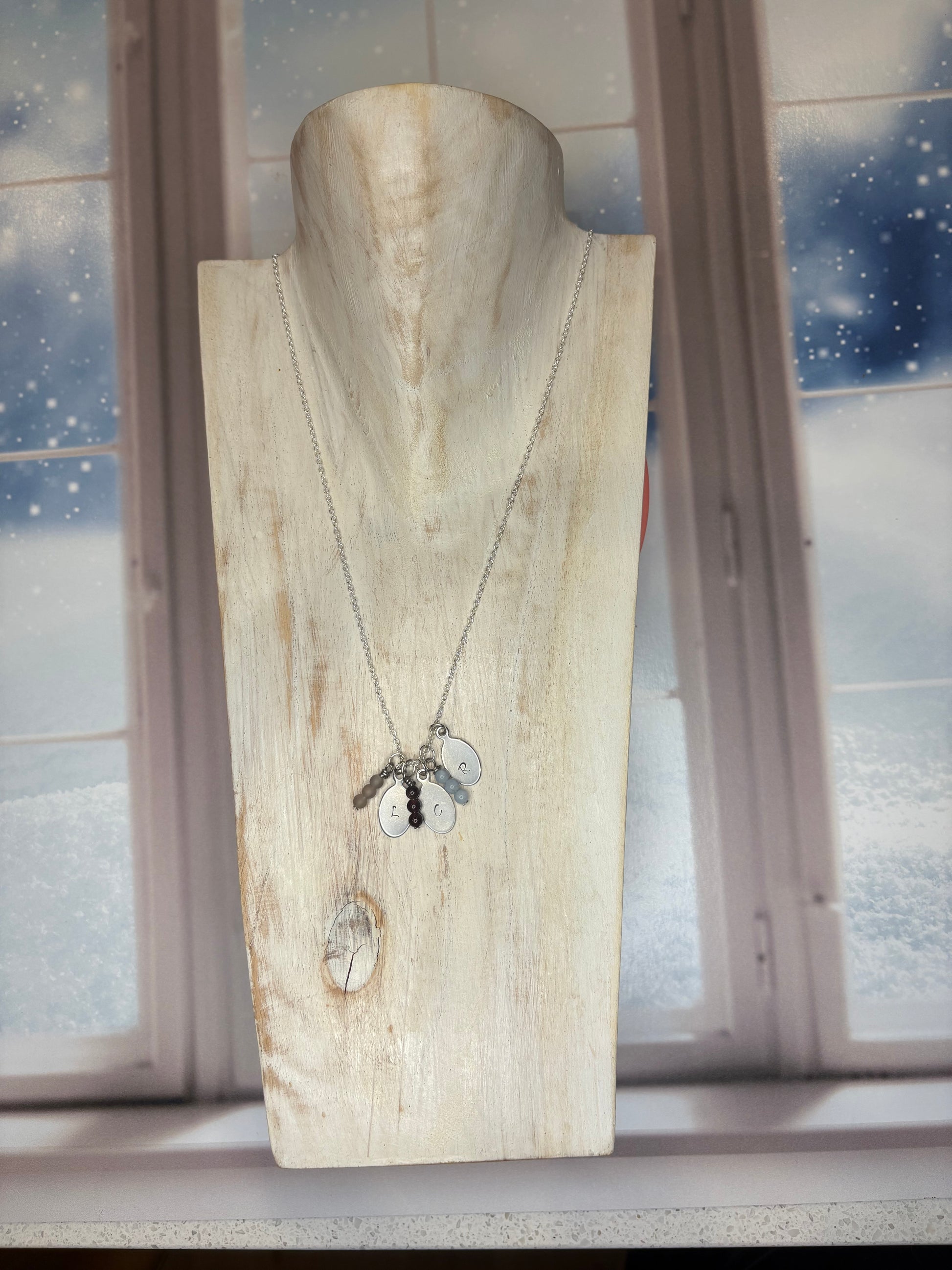 Create a one-of-a-kind piece with our personalized initial birthstone necklace. Handmade with sterling silver charms, choose your own birthstone for a unique and meaningful necklace. Make a statement with this customizable necklace.  Perfect gift for that special someone.
