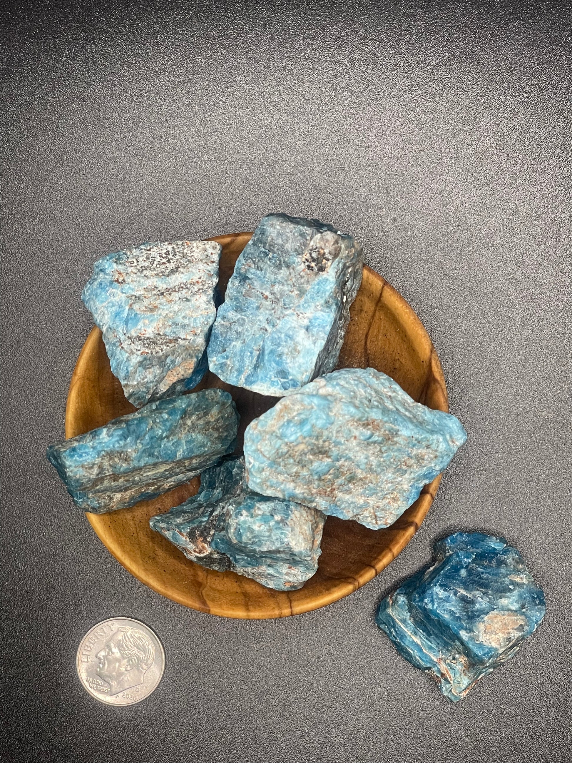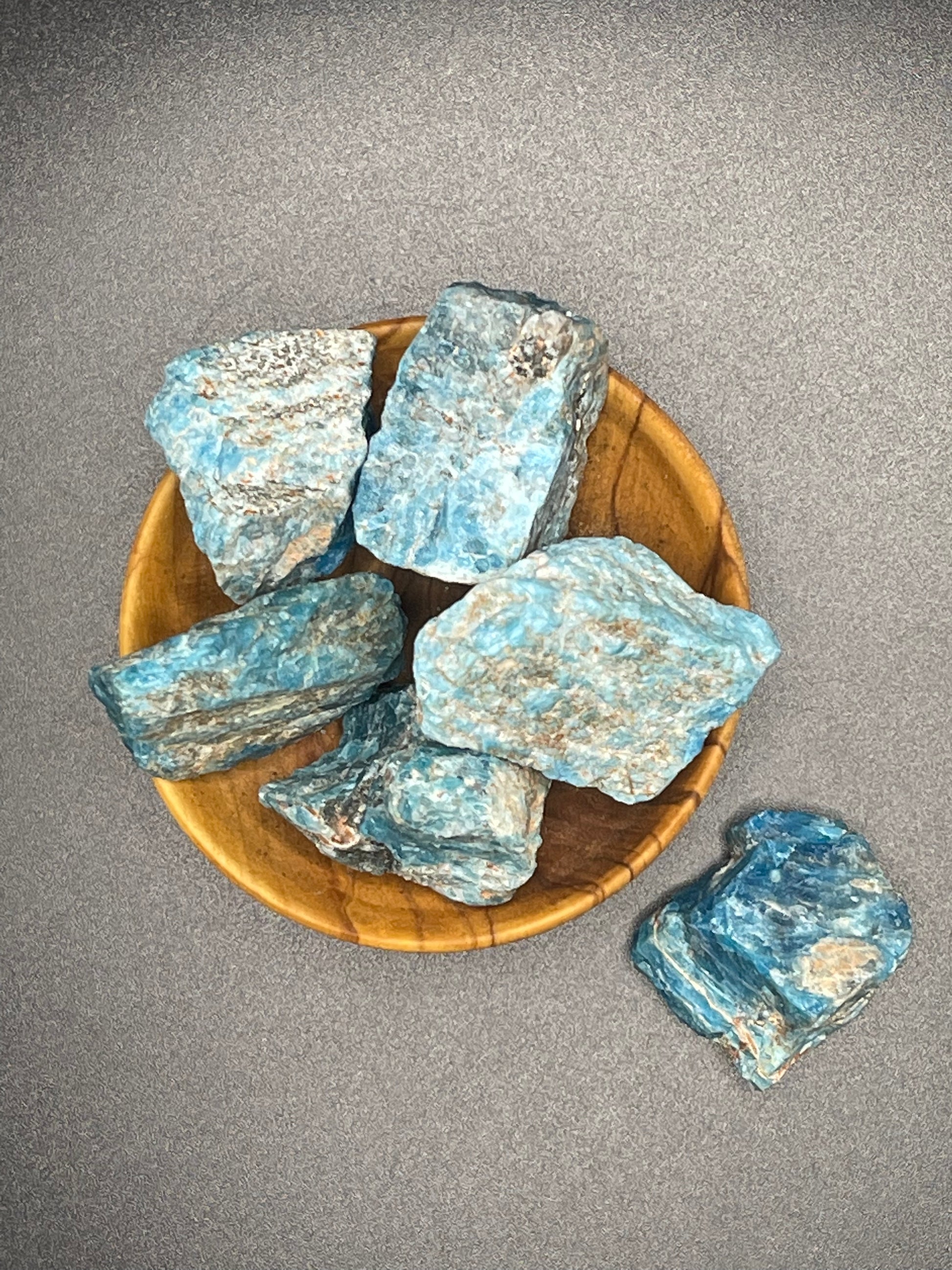 Blue apatite helps with motivation, ambition, self confidence and self-acceptance.  Connects to a very high level of spiritual guidance.  It facilitates public speaking, enhances group communication, opens the throat chakra and heals the heart and emotional issues.