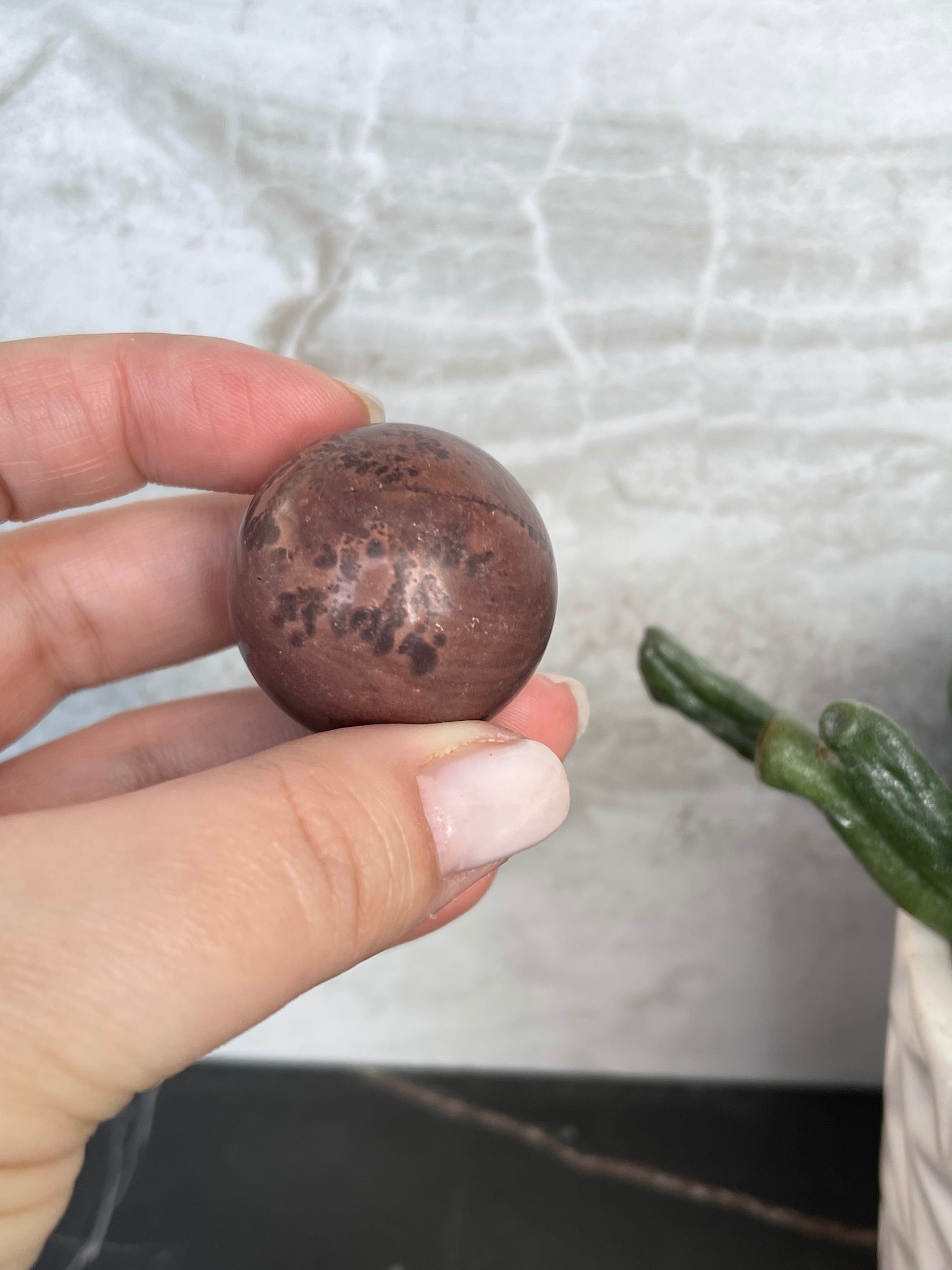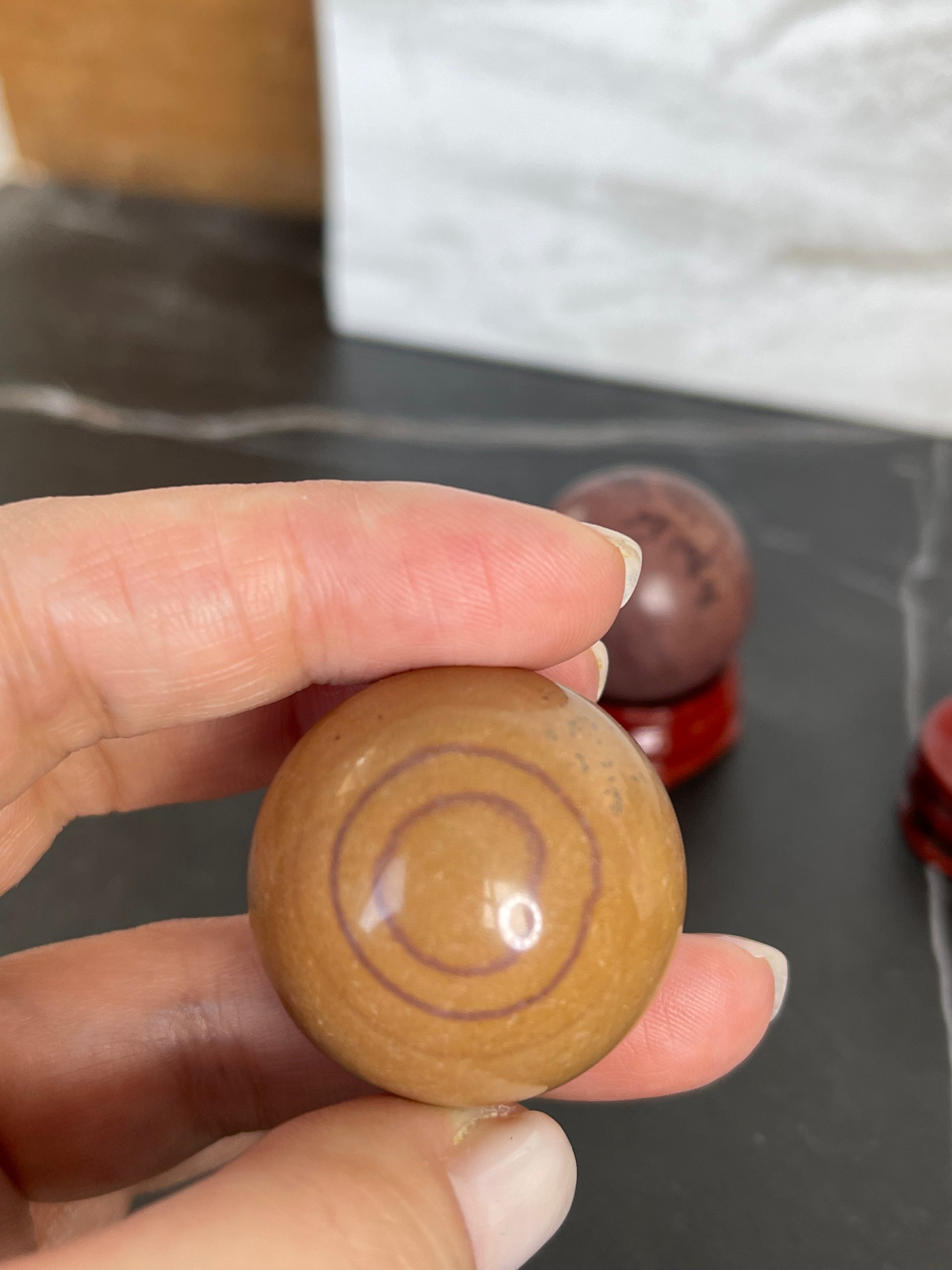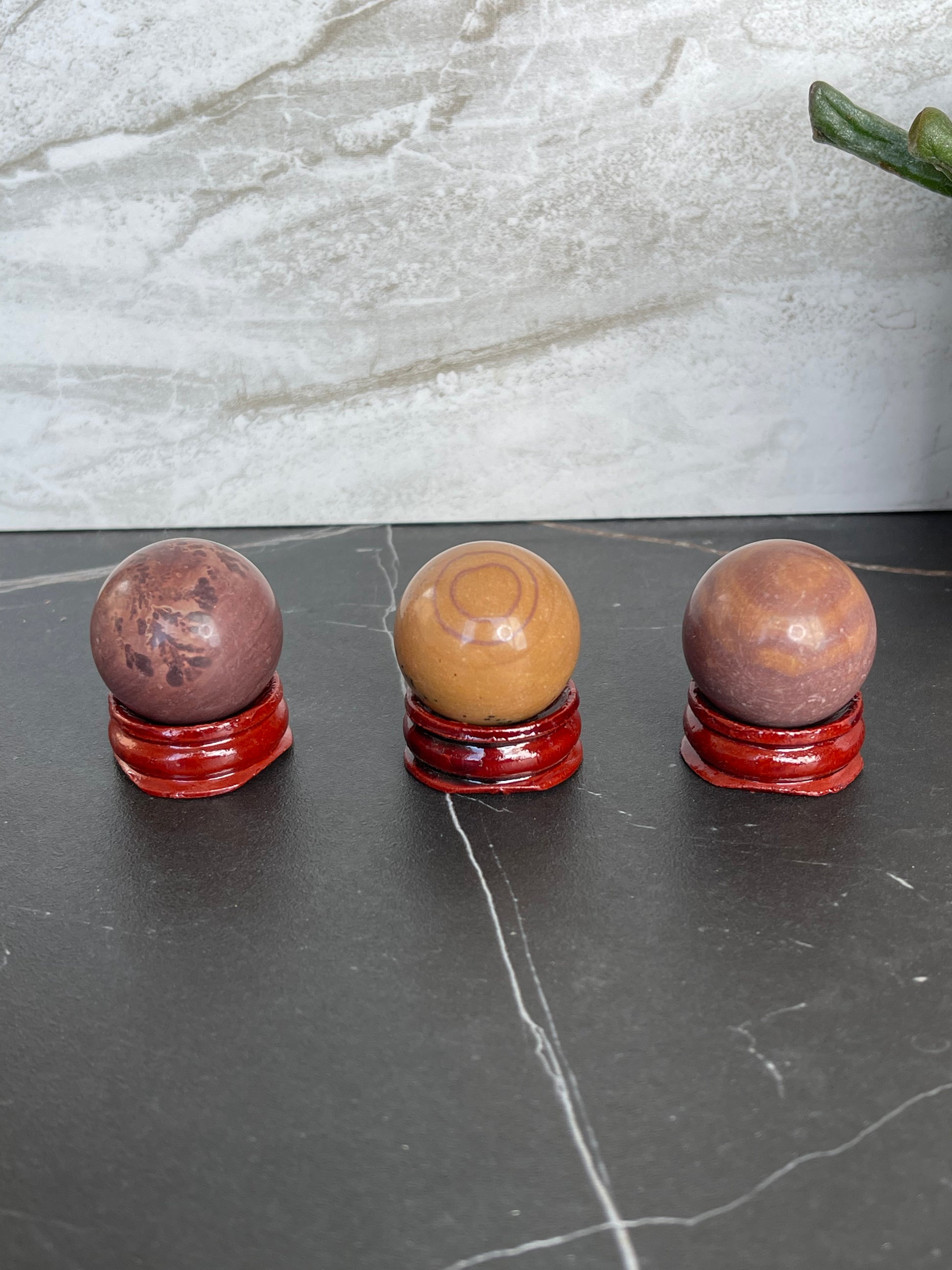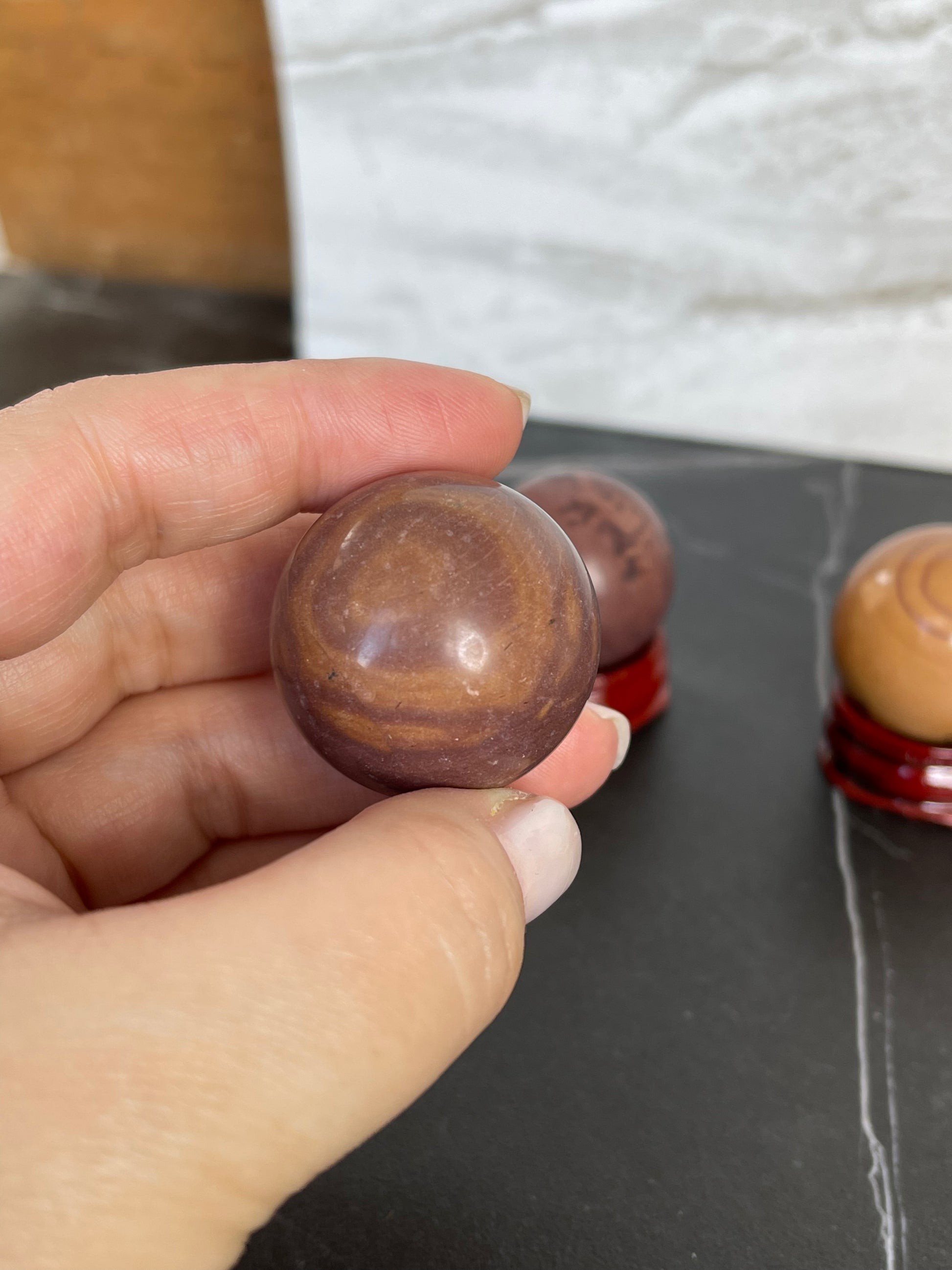 Small Picture Jasper Spheres.  Among practitioners of gemstone healing, picture jasper is a powerful grounding stone that promotes connection to the Earth.  Some view this stone as a direct message from the Earth itself, instilling a sense of proportion, bringing comfort, alleviating fear and cultivating harmony.