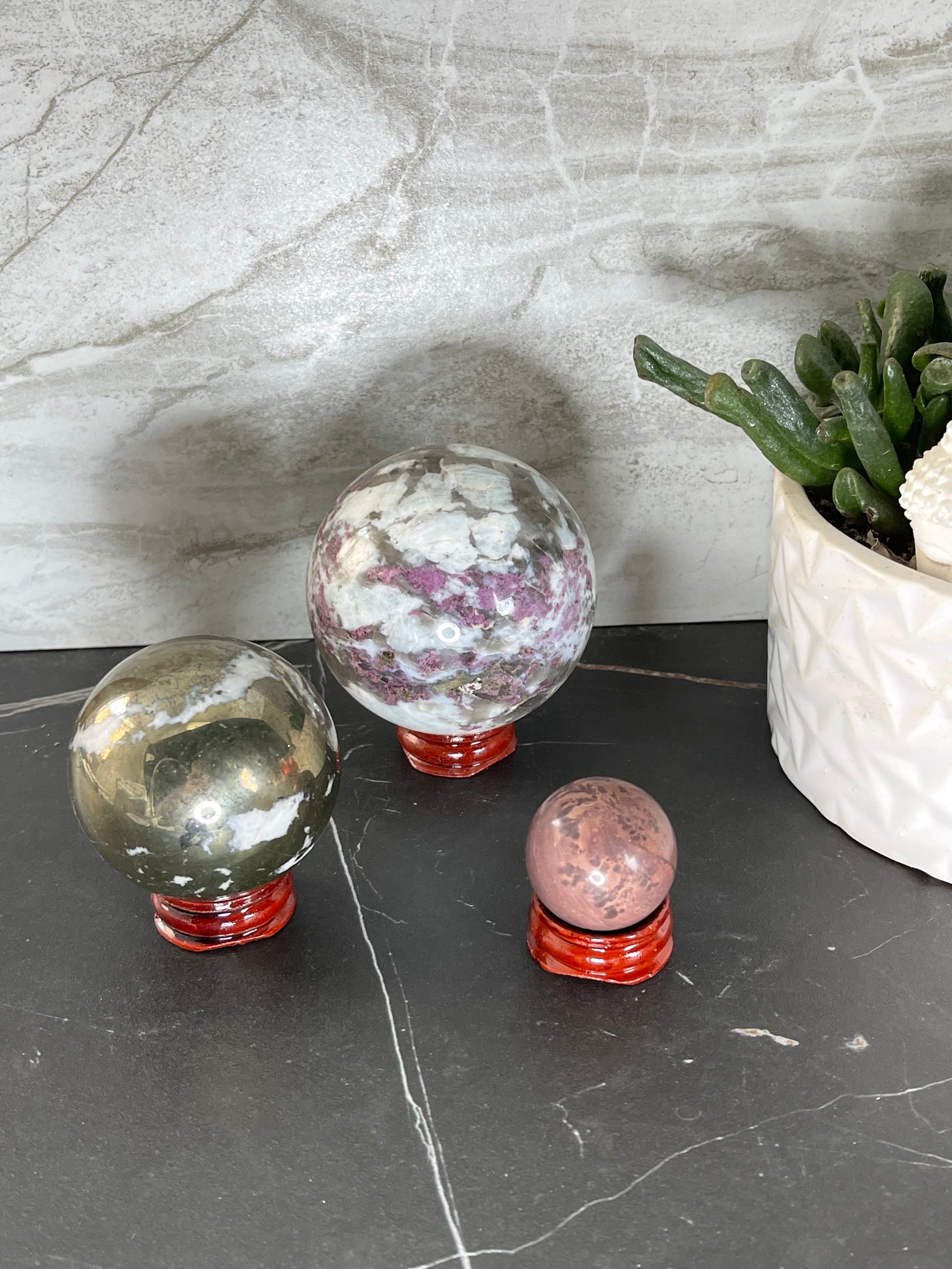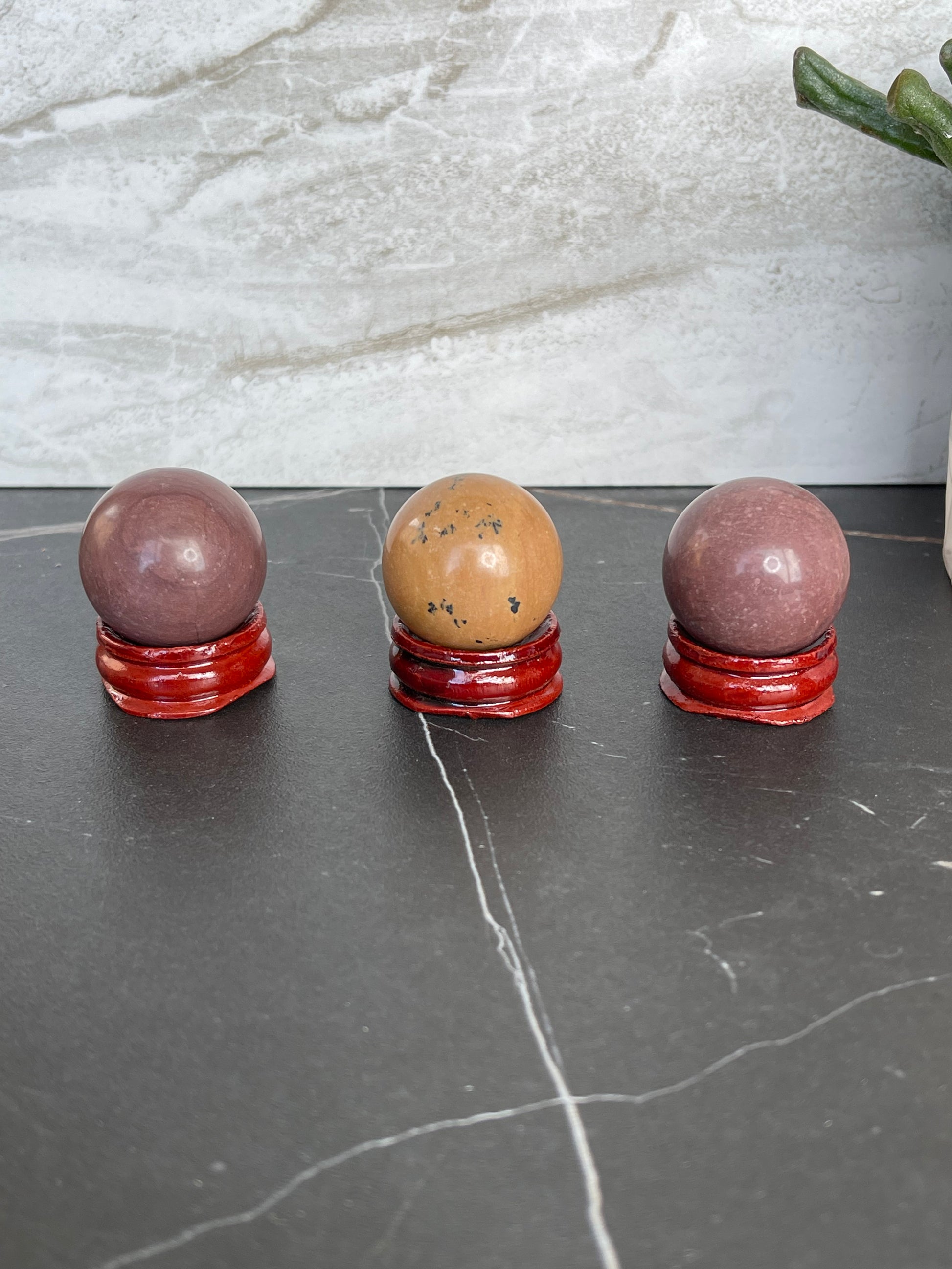 These are the perfect size sphere stands if you don’t want any attention taken away from your favorite spheres.  Even though they are small, they can hold small XL spheres.  They are made of wood and about 1 1/2 in diameter.
