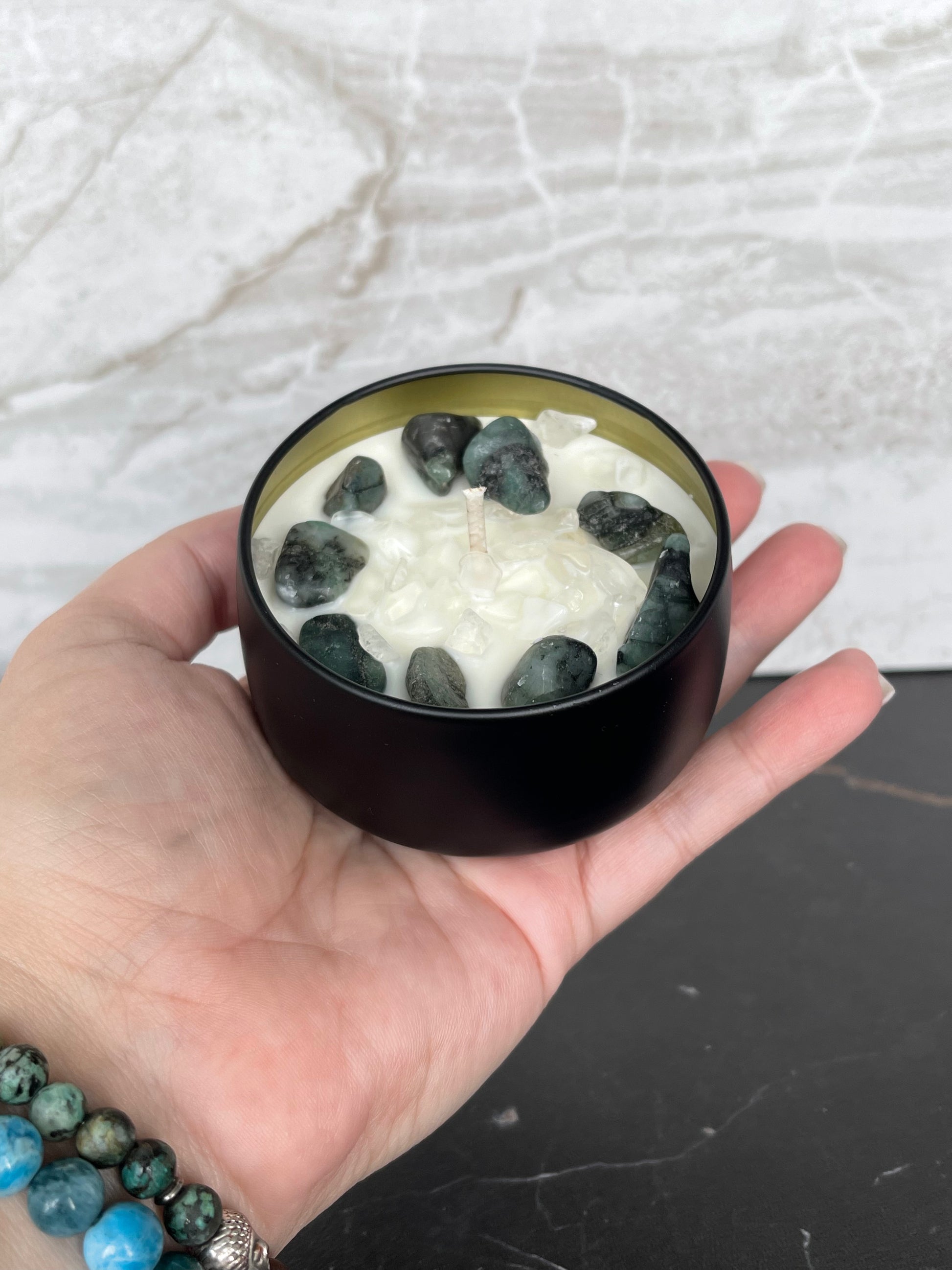 Crystals are Clear Quartz and Emerald