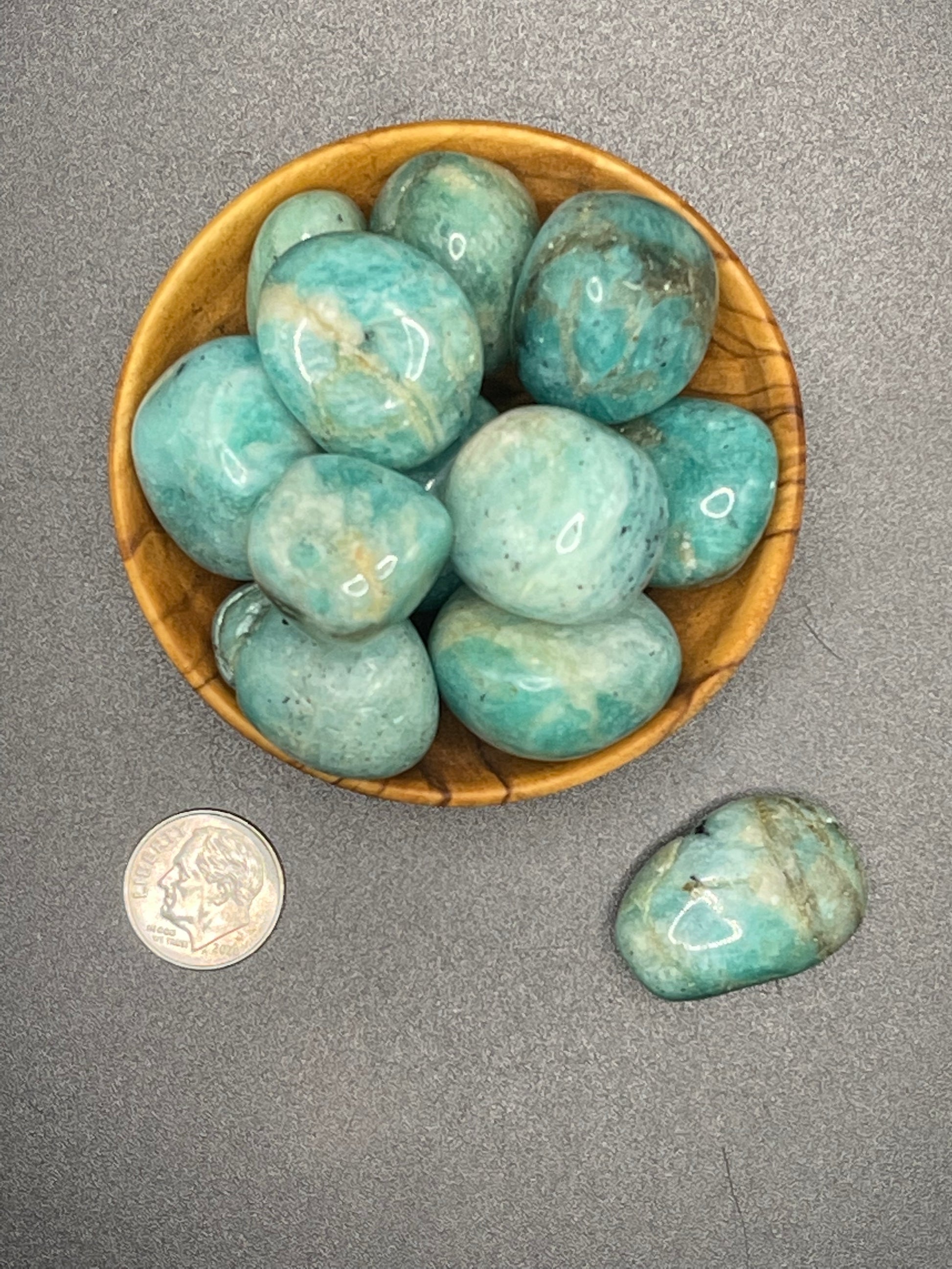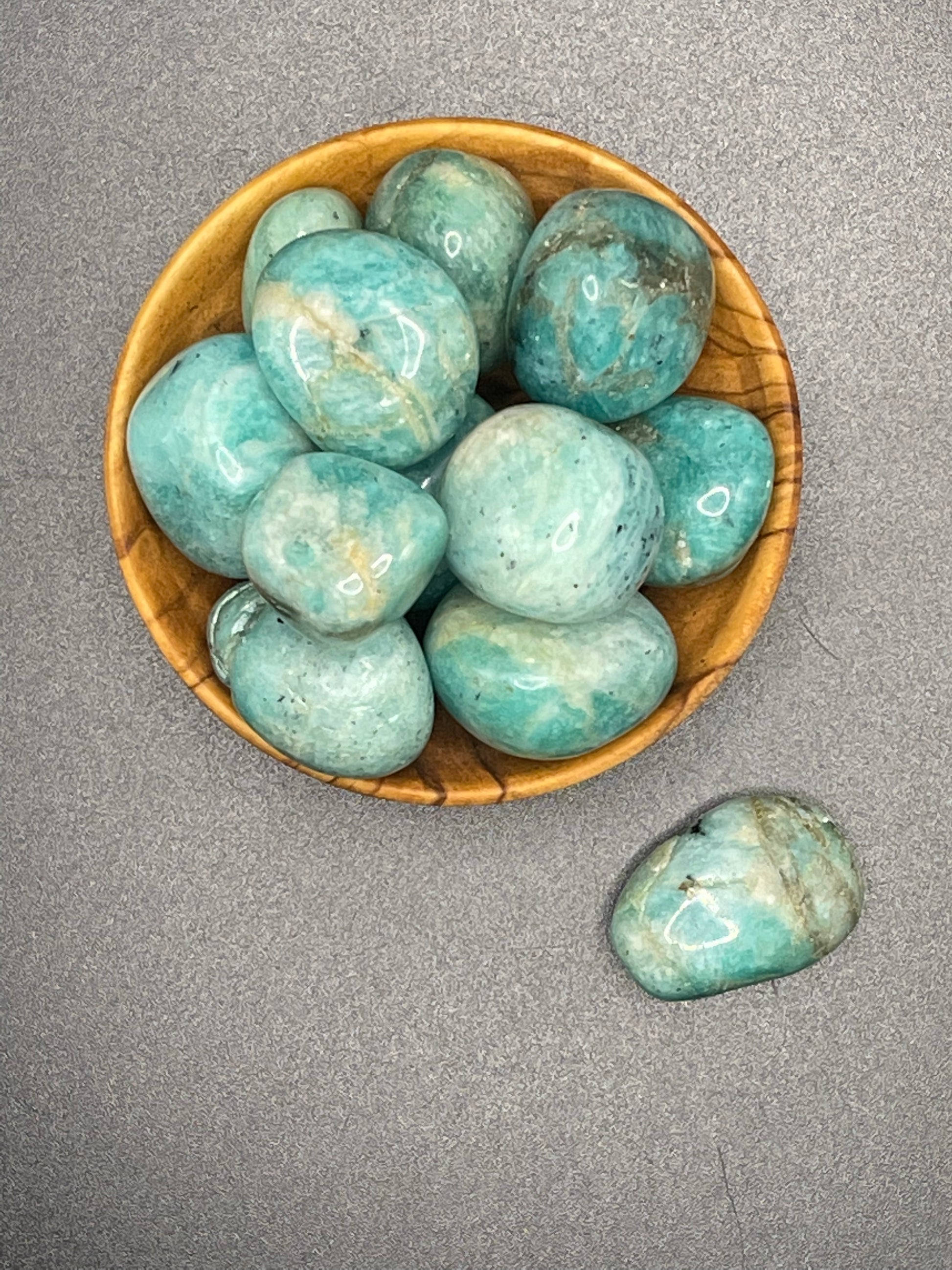 Amazonite is a stone of truth, hope and flow.  This green blue gem helps to bring clarity and calm.  It also dispels negative energy and can protect from EMF.