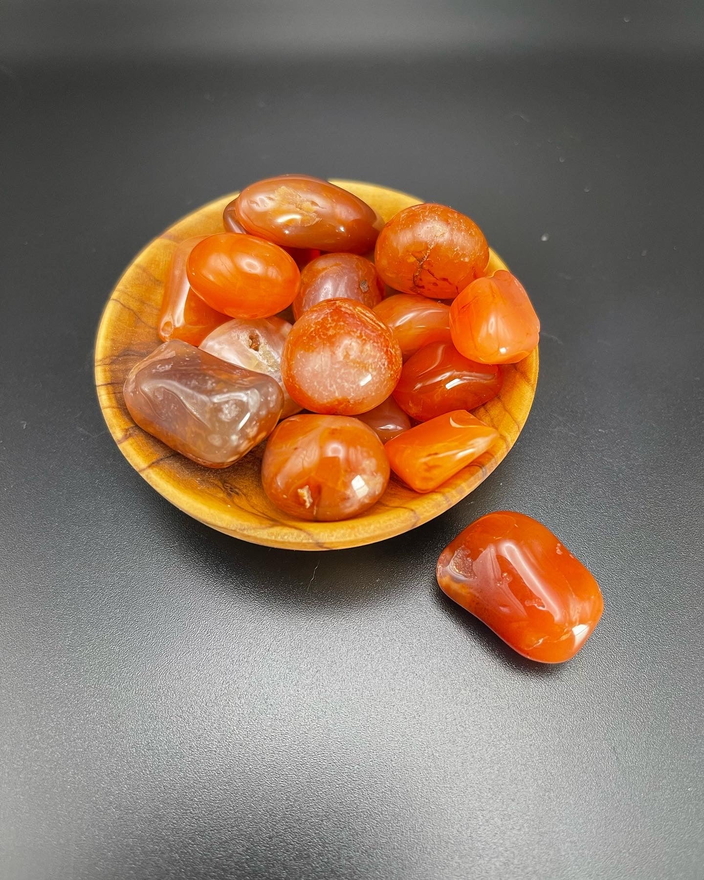 Carnelian treats lower back problems, rheumatism, arthritis, neuralgia and depression.  It regulates the kidneys, and accelerates healing in bones and ligaments.  Improves vitamin and mineral absorption and ensures good blood supply to organs and tissues.