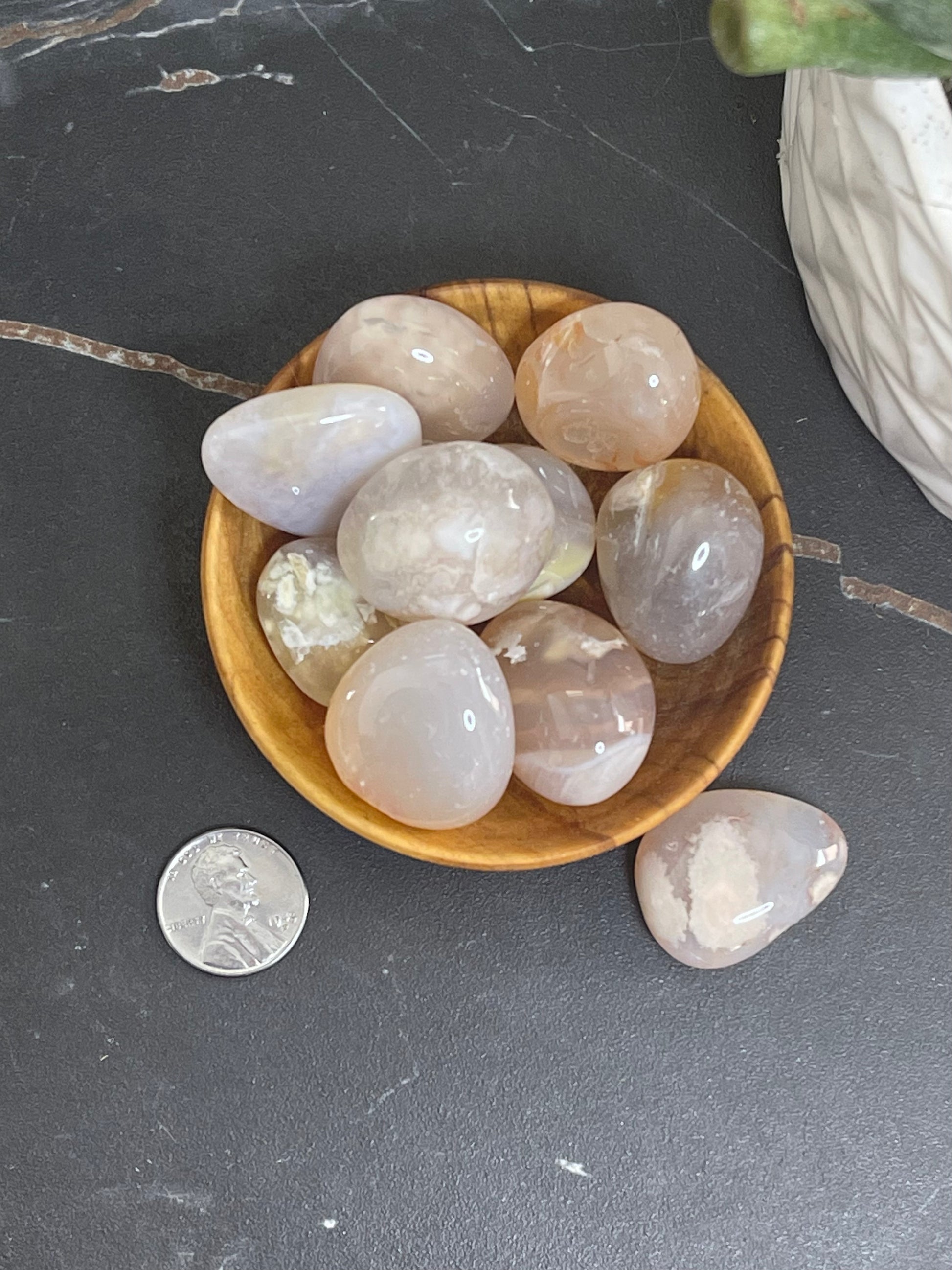 Tumbled Flower Agate is a powerful crystal associated with the heart and root chakras. Its energies will help you to find inner peace, gain empathy and joy as well as improve your ability to release stress and anxiety. It is a perfect addition to your crystal healing practice.