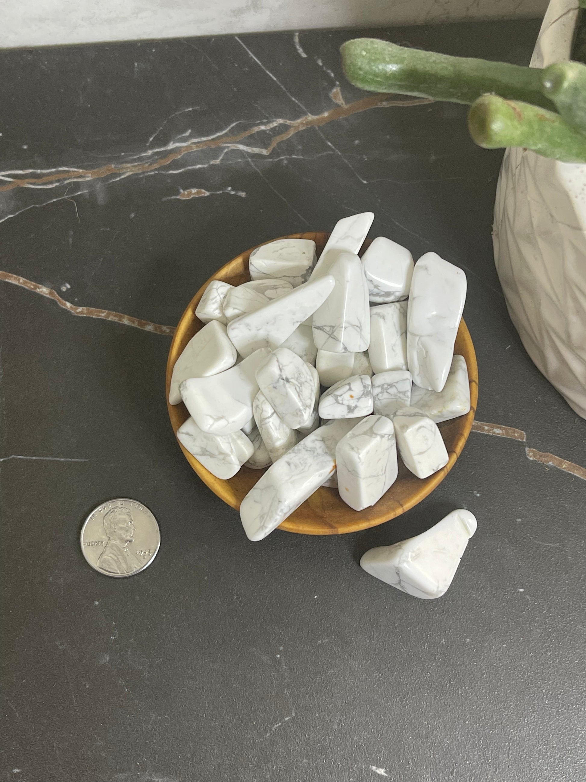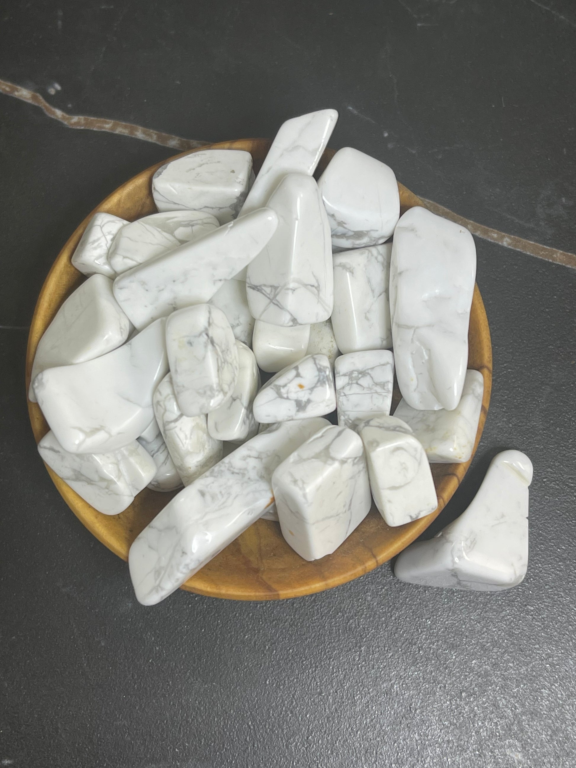 Howlite reaches patience and helps to eliminate rage, pain and stress.  A calming stone, Howlite calms communication, facilitates awareness and encourages emotional expression.  Howlite balances calcium levels in the body.  It aids teeth, bones and soft tissue.