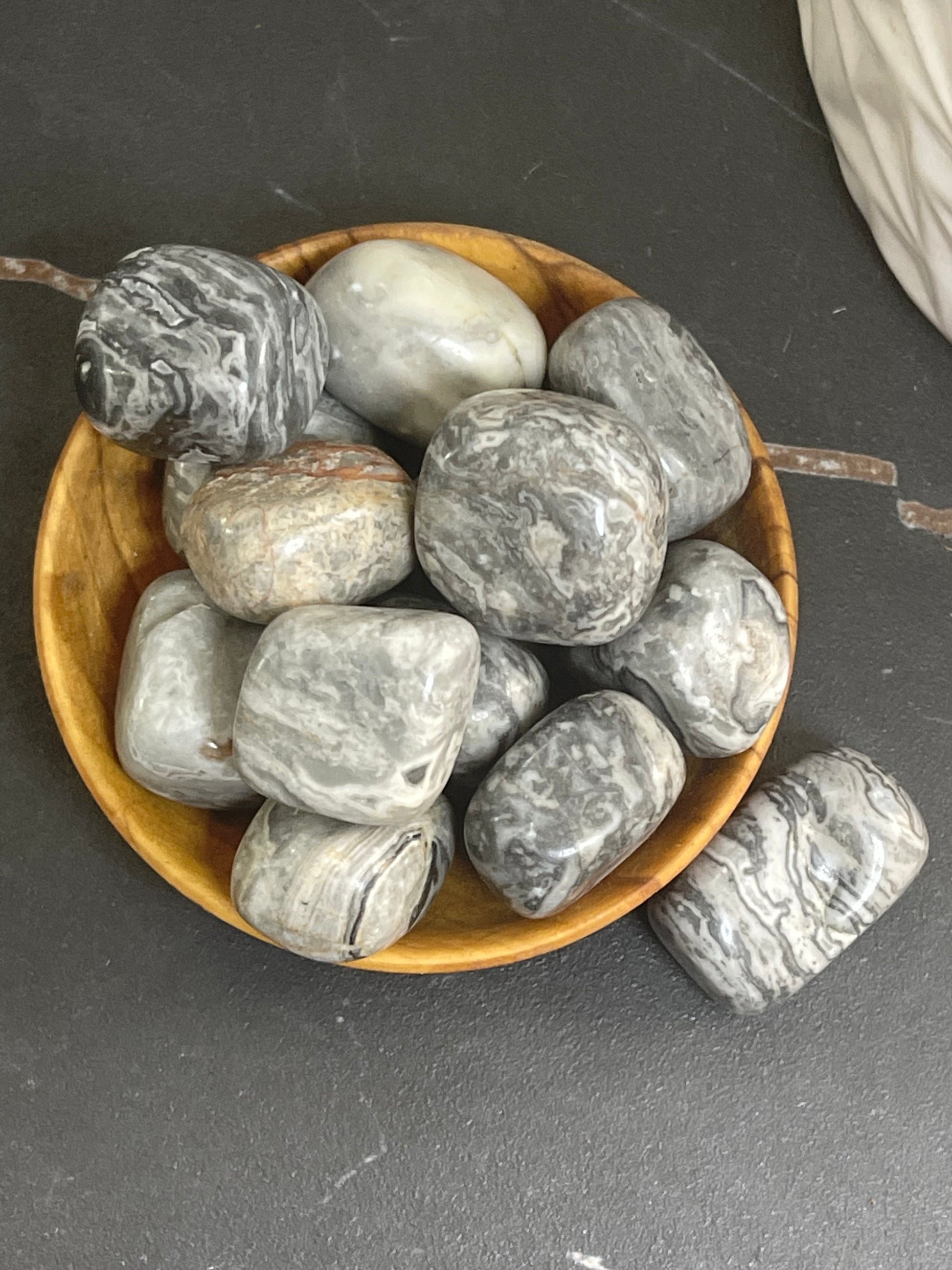 Tumbled Picasso Jasper is a great stone for helping cultivate inner clarity, opening up intuitive understanding, and unblocking creative energy flow. It is closely associated with the base, sacral, and solar plexus chakras, and works to activate the imagination and bring creative visions to life.