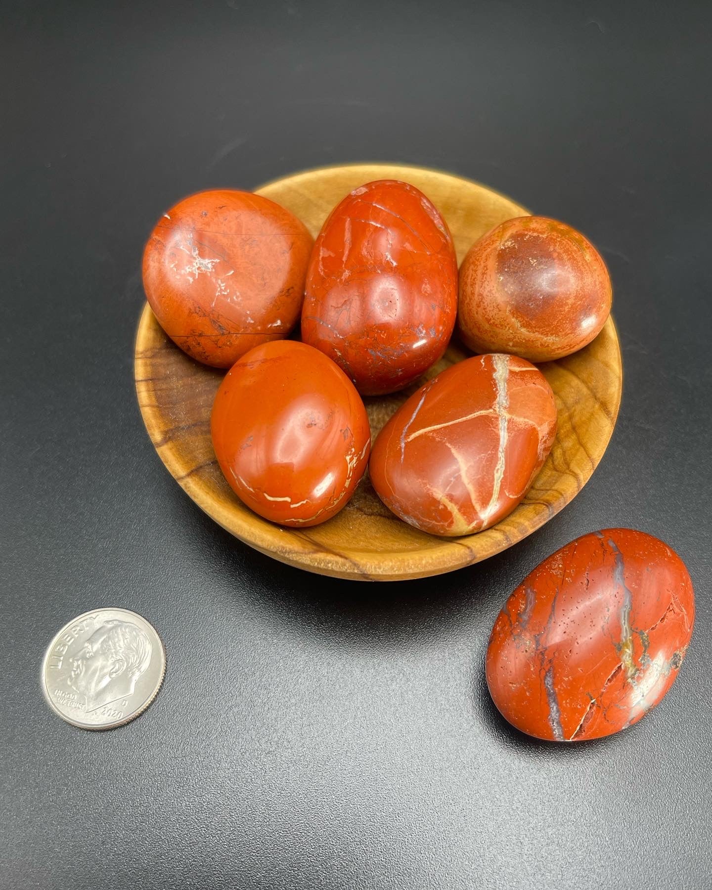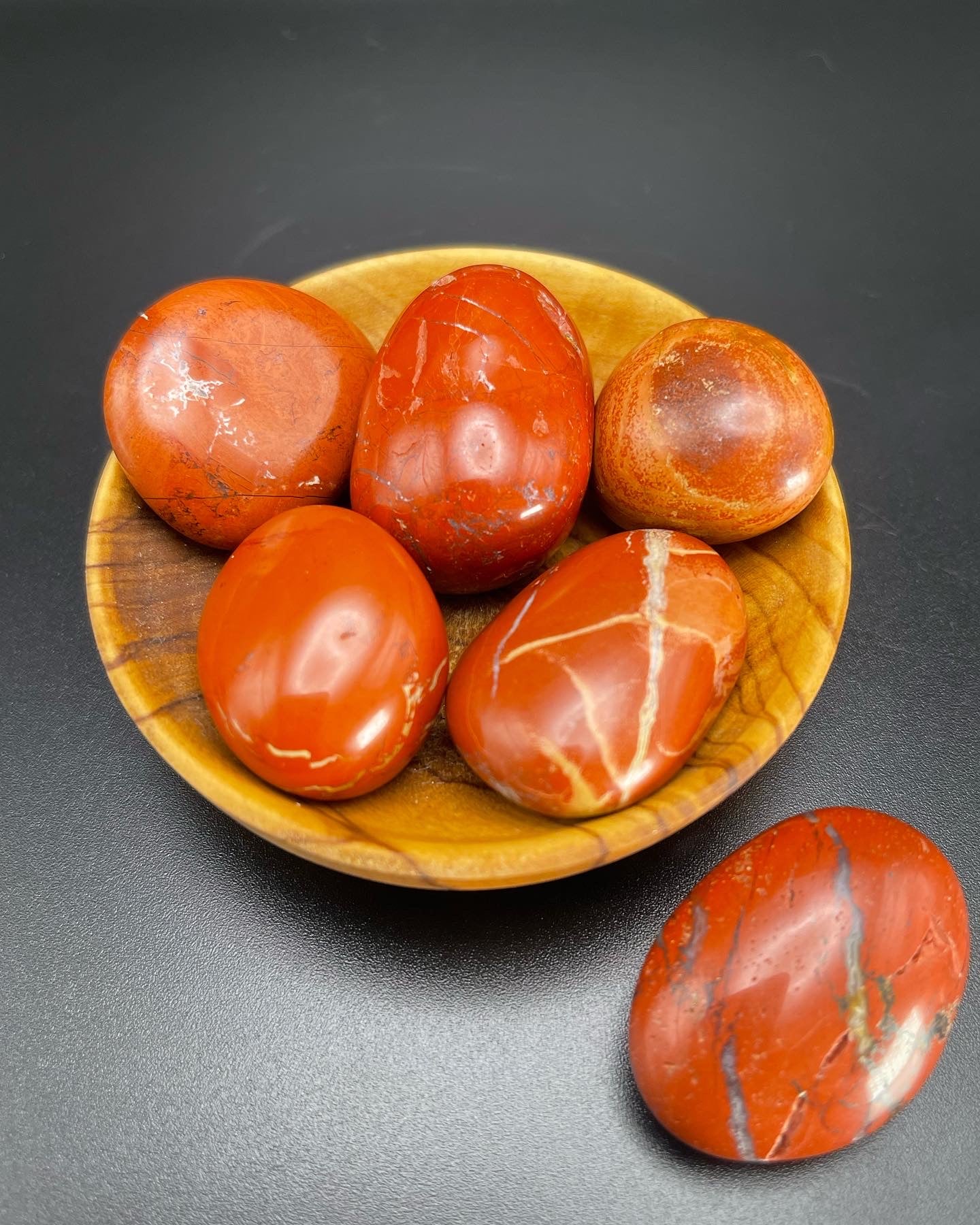 Red jasper helps to rectify unjust solutions and grounds energy.  Brings problems to light and provides insights into difficult situations, also an excellent worry stone.