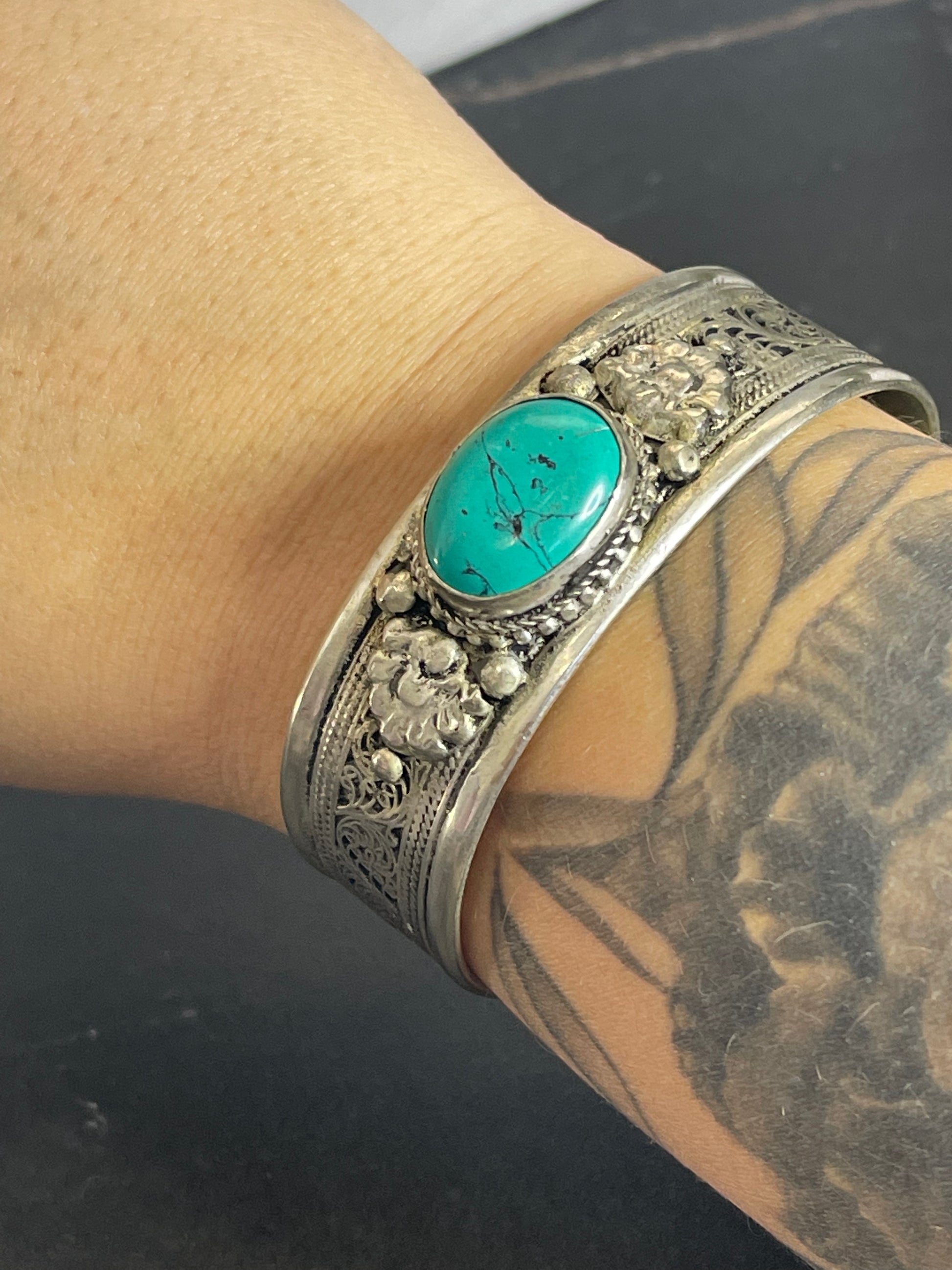 Turquoise costume jewelry.  Beautiful detailing, with a turquoise colored bead.