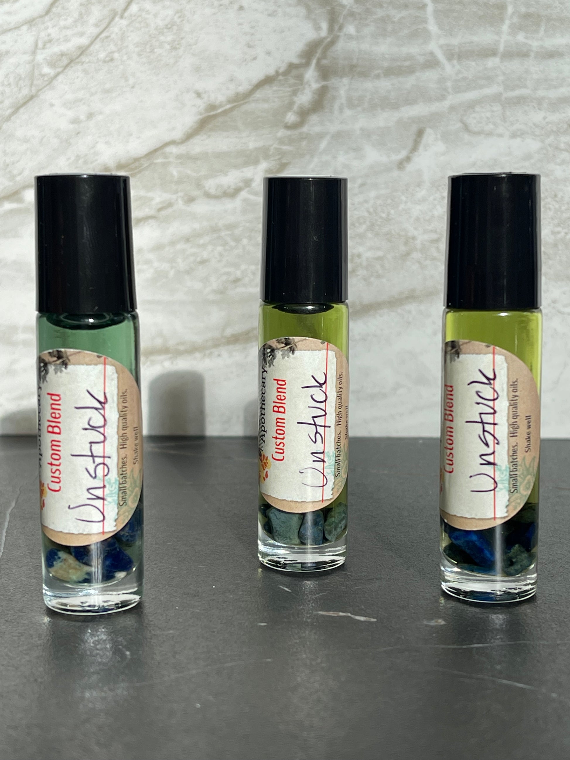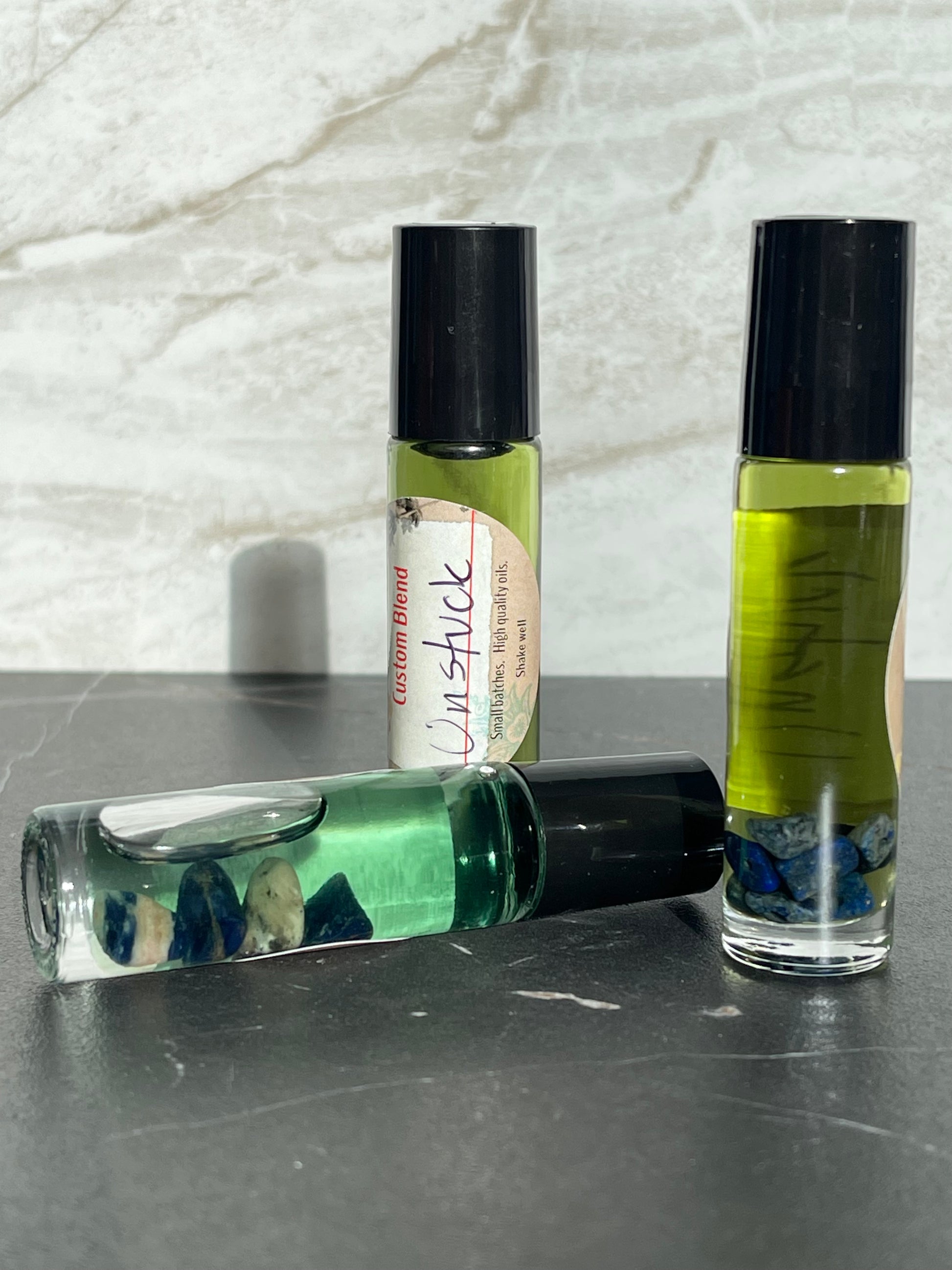 Get lifted out of being paralyzed, overwhelmed and stuck.  Blue Tansy is the main ingredient in this blend, and it helps to inspire and motivate you.  The citrus notes elevate your mood.  Sodalite is amazing for mental clarity and self-expression.  Bring order to chaos and increase your intuition with this blend.