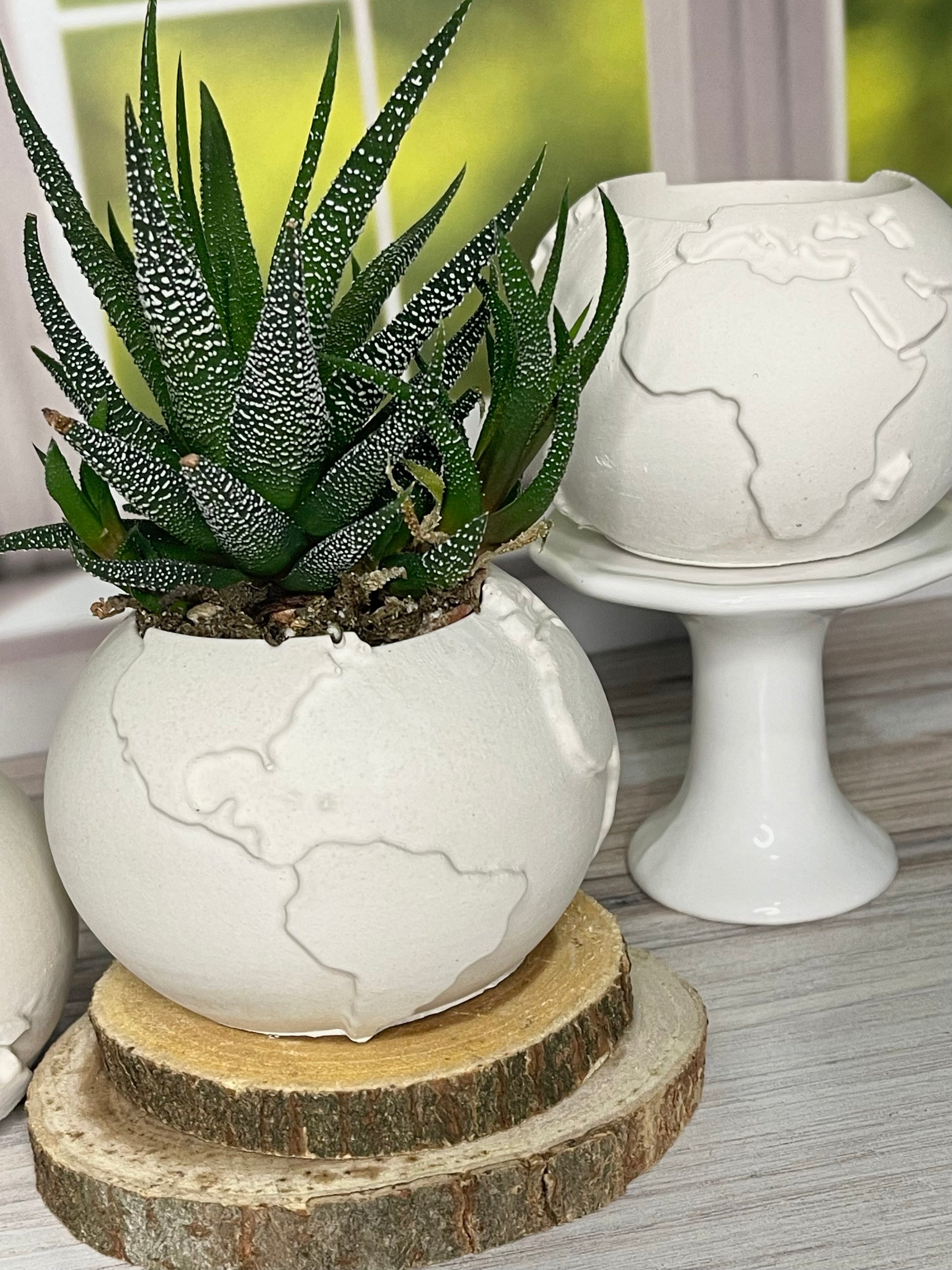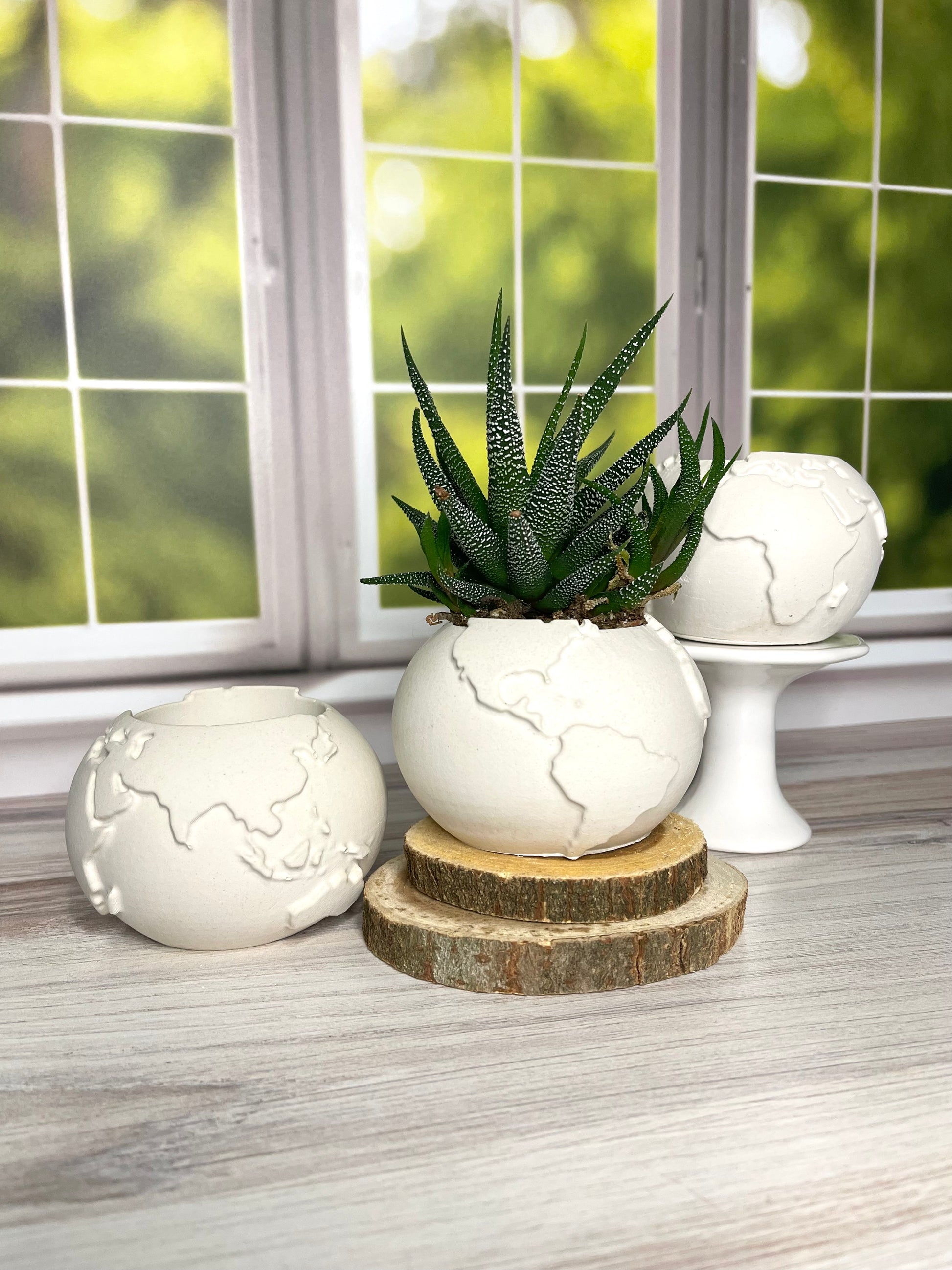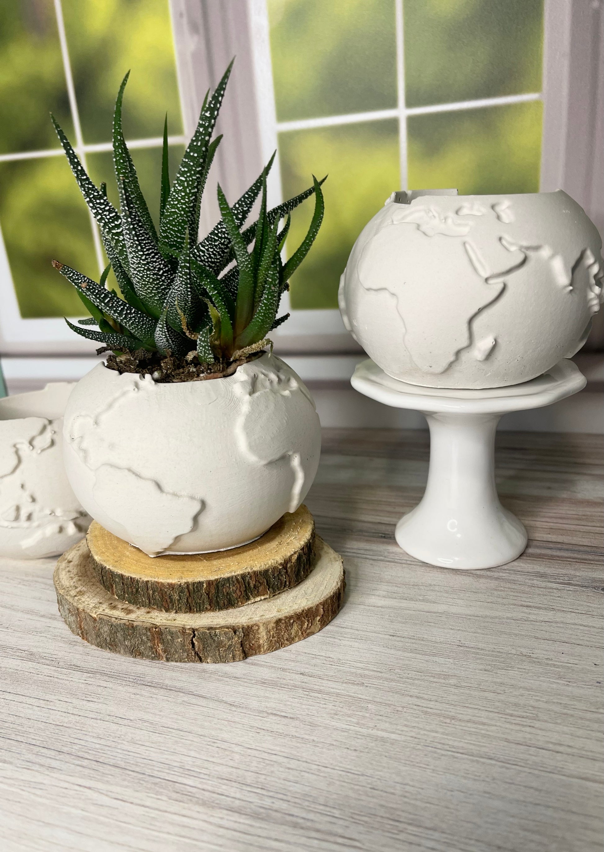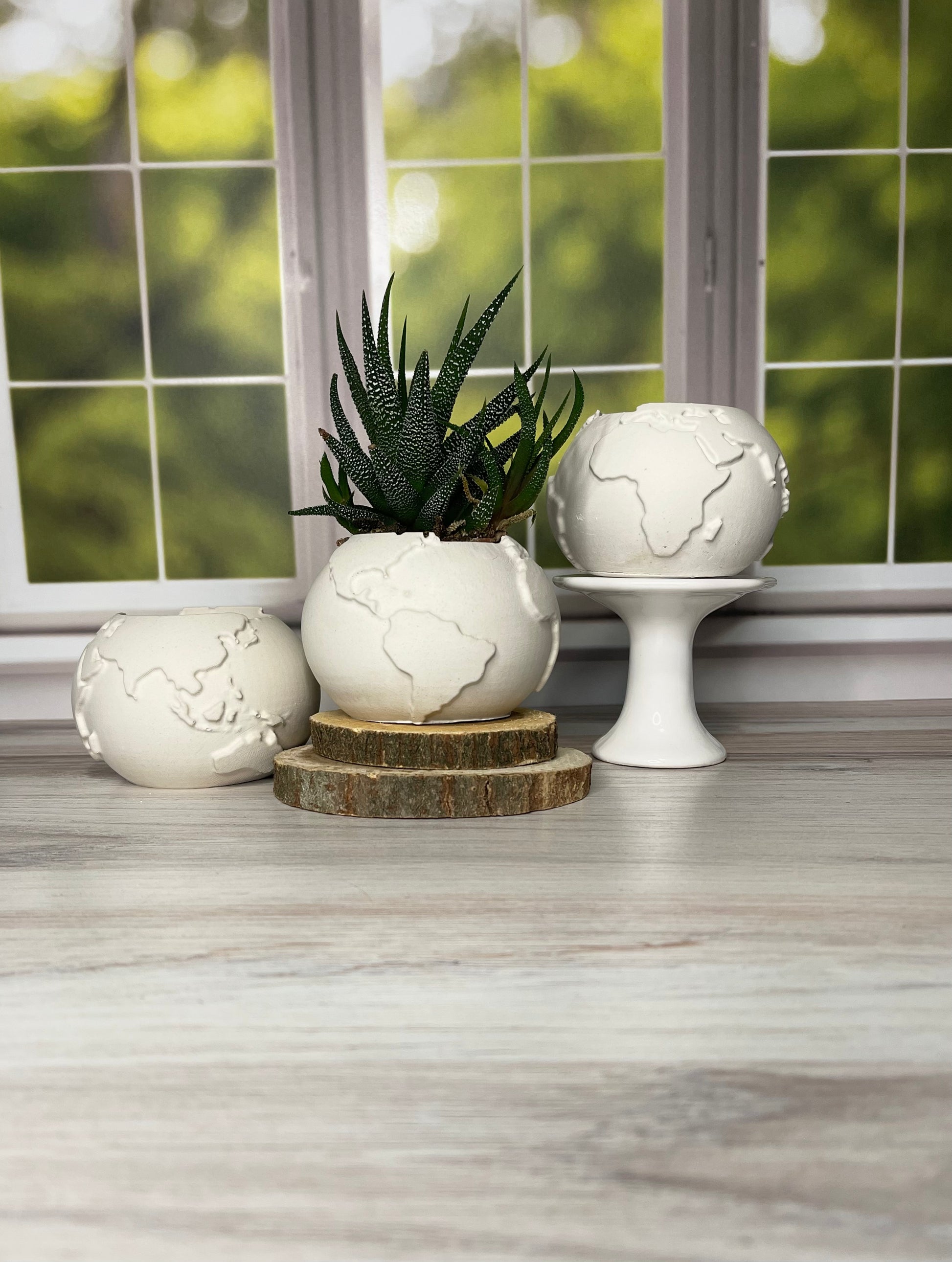 The Portland White Cement Globe Planter is an elegant decorative option for any outdoor or indoor space. This pot and planter is made with lightweight cement for durability and easy portability. Its unique globe design and shape creates an interesting visual effect for your plants or flowers.