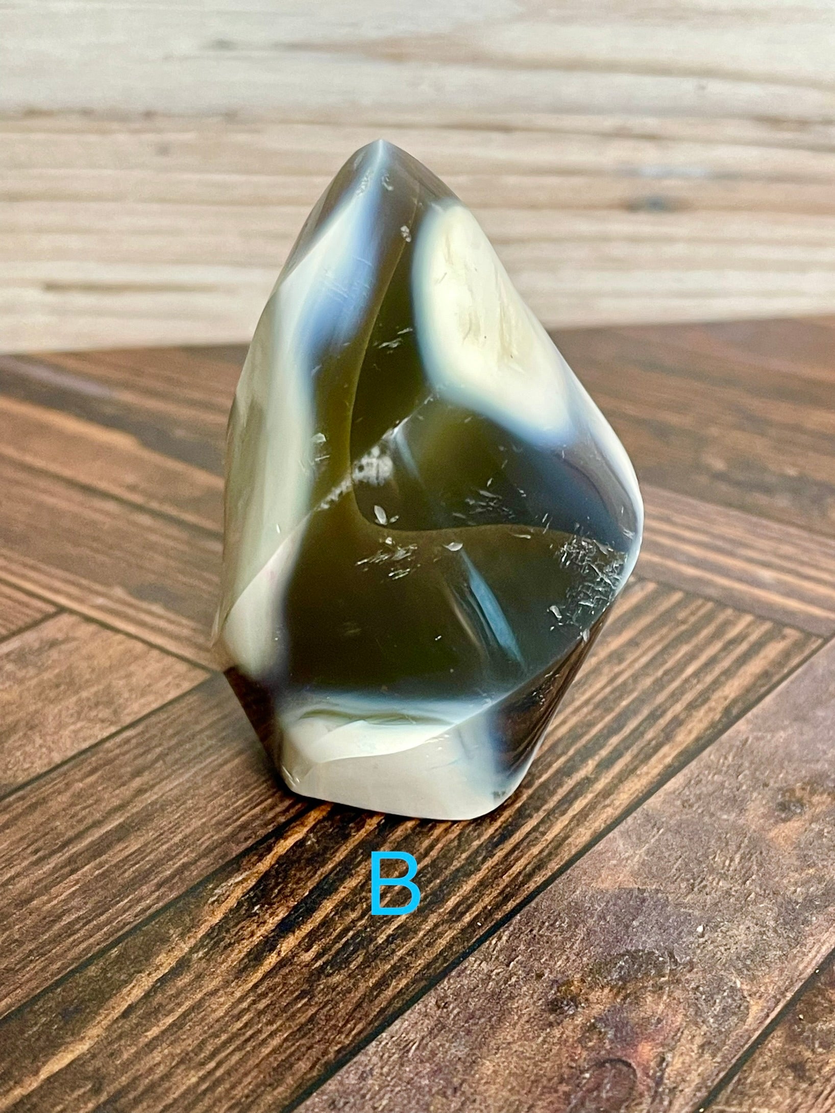 Radiate with confidence and courage with this beautiful Orca Agate Flame! Its stunning orca agate design will bring a calm, peaceful feeling while its flame encourages an inner strength that will boost your self-confidence. Get ready to flaunt your flame and feel the power of inner peace!