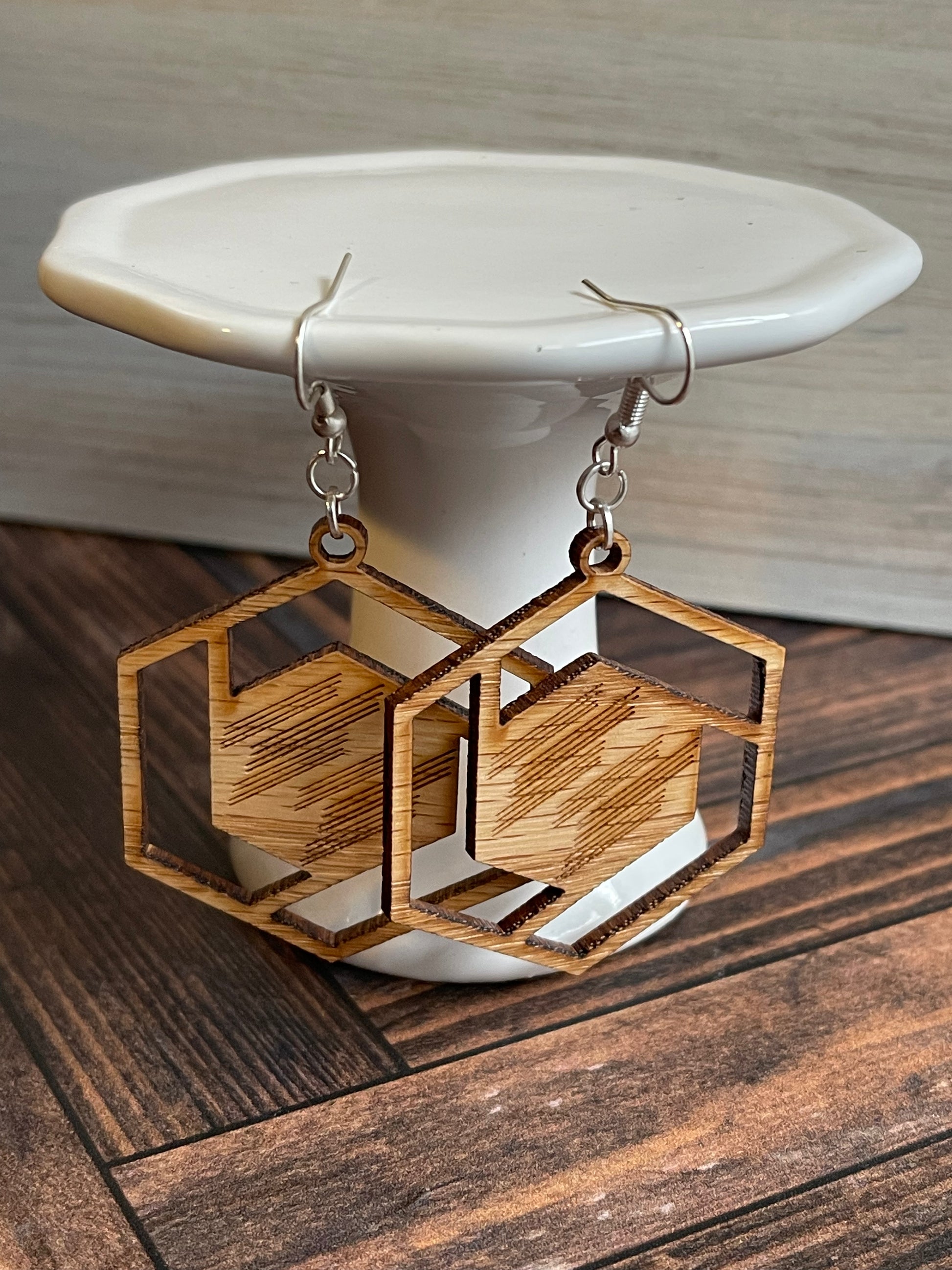 These Wooden Polygon Geometric Earrings feature shapes made from real wood. This timeless design is perfect for a sophisticated yet edgy look, making them the ideal accessory for any occasion.